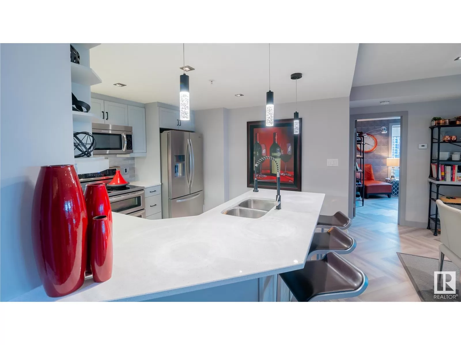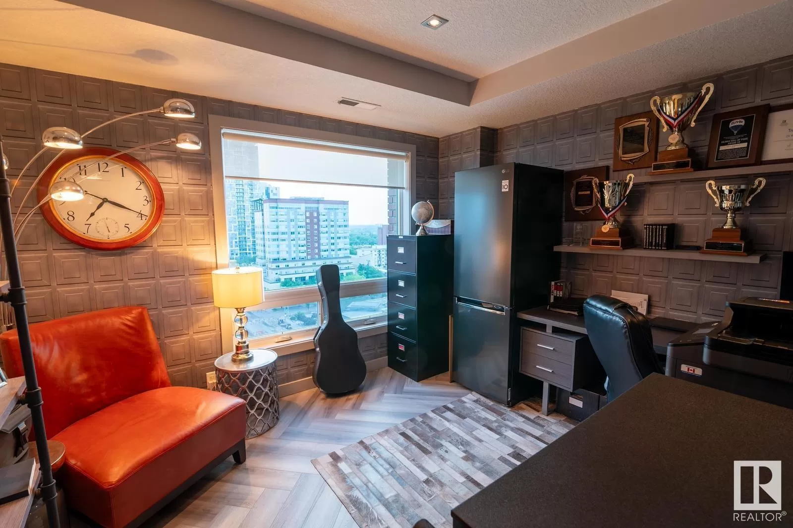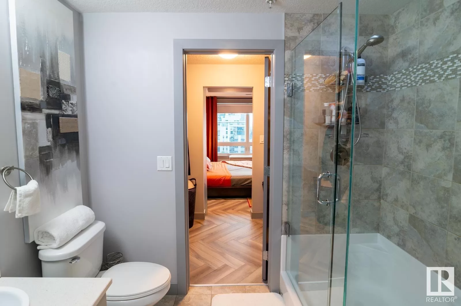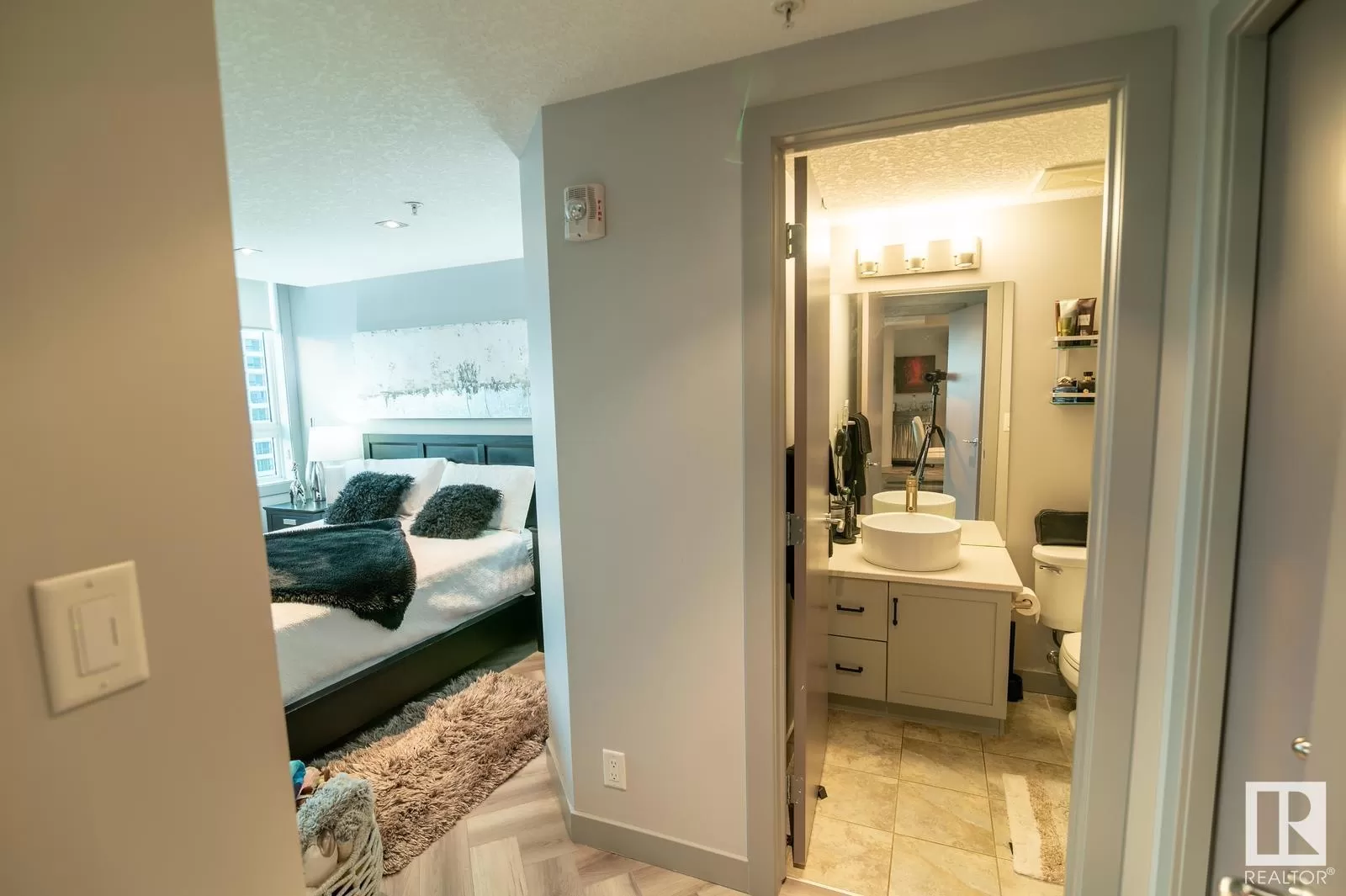 This Top Floor corner unit 1500 sq ft Penthouse, in the sought after Serenity building is in a Prime Location (Oliver) with exceptional views. This solid well managed building is just steps from the scenic Victoria Promenade, river valley, trails, shopping, transit and more. The final stages of the Jasper Ave Revitalization project are under way as we speak. This 2 bedroom plus Den unit features 3 bathrooms including a second bedroom 4 piece ensuite, spacious master, new wide plank flooring throughout, refaced cabinets, updated tile, and professionally painted. California style closets and pantry organizers throughout add both style and storage. Unit includes Two side by side oversized Premium parking stalls close to elevators, both with storage cages. Enjoy 275 sq ft of covered wrap around Terrace that has stunning city skyline and valley views, complete with gas BBQ hook up and power. Large covered visitor parking for your guests. All utilities excluding internet are included in the condo fees. (id:27476)