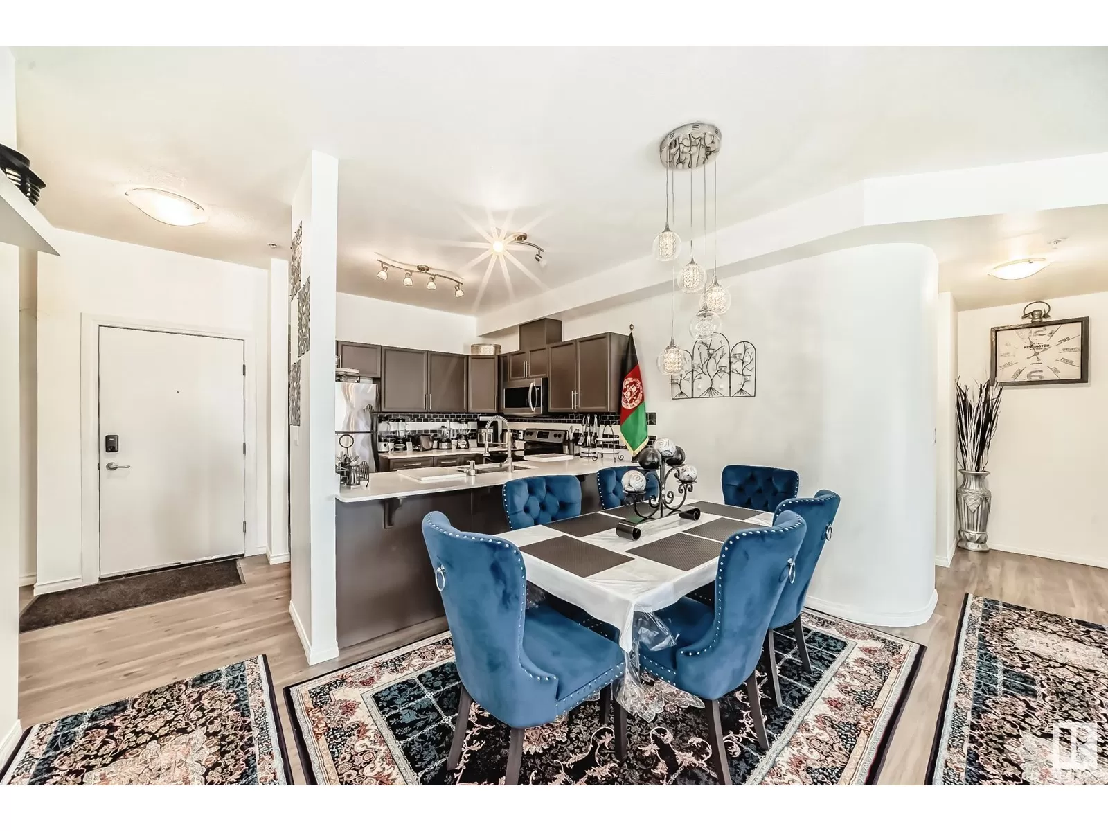 Excellent location! This beautiful suite has 9 ft ceilings and offers numerous upgrades including new vinyl planking throughout, quartz counter tops and much more. 2 spacious bedrooms, 2 full bathrooms, in-suite laundry, storage room and modern open concept living space. Impressive 1156 sq ft ensures ample room for comfortable living. An unbeatable location sets this property apart. Steps away from Clareview transit and LRT station, enjoy city living without the usual hustle. Grocery stores, countless restaurants, and amenities within walking distance make life convenient. Perks go beyond location. Access fantastic building amenities: car wash, rec room, exercise gym, and social room. Heated underground parking with storage cage adds luxury and convenience. Don't miss this remarkable opportunity for affordable luxury living. Come and see this gorgeous suite in the Estates of Clareview! (id:27476)