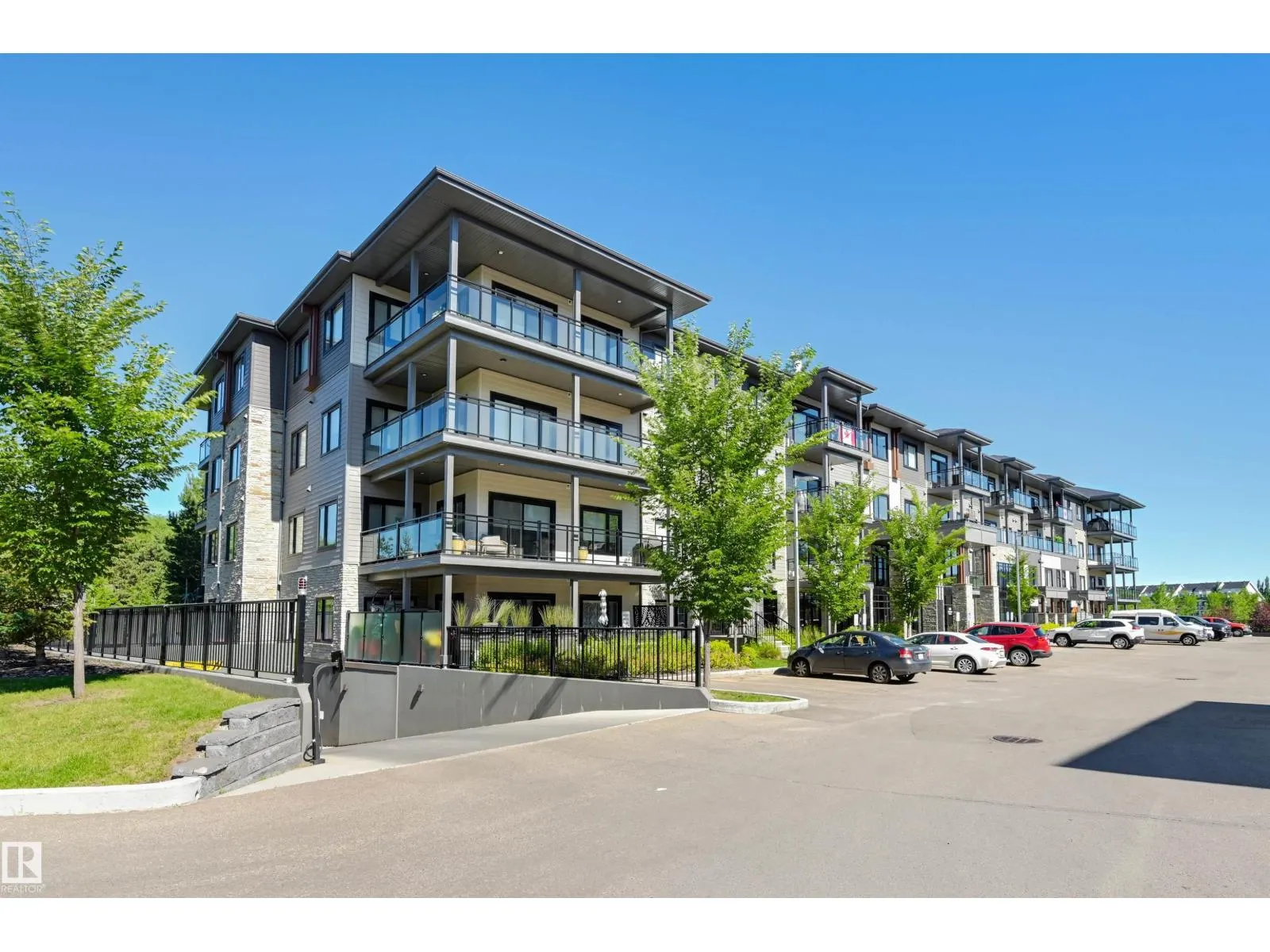 TOP FLOOR UPGRADED LUXURY! This stunning 2 bed, 2 bath + den condo in sought-after Griesbach delivers over 1,300 sq. ft. of refined living with 10 ft. ceilings & premium upgrades throughout. The kitchen showcases quartz countertops, a 4-seat island, full-height two-tone cabinetry, designer tile backsplash, stainless steel appliances, & a custom beverage centre with extra cabinetry. The open-concept living room features east-facing windows with motorized blinds, upgraded vinyl plank flooring, & access to the private patio. The spacious primary bedroom offers a walk-through closet with custom built-ins & a beautiful ensuite. A versatile bonus room is ideal for an office, nursery, or gym. The second bedroom is paired with a sleek 4-piece bath. Additional upgrades include a full laundry room with custom cabinetry, TWO underground parking stalls, and extra storage. Veritas residents enjoy premium amenities: fitness centre, guest suite, social room, & A/C. All just steps from shops, cafes & future LRT. (id:27476)