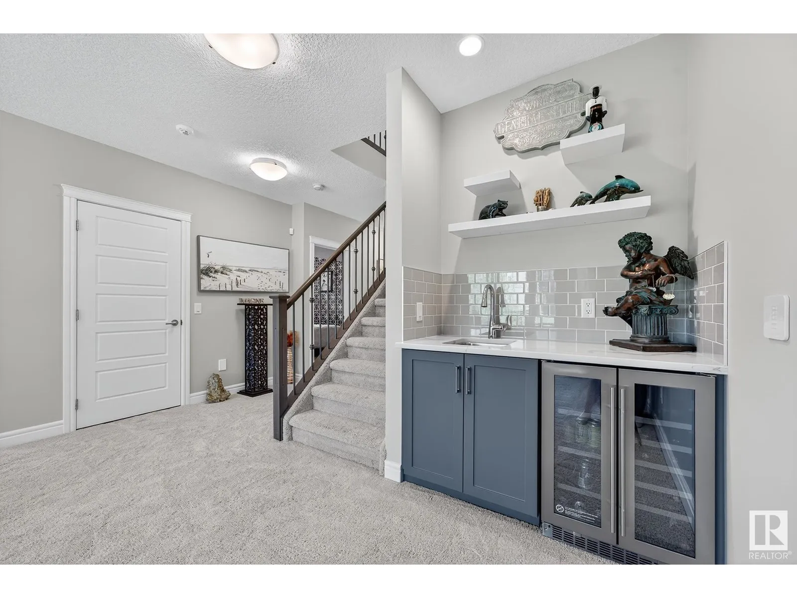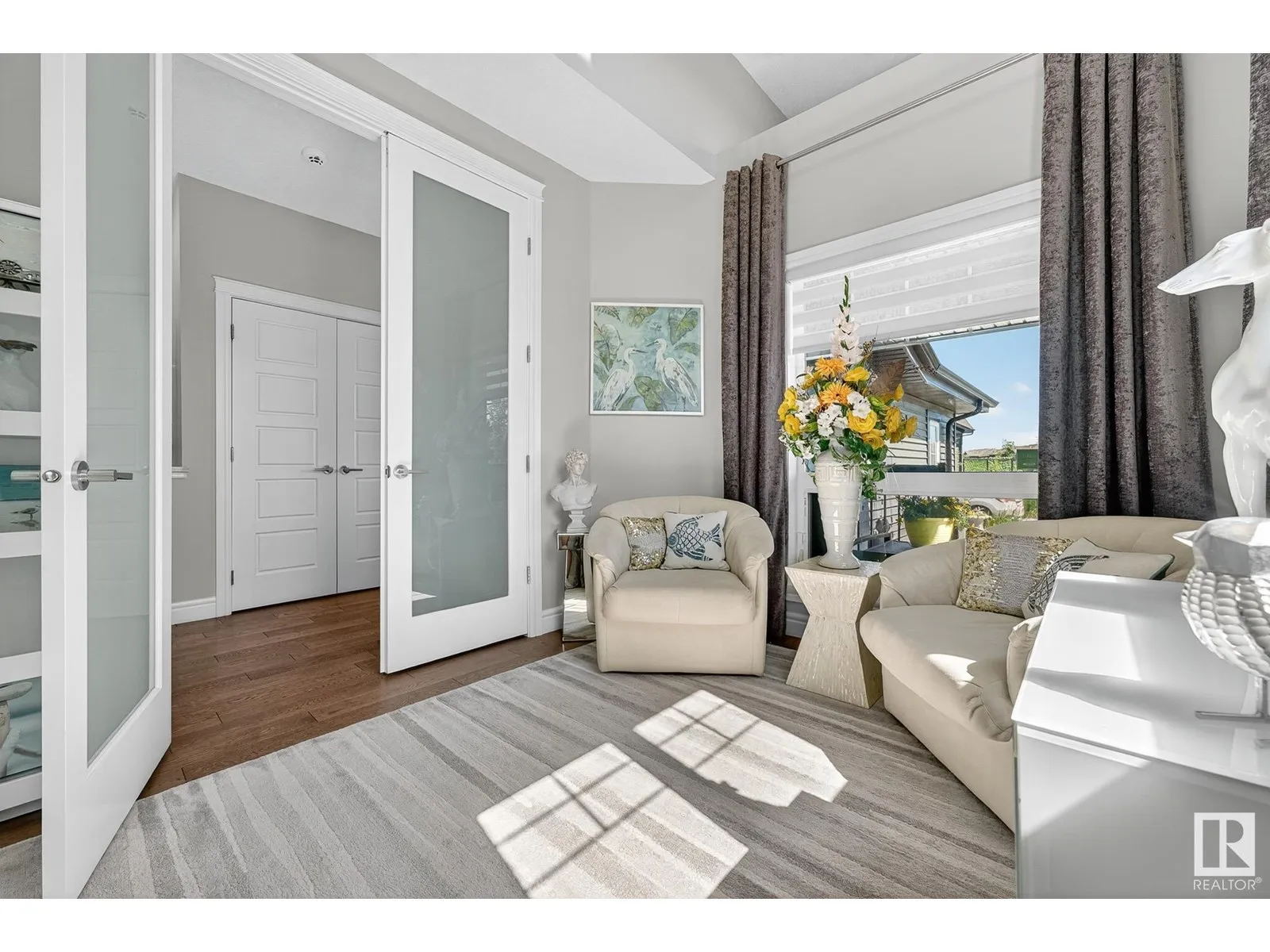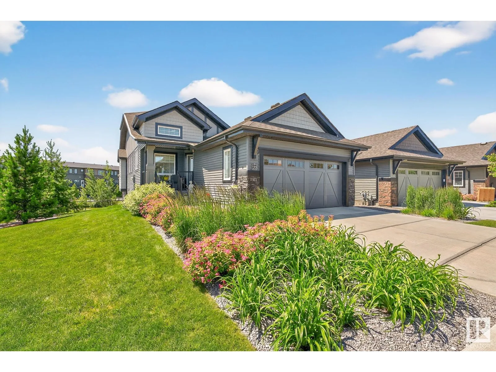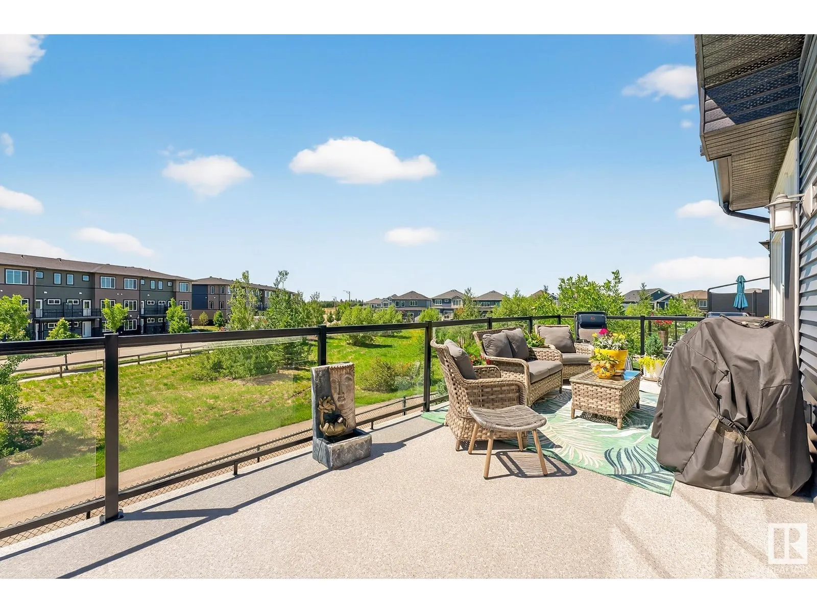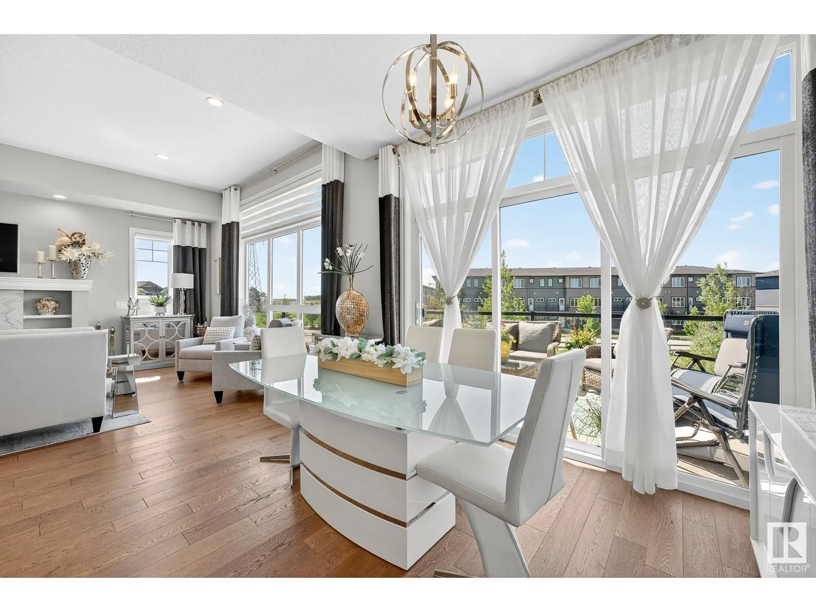Experience elevated living in this exquisite former showhome in the Vistas at Orchardsâa rare walkout bungalow offering 2,600+sqft of designer-crafted space with private southwest exposure backing a scenic walking path. From the soaring entry to the rich engineered hardwood flooring, iron railings, and expansive triple-pane windows, every detail exudes sophistication. The chef-inspired kitchen features floor-to-ceiling cabinetry, quartz counters, and high-end built-in appliances. Relax by one of 2 elegant fireplaces or step onto the sun-drenched deck with glass railings. The luxurious primary suite offers a spa-like 5-pc ensuite and walk-in closet. The finished walkout basement includes 2 bedrooms, second den, rec room, bar area, and a full-width concrete patio. Complete w/Bose built-in speakers, air conditioning, custom drapes, heated double garage, and maintenance-free living. Enjoy exclusive access to trails, schools, parks & easy connectivity to shops and major routes to the city. (id:27476)