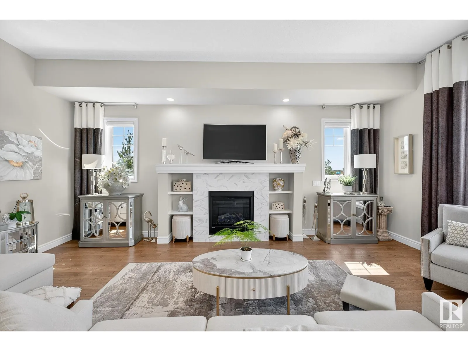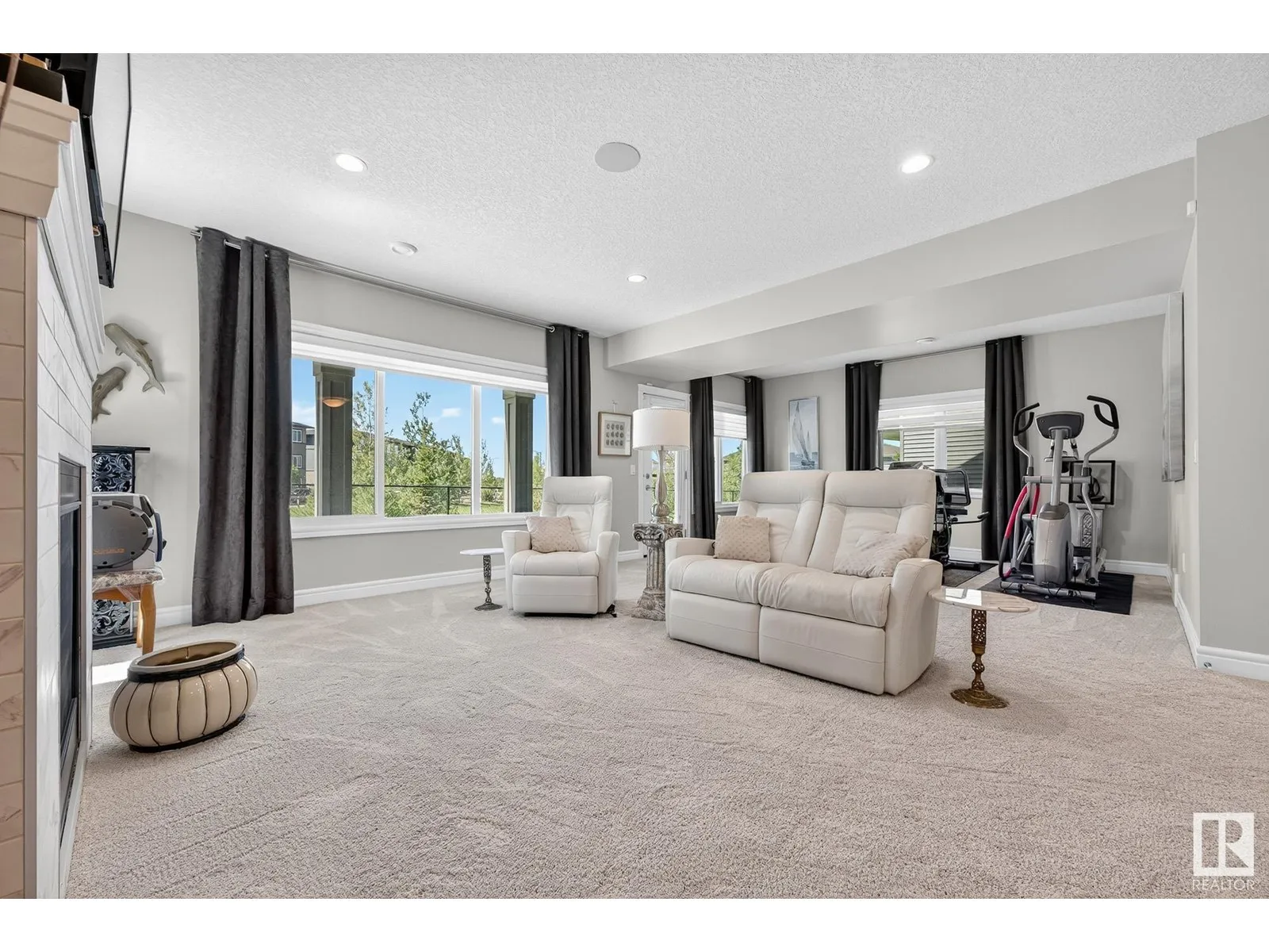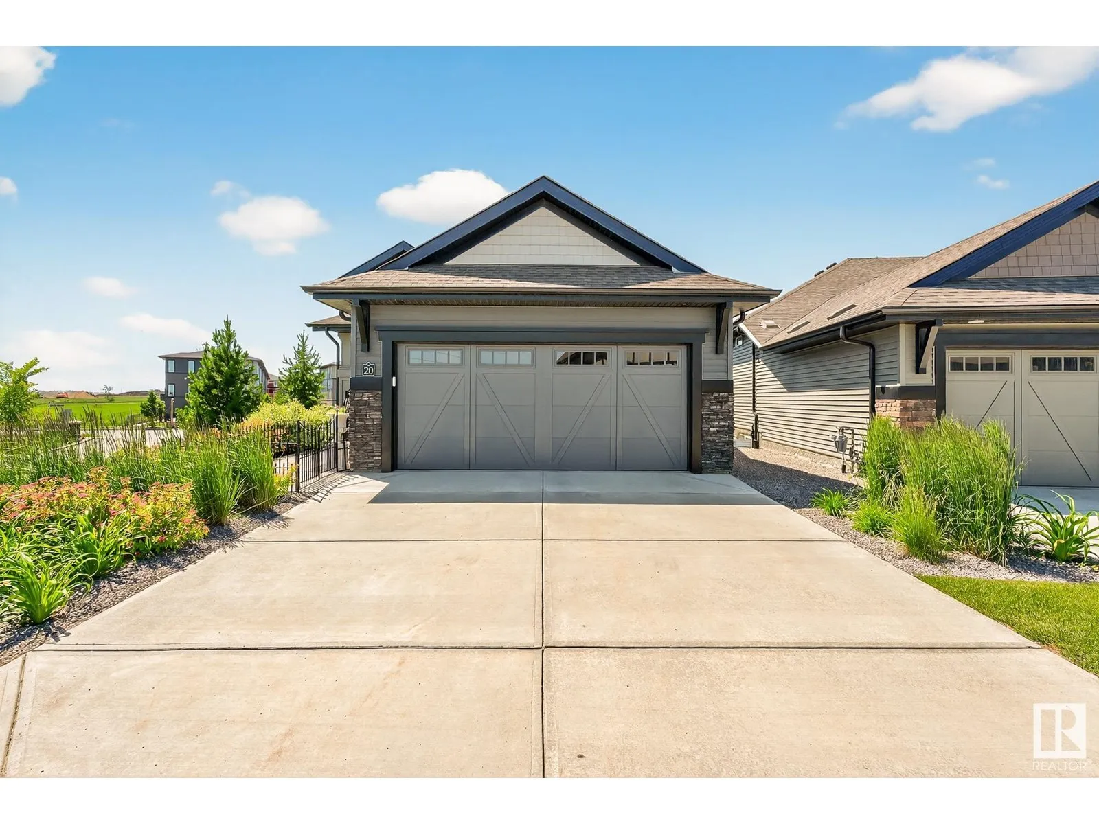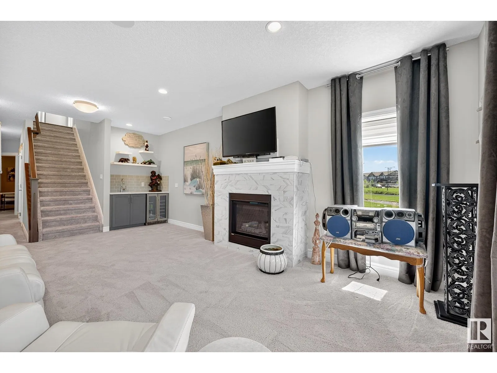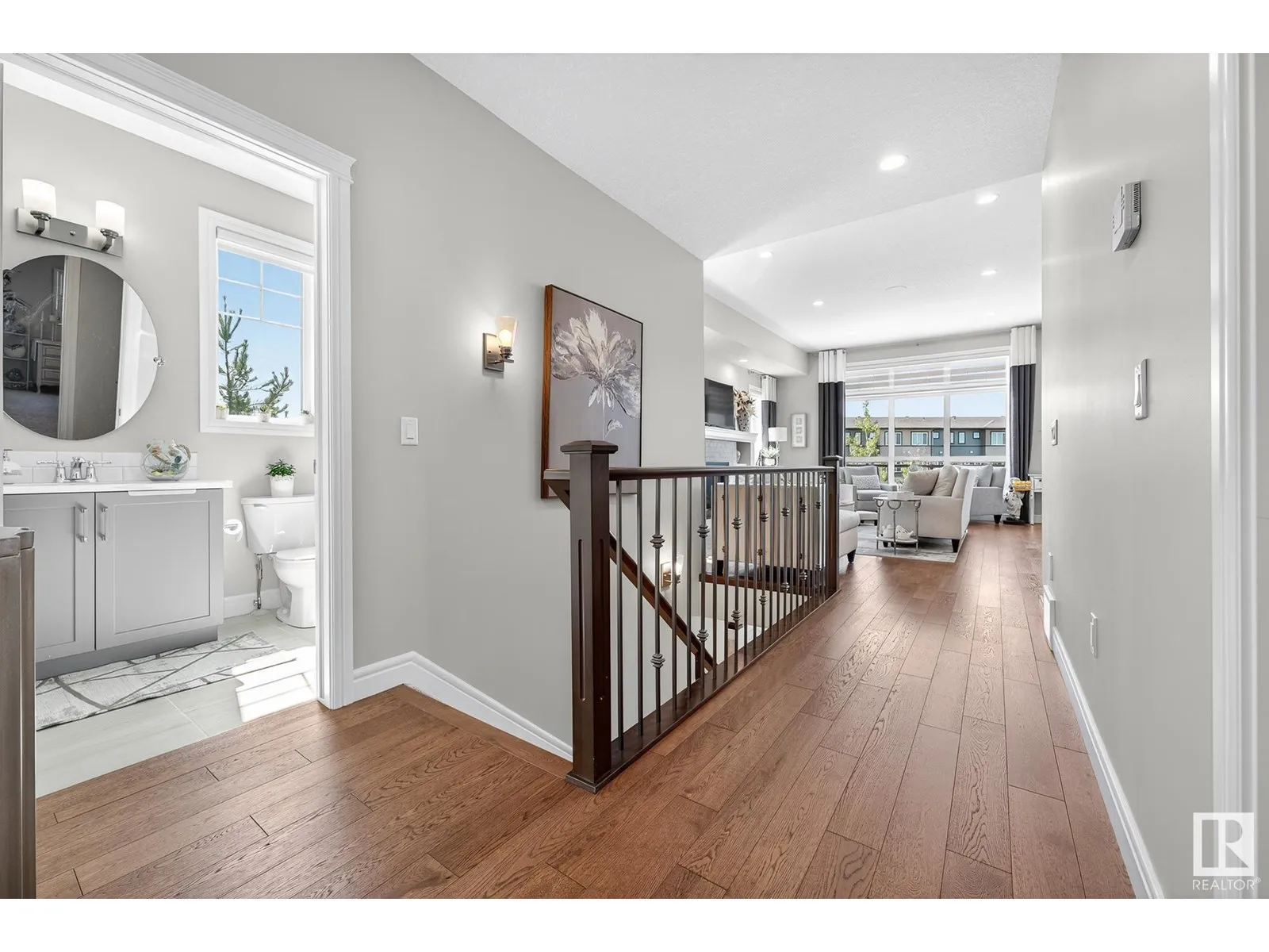 Experience elevated living in this exquisite former showhome in the Vistas at Orchardsâa rare walkout bungalow offering 2,600+sqft of designer-crafted space with private southwest exposure backing a scenic walking path. From the soaring entry to the rich engineered hardwood flooring, iron railings, and expansive triple-pane windows, every detail exudes sophistication. The chef-inspired kitchen features floor-to-ceiling cabinetry, quartz counters, and high-end built-in appliances. Relax by one of 2 elegant fireplaces or step onto the sun-drenched deck with glass railings. The luxurious primary suite offers a spa-like 5-pc ensuite and walk-in closet. The finished walkout basement includes 2 bedrooms, second den, rec room, bar area, and a full-width concrete patio. Complete w/Bose built-in speakers, air conditioning, custom drapes, heated double garage, and maintenance-free living. Enjoy exclusive access to trails, schools, parks & easy connectivity to shops and major routes to the city. (id:27476)
