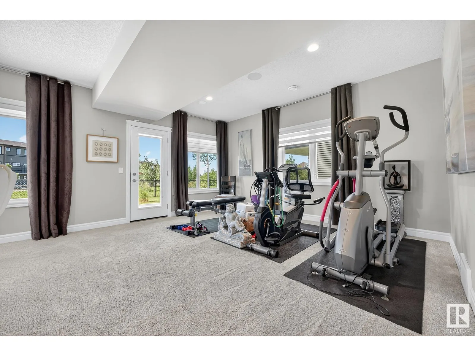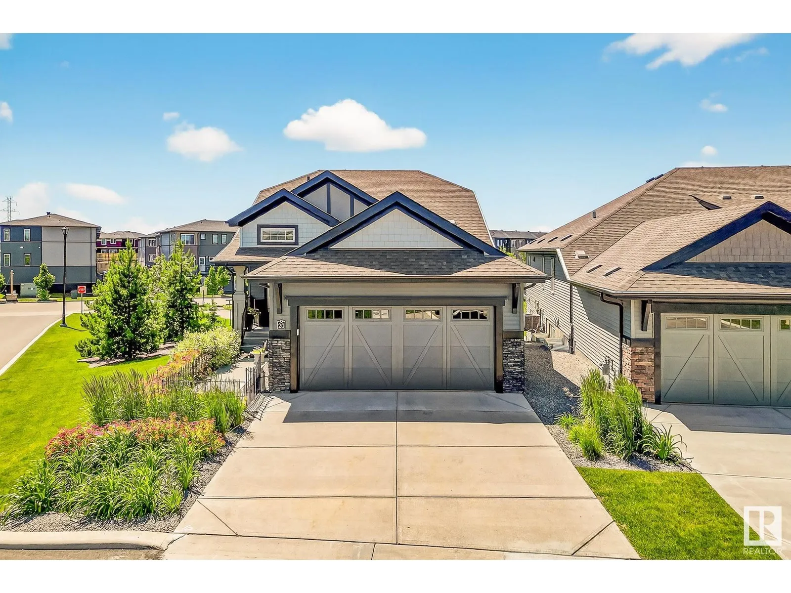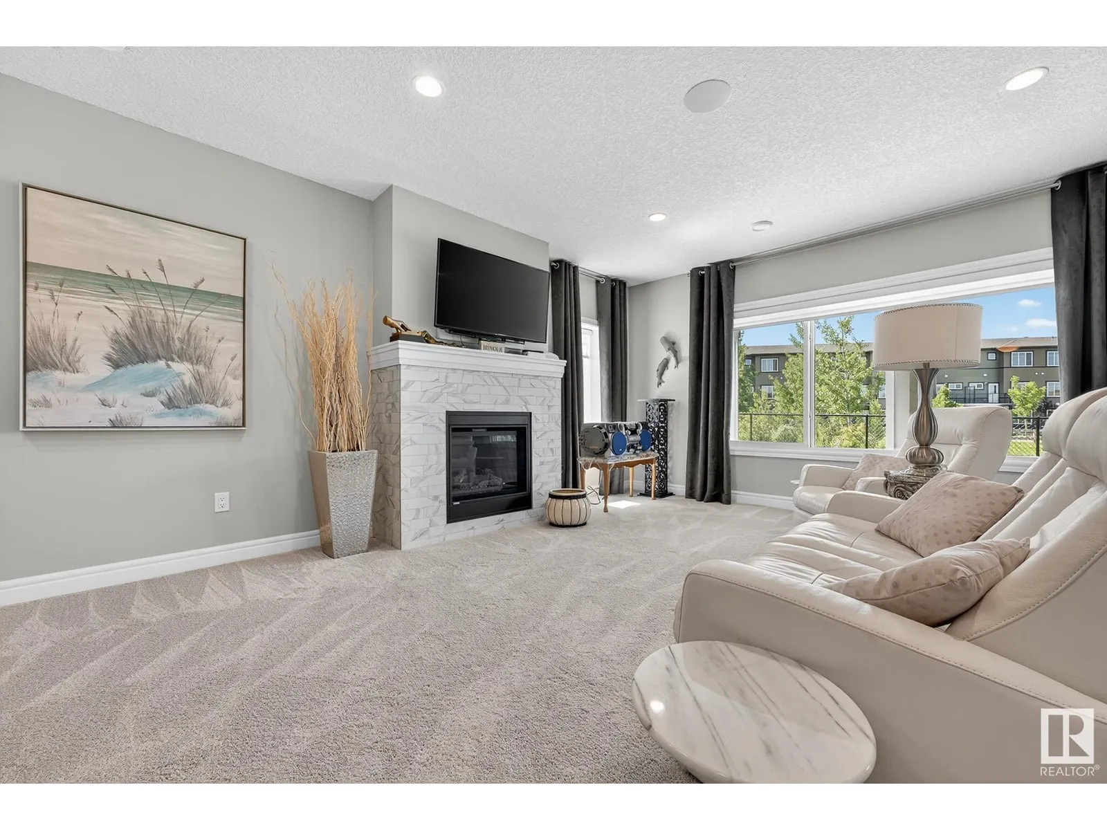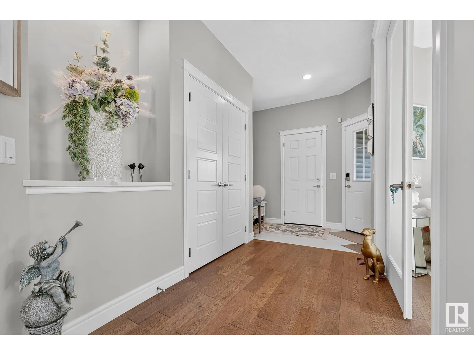 Experience elevated living in this exquisite former showhome in the Vistas at Orchardsâa rare walkout bungalow offering 2,600+sqft of designer-crafted space with private southwest exposure backing a scenic walking path. From the soaring entry to the rich engineered hardwood flooring, iron railings, and expansive triple-pane windows, every detail exudes sophistication. The chef-inspired kitchen features floor-to-ceiling cabinetry, quartz counters, and high-end built-in appliances. Relax by one of 2 elegant fireplaces or step onto the sun-drenched deck with glass railings. The luxurious primary suite offers a spa-like 5-pc ensuite and walk-in closet. The finished walkout basement includes 2 bedrooms, second den, rec room, bar area, and a full-width concrete patio. Complete w/Bose built-in speakers, air conditioning, custom drapes, heated double garage, and maintenance-free living. Enjoy exclusive access to trails, schools, parks & easy connectivity to shops and major routes to the city. (id:27476)