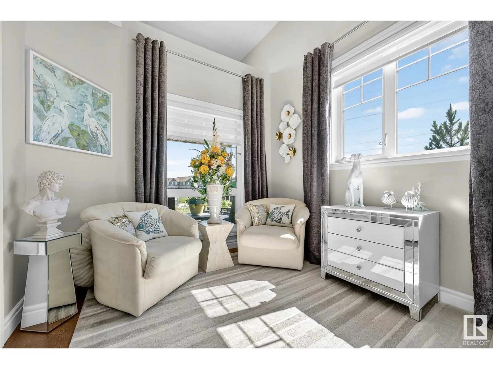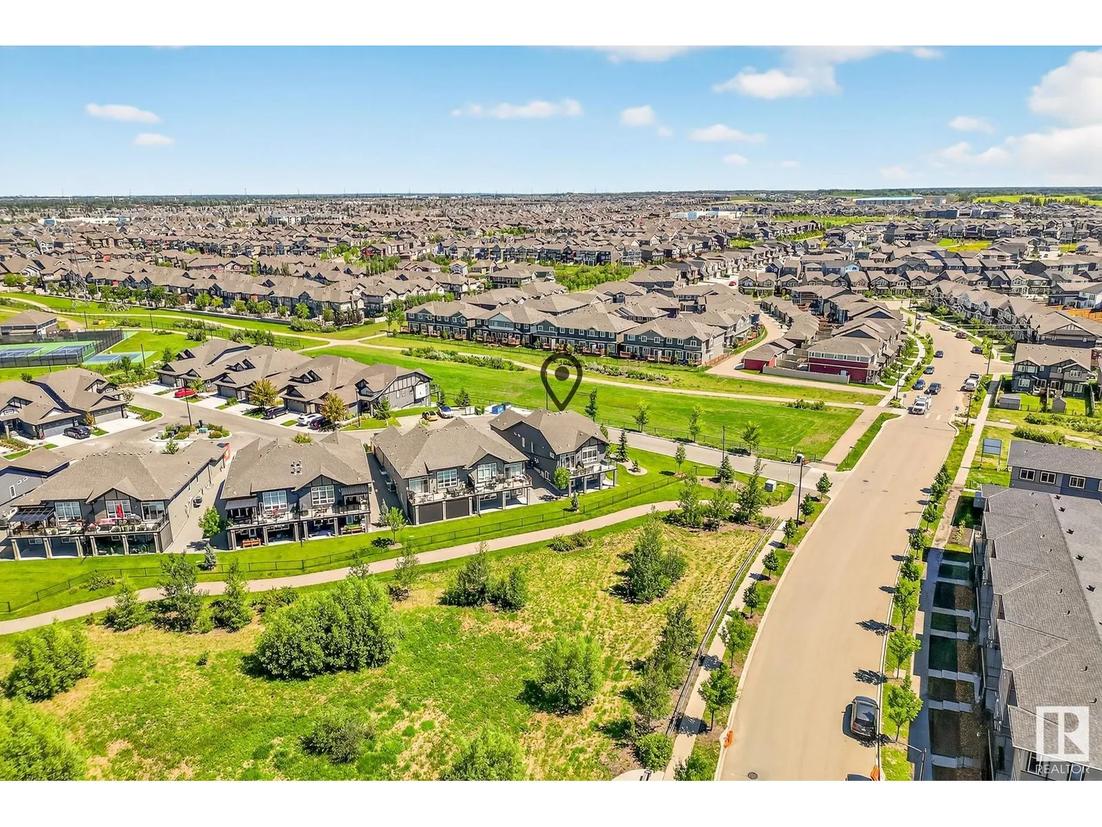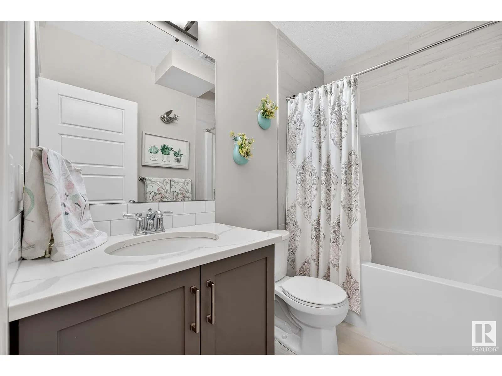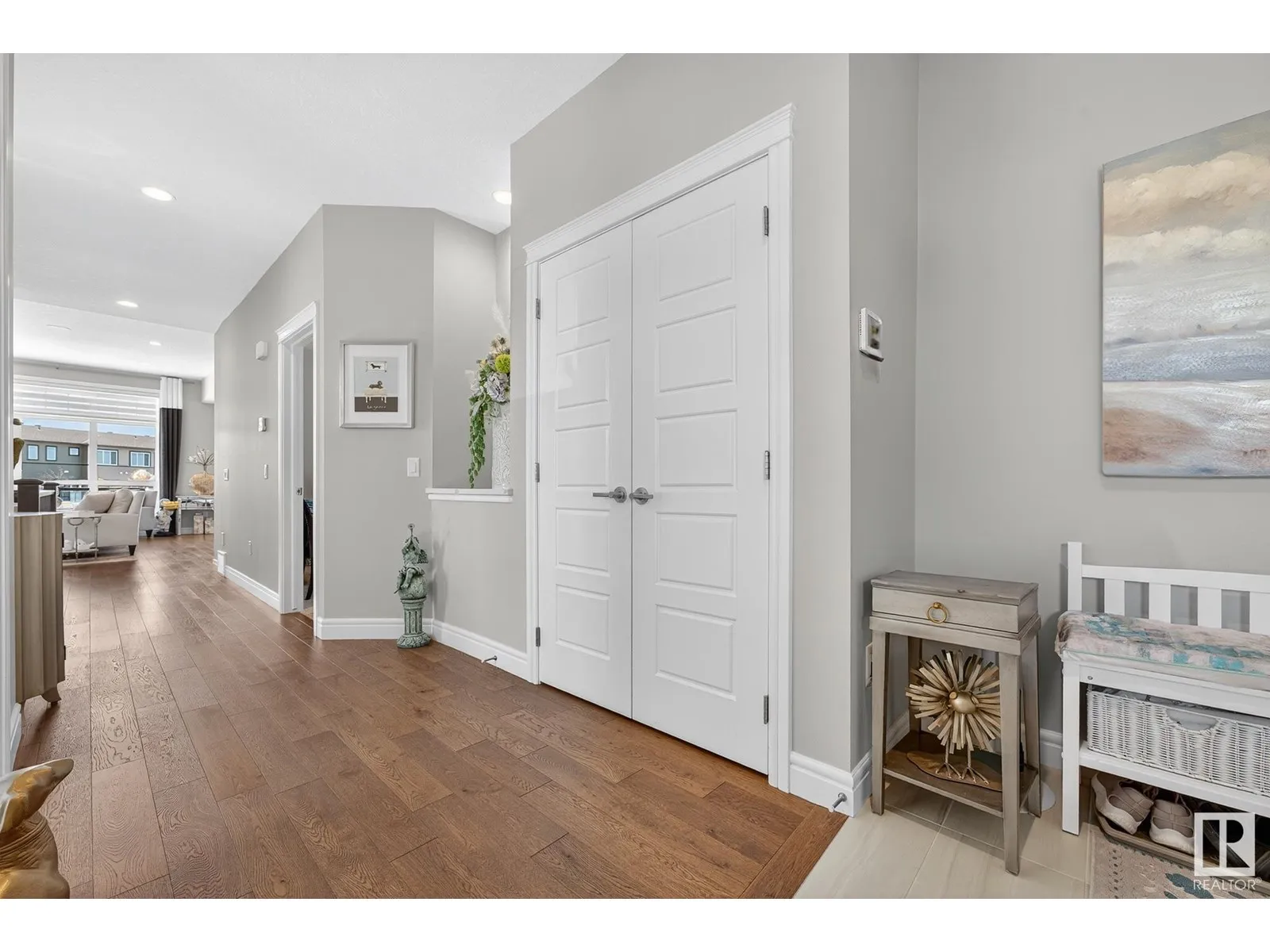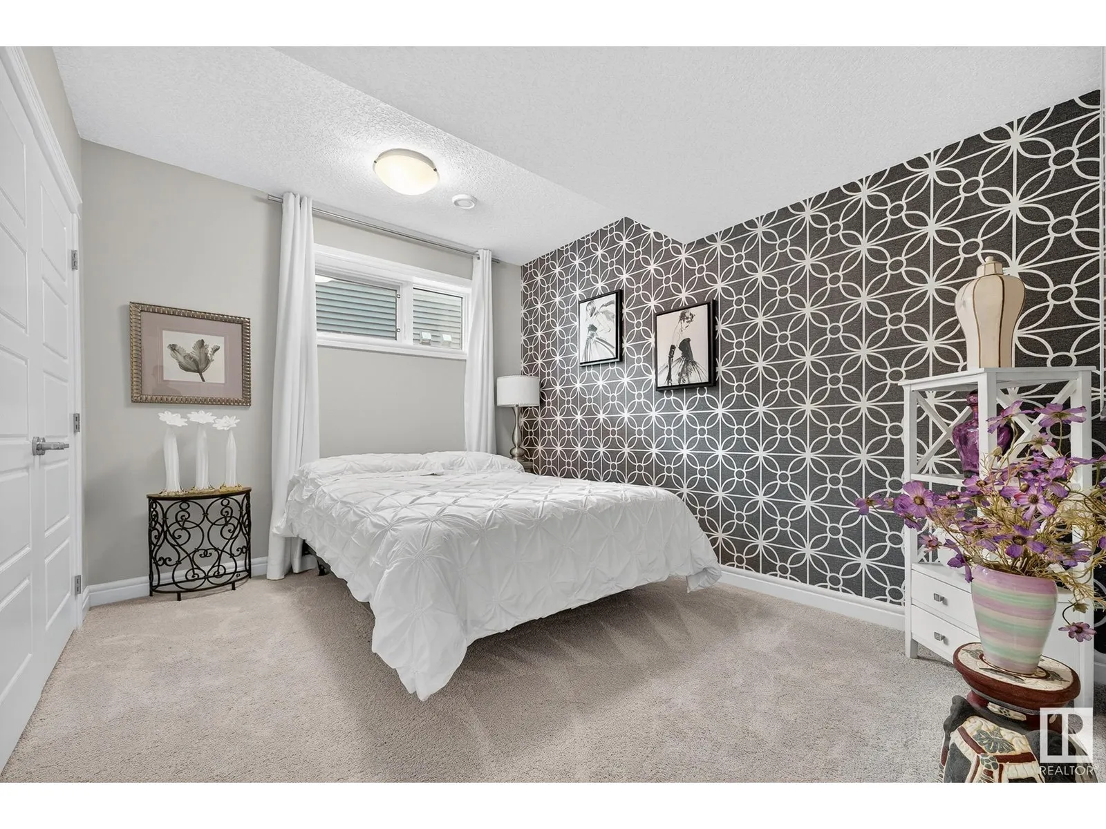 Experience elevated living in this exquisite former showhome in the Vistas at Orchardsâa rare walkout bungalow offering 2,600+sqft of designer-crafted space with private southwest exposure backing a scenic walking path. From the soaring entry to the rich engineered hardwood flooring, iron railings, and expansive triple-pane windows, every detail exudes sophistication. The chef-inspired kitchen features floor-to-ceiling cabinetry, quartz counters, and high-end built-in appliances. Relax by one of 2 elegant fireplaces or step onto the sun-drenched deck with glass railings. The luxurious primary suite offers a spa-like 5-pc ensuite and walk-in closet. The finished walkout basement includes 2 bedrooms, second den, rec room, bar area, and a full-width concrete patio. Complete w/Bose built-in speakers, air conditioning, custom drapes, heated double garage, and maintenance-free living. Enjoy exclusive access to trails, schools, parks & easy connectivity to shops and major routes to the city. (id:27476)