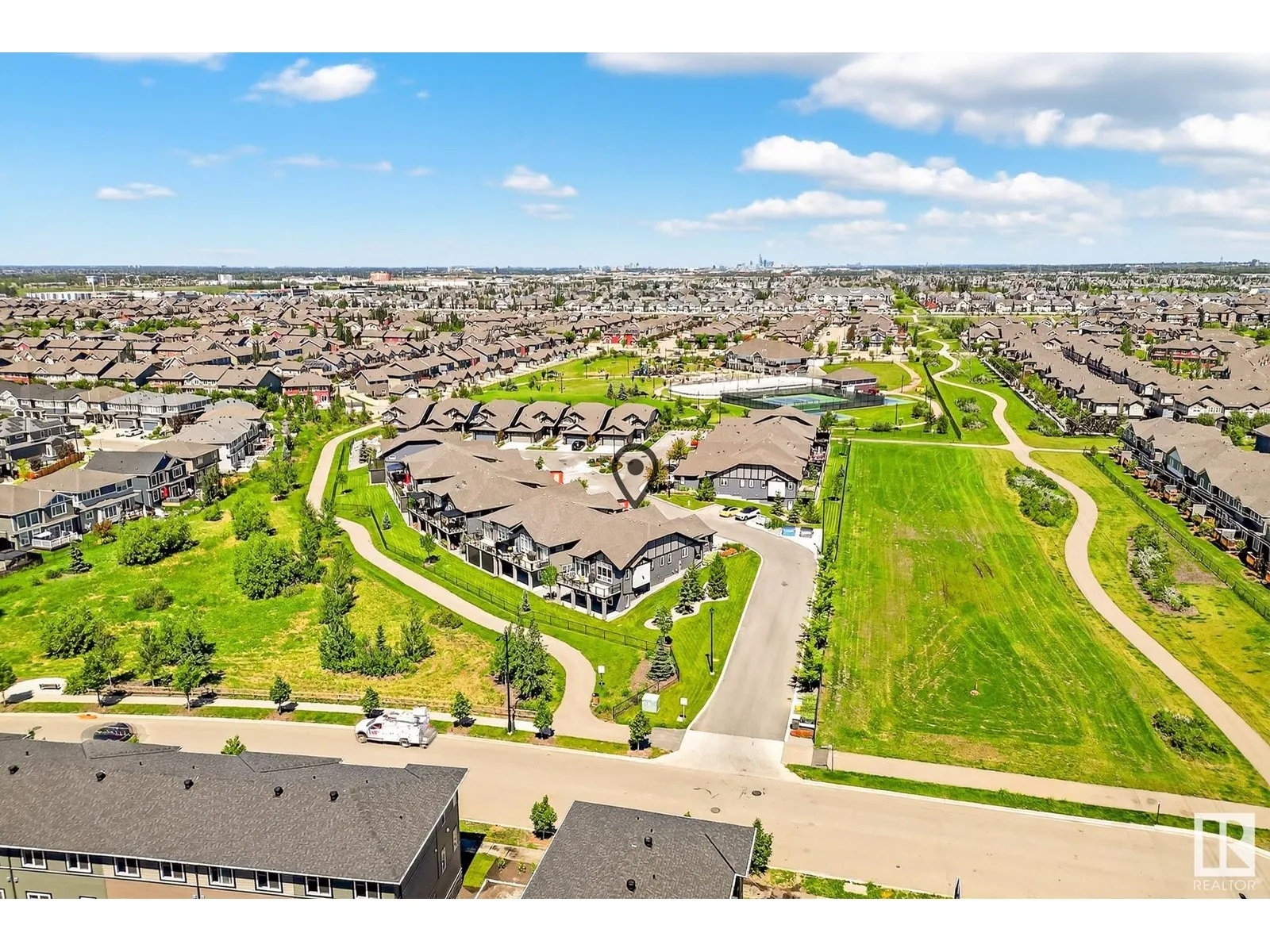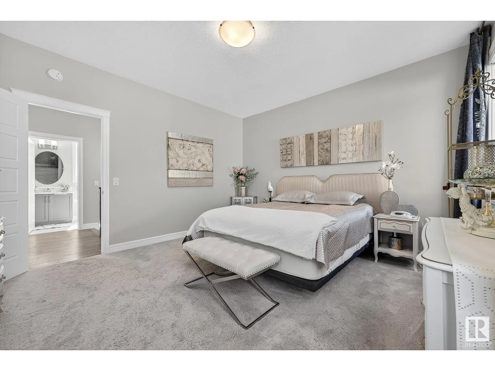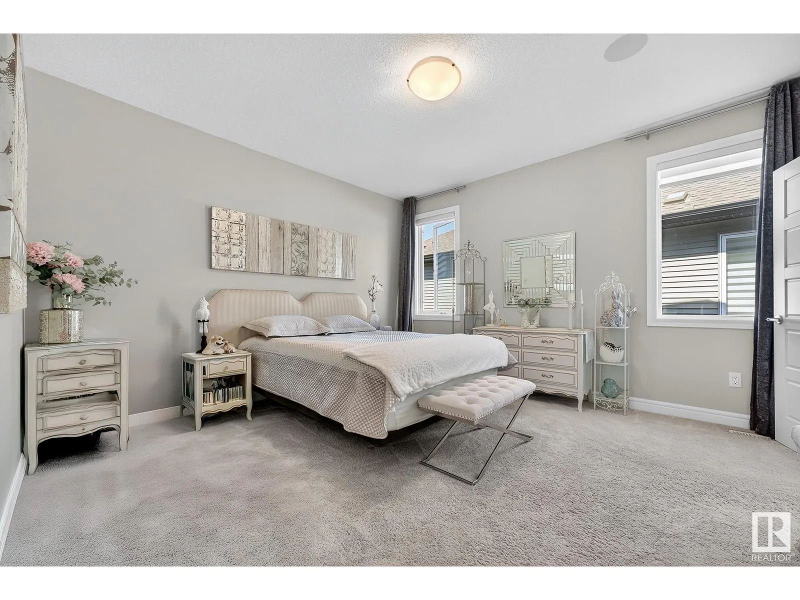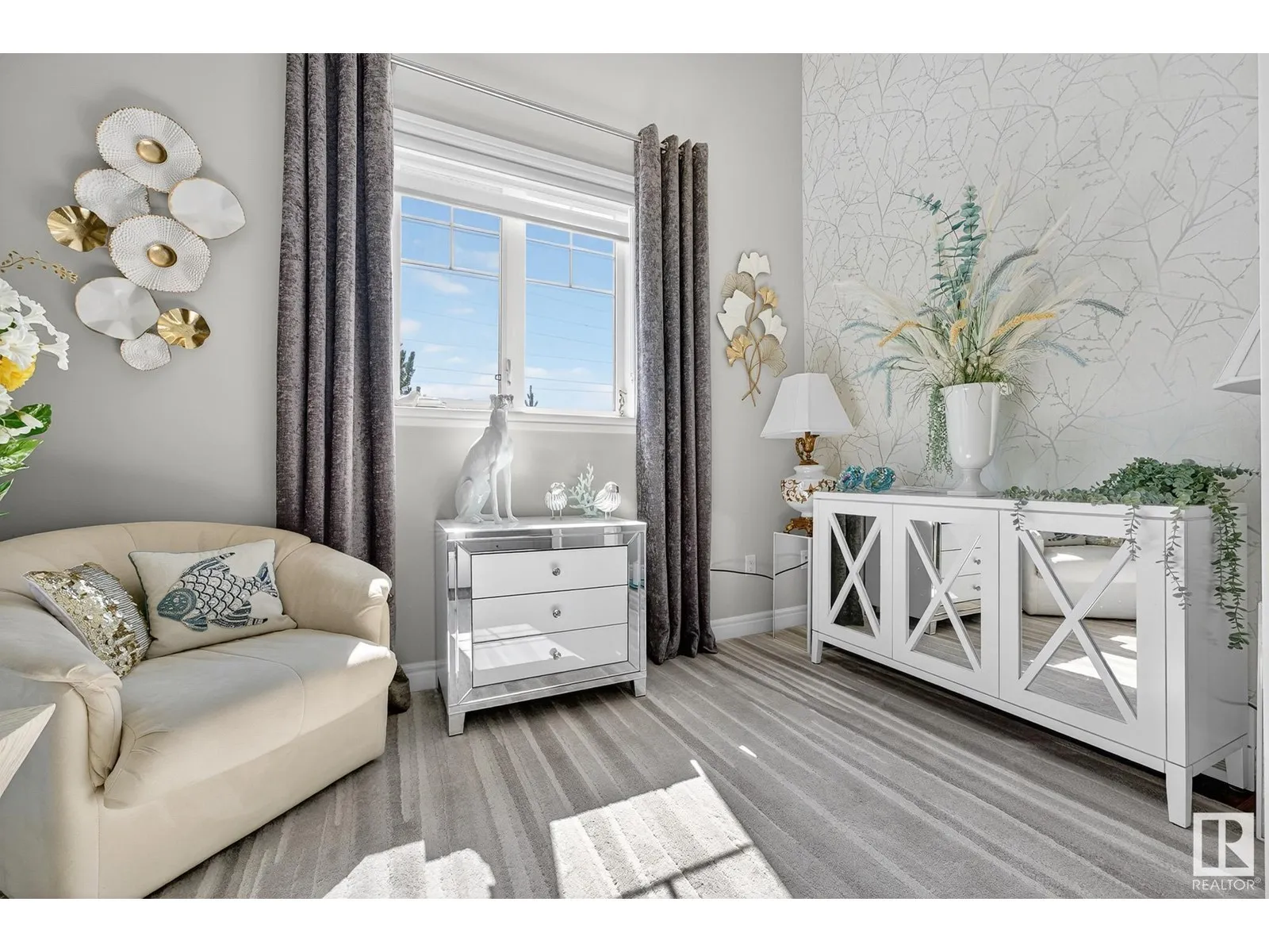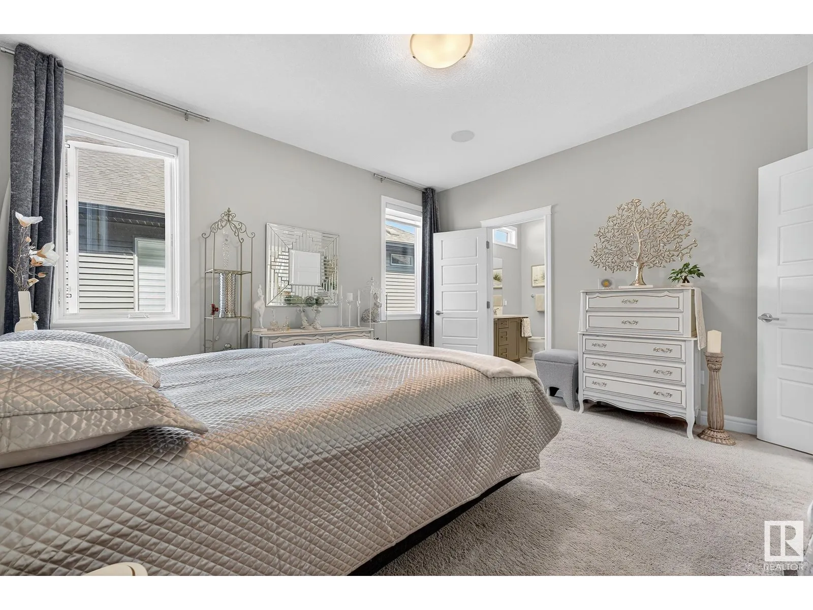 Experience elevated living in this exquisite former showhome in the Vistas at Orchardsâa rare walkout bungalow offering 2,600+sqft of designer-crafted space with private southwest exposure backing a scenic walking path. From the soaring entry to the rich engineered hardwood flooring, iron railings, and expansive triple-pane windows, every detail exudes sophistication. The chef-inspired kitchen features floor-to-ceiling cabinetry, quartz counters, and high-end built-in appliances. Relax by one of 2 elegant fireplaces or step onto the sun-drenched deck with glass railings. The luxurious primary suite offers a spa-like 5-pc ensuite and walk-in closet. The finished walkout basement includes 2 bedrooms, second den, rec room, bar area, and a full-width concrete patio. Complete w/Bose built-in speakers, air conditioning, custom drapes, heated double garage, and maintenance-free living. Enjoy exclusive access to trails, schools, parks & easy connectivity to shops and major routes to the city. (id:27476)