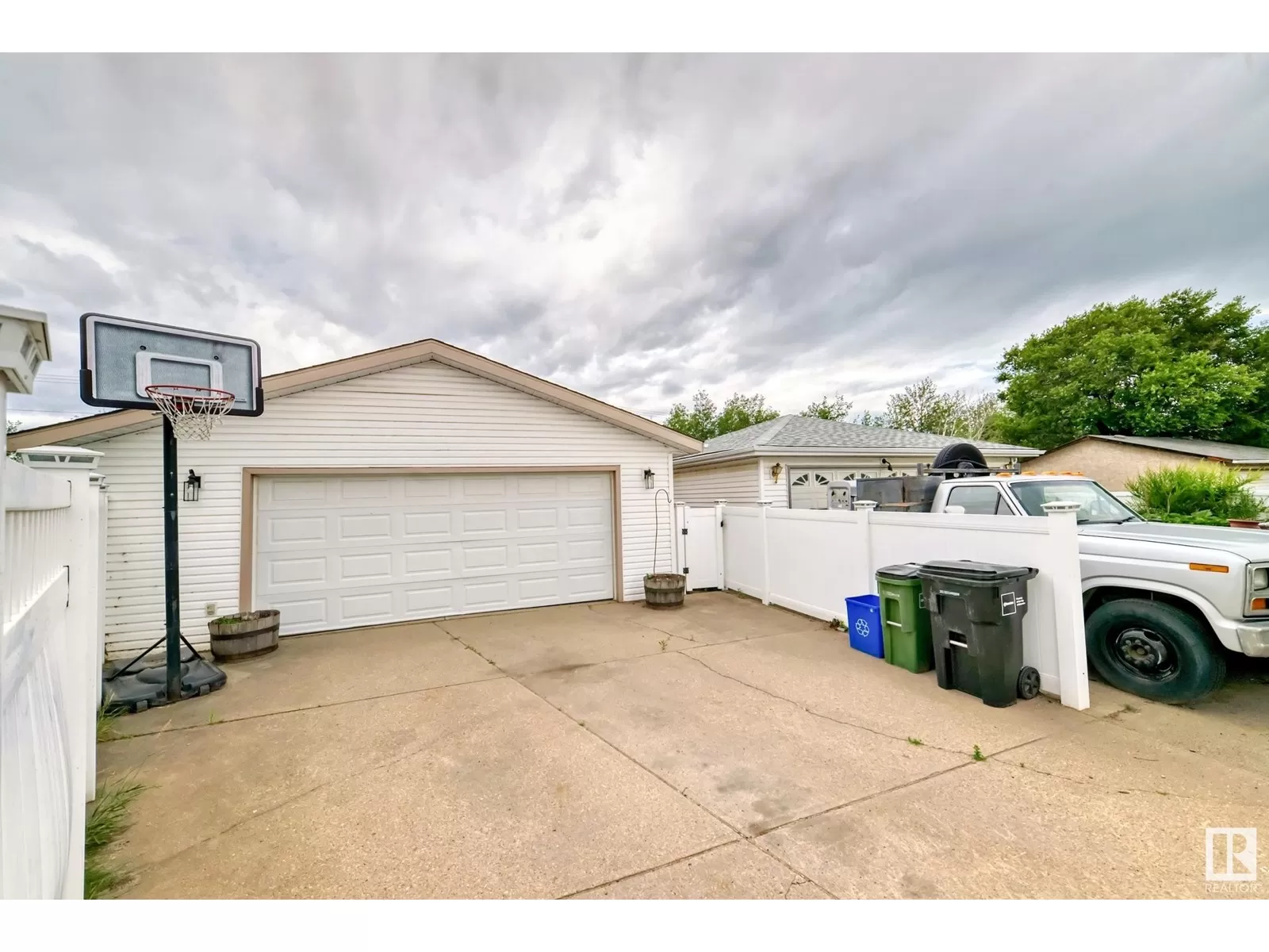 Welcome to this charming 3-bedroom, 3-bath home, perfect for first-time buyers or savvy investors looking to build equity. Located on a large lot backing onto green space, this property offers both privacy and potential in a mature, family-friendly neighborhood. The main floor features an open-concept kitchen and living area filled with natural light, granite countertops, heated tile flooring, and hardwood, creating a warm, functional family space. Windows and doors were replaced in 2021, shingles in 2018, and the deck and patio were updated in 2024. Upstairs offers three bedrooms, while the fully finished basement provides added flexibility. The oversized double garage is heated and insulated, ideal for storage or hobbies year-round. Close to parks, Clareview Rec Centre, shopping, schools, public transit, and major transportation routes. With some updates and personal touches, this home has the potential to become something truly special. (id:27476)