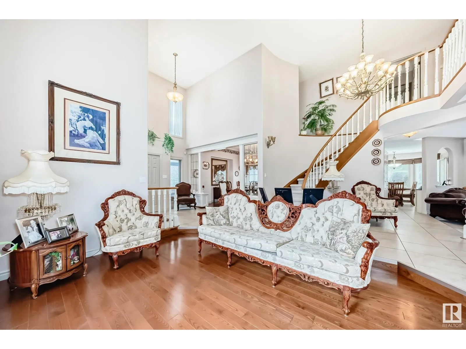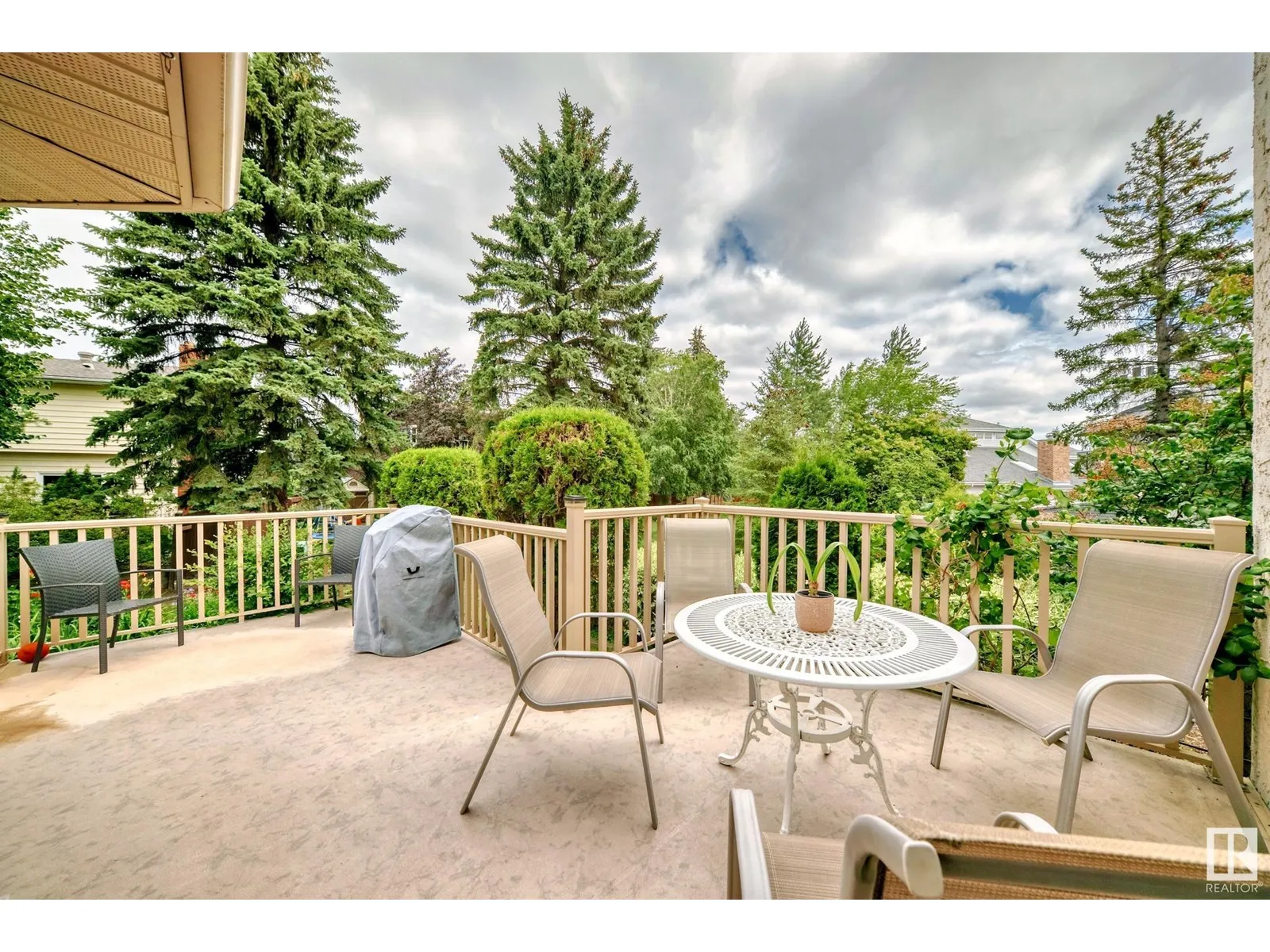 A rare, majestic gem with the river valley at your front door! This exquisite estate home offers over 3,000 sq ft plus a developed basement, a triple garage, and lush landscaping that surrounds you in natural beauty. The showstopping exterior features a soaring portico and incredible curb appeal. Inside, a grand curved staircase and open second-floor hallway make a dramatic first impression. The custom Heritage kitchen is a masterpiece of craftsmanship and quality, complemented by beautifully renovated baths and timeless finishes throughout. The like-new condition is evident at every turn. A fully finished basement with second kitchen provides flexible space for entertaining or multi-gen living. The palatial primary suite is fit for Royalty and features a covered balcony with sweeping views and the ensuite is like a dream Grecian spa. Your private backyard oasis is complete with patio, deck, and gorgeous garden beds. With a newer metal roof for peace of mind, this awe inspiring home is unforgettable! (id:27476)