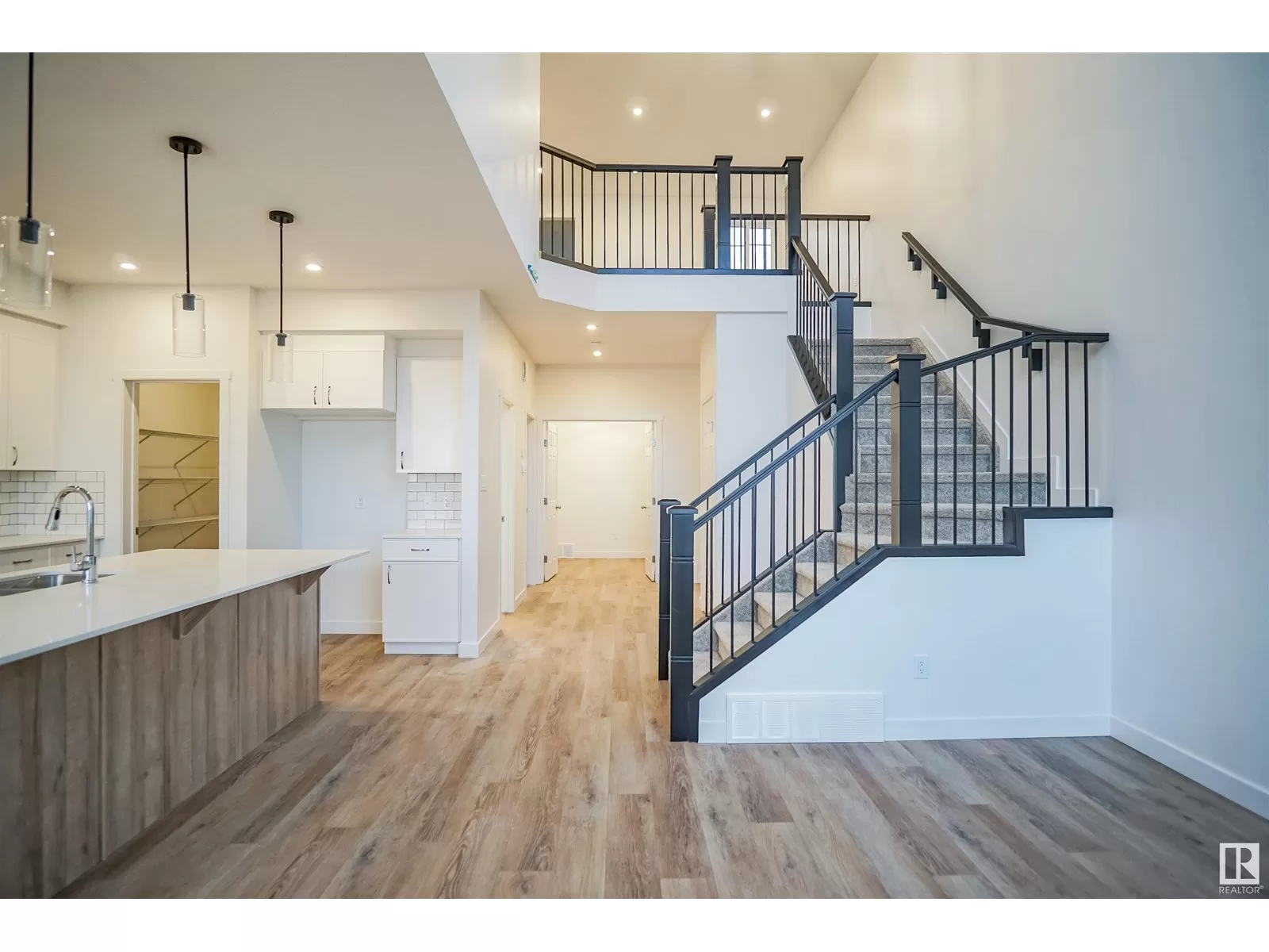 PARK BACKING !!! Welcome to the Chelsea built by the award-winning builder Pacesetter homes located in the heart of the Desrochers and backing the Park. As you enter the home you are greeted by luxury vinyl plank flooring throughout the great room ( with open to above ceilings) , kitchen, and the breakfast nook. Your large kitchen features tile back splash, an island a flush eating bar, quartz counter tops and an undermount sink. Just off of the kitchen and tucked away by the front entry is a main floor bedroom and a 4 piece bathroom. Upstairs is the primary bedroom retreat with a large walk in closet and a 4-piece en-suite. The second level also include 2 additional bedrooms with a conveniently placed main 4-piece bathroom and a good sized central bonus room. Close to all amenities and easy access to the Henday and the white mud trail. *** This home is under construction and the photos used are from a previous similar home, the colors and finishings may vary ,complete by February 2026*** (id:27476)