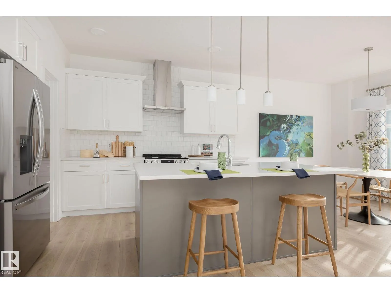 FALL IN LOVE WITH THE FULTON BY AKASH HOMES! Spanning over 2100 sqft, and NOT A ZERO LOT LINE, this stunning two-storey blends modern style with everyday comfort, with an attached dbl garage, and a SEPARATE SIDE ENTRY. The open-to-below great room showcases expansive windows, a striking electric fireplace, and elegant spindle railings that frame the staircase. The main floor offers 9' ceilings, a den, French imported laminate flooring, and a walkthrough pantry leading to a dream kitchen with quartz countertops, beautiful cabinetry, and an abundance of prep space. Upstairs, unwind in the bonus room, enjoy convenient laundry, and retreat to your primary suite with dual sinks, a soaker tub, and a separate shower. PLEASE NOTE PICTURES ARE OF SHOW HOME; ACTUAL HOME, PLANS, FIXTURES, AND FINISHES MAY VARY AND ARE SUBJECT TO AVAILABILITY/CHANGES; HOME IS UNDER CONSTRUCTION. COMPLETION DECEMBER 9, 2025! (id:27476)