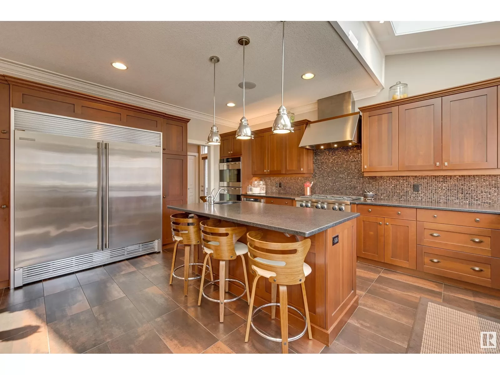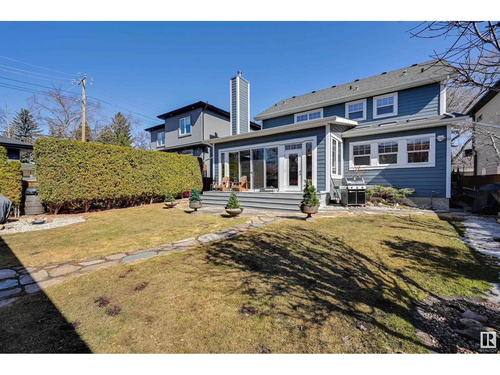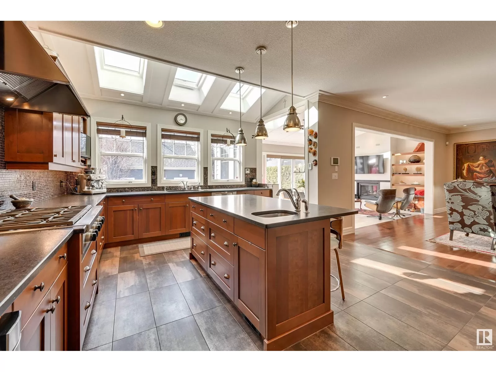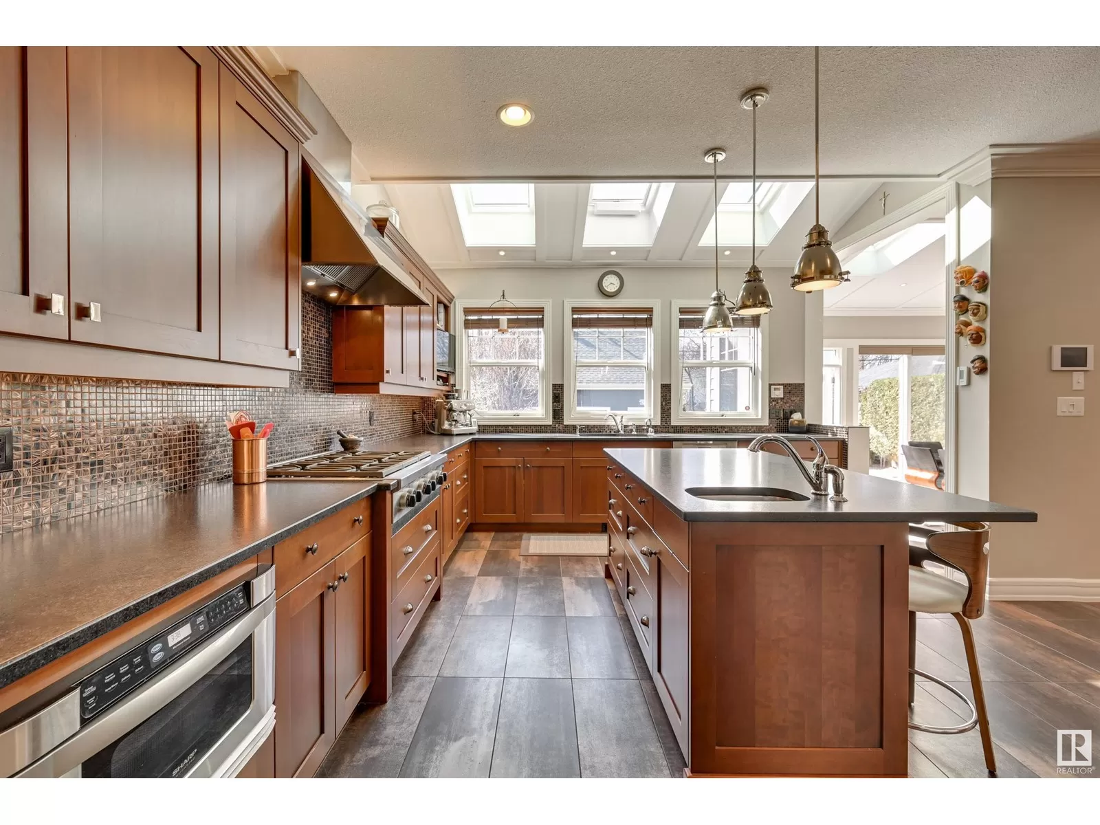 Pristine Executive Craftsman Style Two Storey in Glenora! Situated on a large lot on a quiet, tree-lined street is this Award Winning Infill, featuring nearly 4,300 sqft of living space. No expense was spared in the custom build process - feel the quality of high end materials used throughout: imported Italian tile, luxurious hardware, custom cabinetry & more. Through the front door is a beautiful two storey front foyer. Then, the space opens beautifully w/ a large chefs kitchen with Towne and Countree Cabinets, Decore / Icon / Miele appliances, a large island with honed granite counters. The kitchen overlooks the perfectly landscaped backyard and enjoys tons of natural sunlight from high end windows & skylights. Next is the dining area - perfect for entertaining. Then the living room & family room each with a fireplace. Main floor is complete with a powder room & office / den. Upstairs: a full bath & three bedrooms including the primary with walk-in closet and spa-like en-suite. Fully finished Basement! (id:27476)