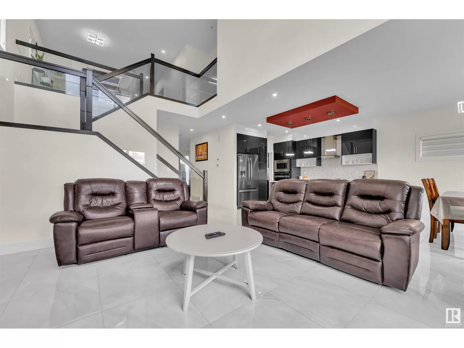 Backing onto green space & pond â NO NEIGHBOURS AT THE BACK! Double car garage detached home || 5 BR, 3 Bath + Den + Bonus Room + Spice Kitchen + 2 Living Areas (Living & Family) || Main floor foyer opens to spacious living area & mudroom. Moving forward â open-to-above family room with electric fireplace, feature wall, indent ceiling, BIG windows with greenery view & tons of sunlight. Main kitchen with stainless steel appliances & centre island. Spacious spice kitchen with window. Dining nook with beautiful backyard view. Main floor full BR & full bath. Glass railing leads to upper-level bonus room. Den currently used as prayer room â can be used as office. Primary BR with indent ceiling, feature wall, W/I closet, ensuite & views of the pond. 3 more bedrooms with common 4-pc bath. Laundry on upper level. Enjoy privacy of a fully fenced backyard and the allure of a concrete deck.Enjoy outdoor time with nearby parks, playgrounds, and easy access to top-rated schools and shopping. Commuting is a breeze. (id:27476)
