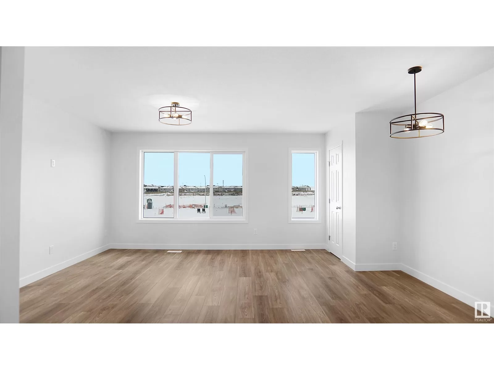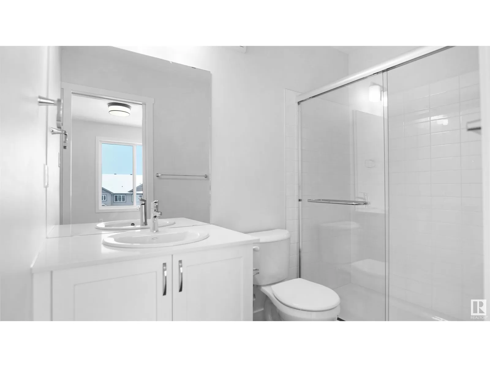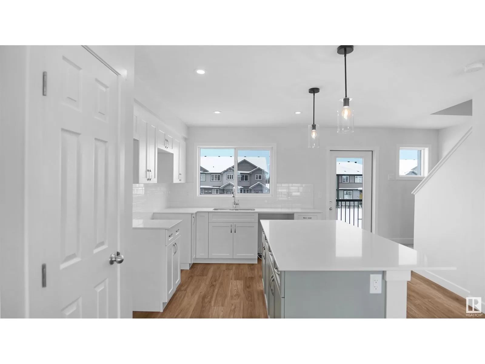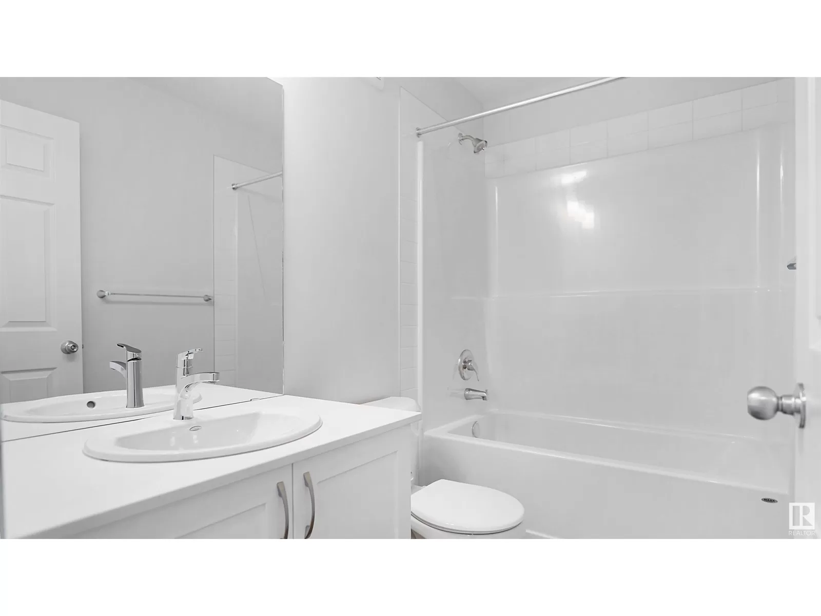 Welcome to this brand new half duplex the âReimer IIâ Built by the award winning builder Pacesetter homes and is located in one of Edmonton's nicest north east communities of Marquis and just steps to the rive valley. With over 1180+ square Feet, this opportunity is perfect for a young family or young couple. Your main floor as you enter has a flex room/ Bedroom that is next to the entrance from the garage with a 3 piece bath. The second level has a beautiful kitchen with upgraded cabinets, upgraded counter tops and a tile back splash with upgraded luxury Vinyl plank flooring throughout the great room. The upper level has 2 bedrooms and 2 bathrooms. This home also comes completed with a single over sized attached garage. *** Photo used is of an artist rendering , home is under construction and will be complete by end of December 2025 *** (id:27476)