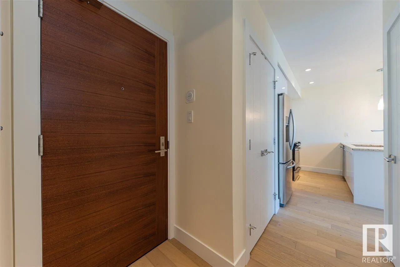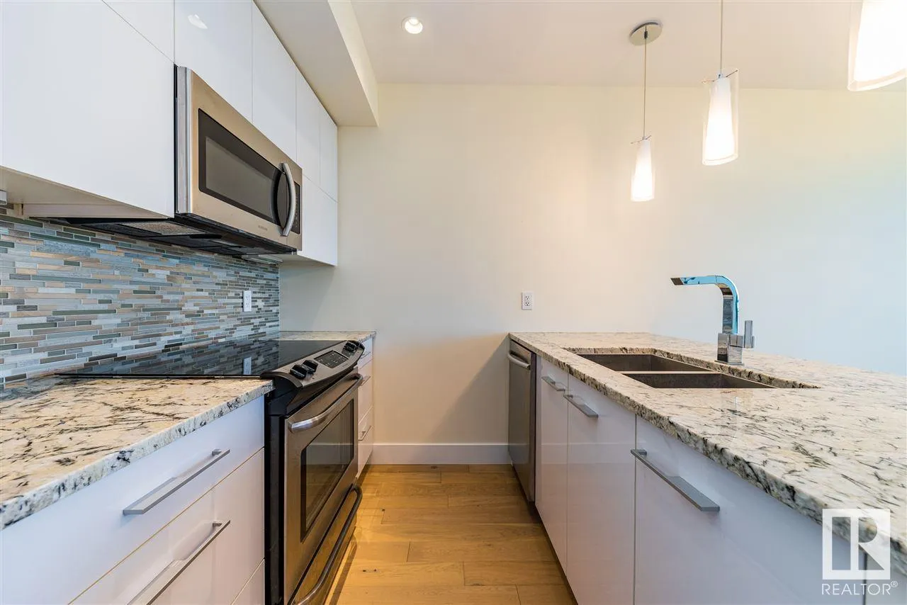 Immaculate 1 Bedroom Executive Condo in the Magnificent Pearl Tower. Features Floor to Ceiling Windows, New White Oak Engineered Flooring, Open Floor Plan, Lovely Kitchen with Granite Counters and Stainless Steel Appliances, Spacious Living Room with Glass Door Access to the Balcony, Four Piece Bathroom with Soaker Tub/Shower Surround and Cheater Door to the Master Bedroom. Insuite Laundry, Hidden Roller Blinds, In-Ceiling Speakers, Heat Pump Heating/Central Air Conditioning, Programable Thermostat. Also, Includes a Titled Underground Parking Stall (#352) with Storage Cage. Complex Amenities Include On Site Concierge Service, Fitness Room, Social Rooms with Kitchen and Patio Area. Exceptional Location Near Restaurants, Shopping, Transportation, the River Valley and All Amenities. (id:27476)