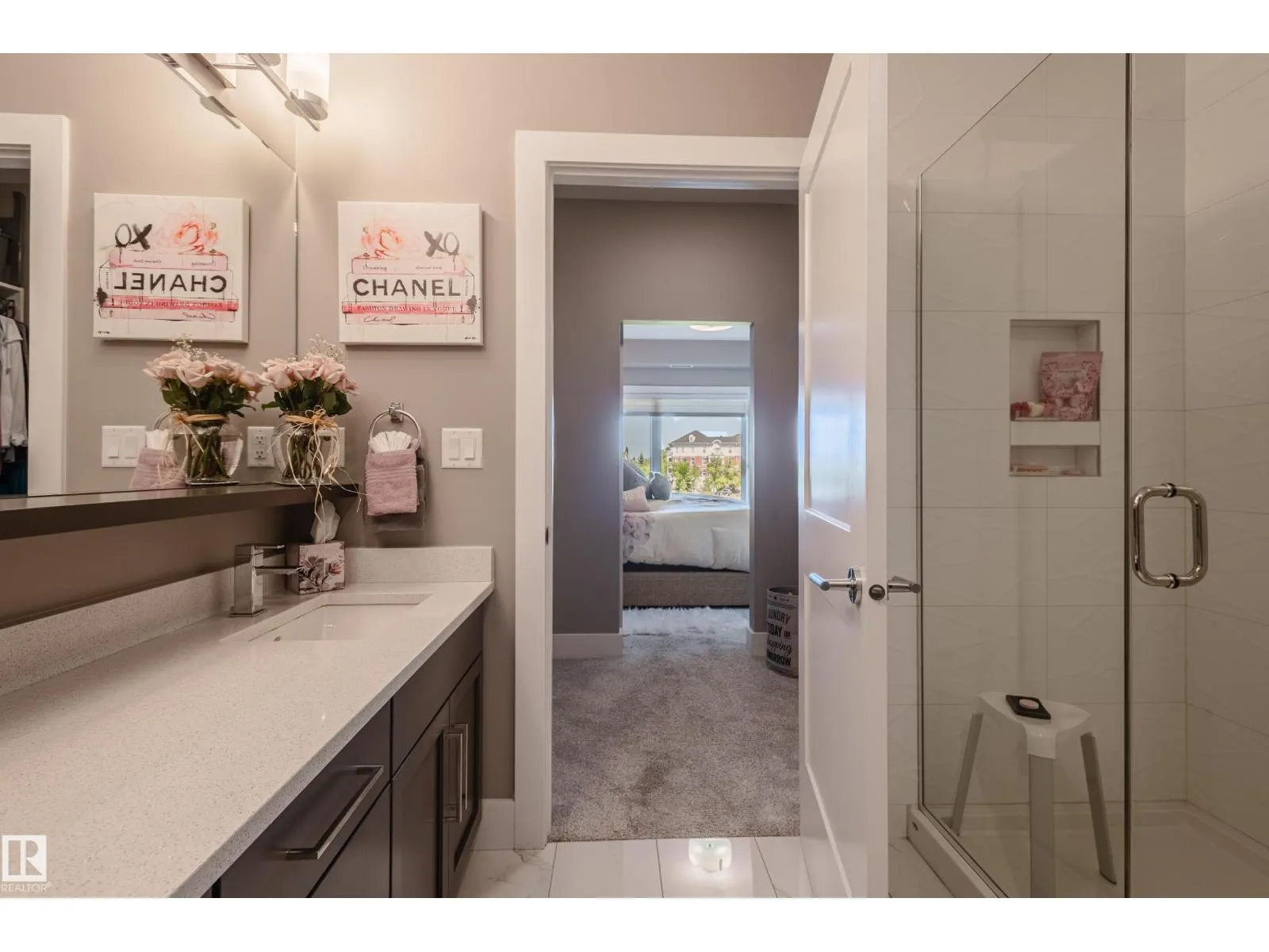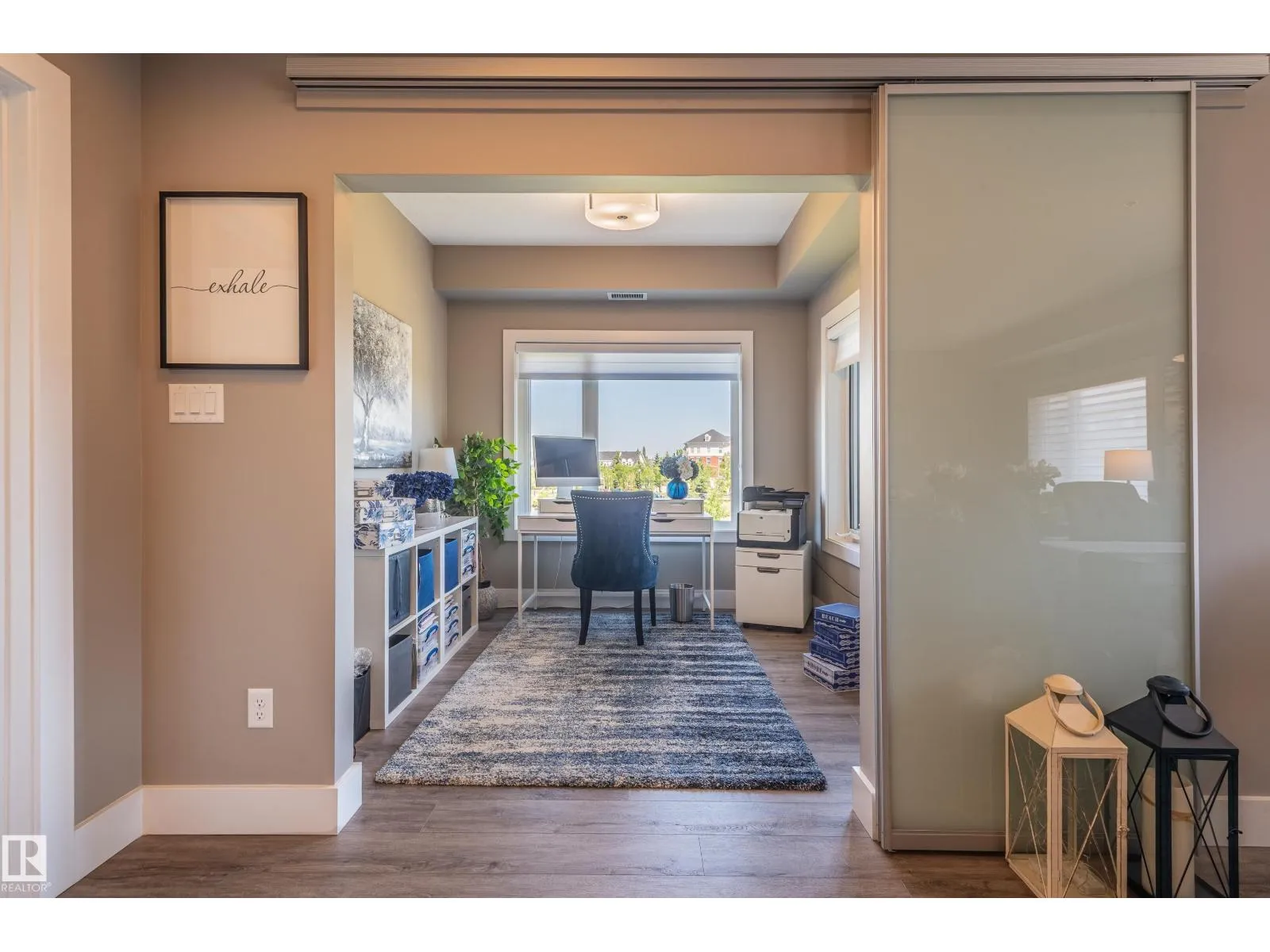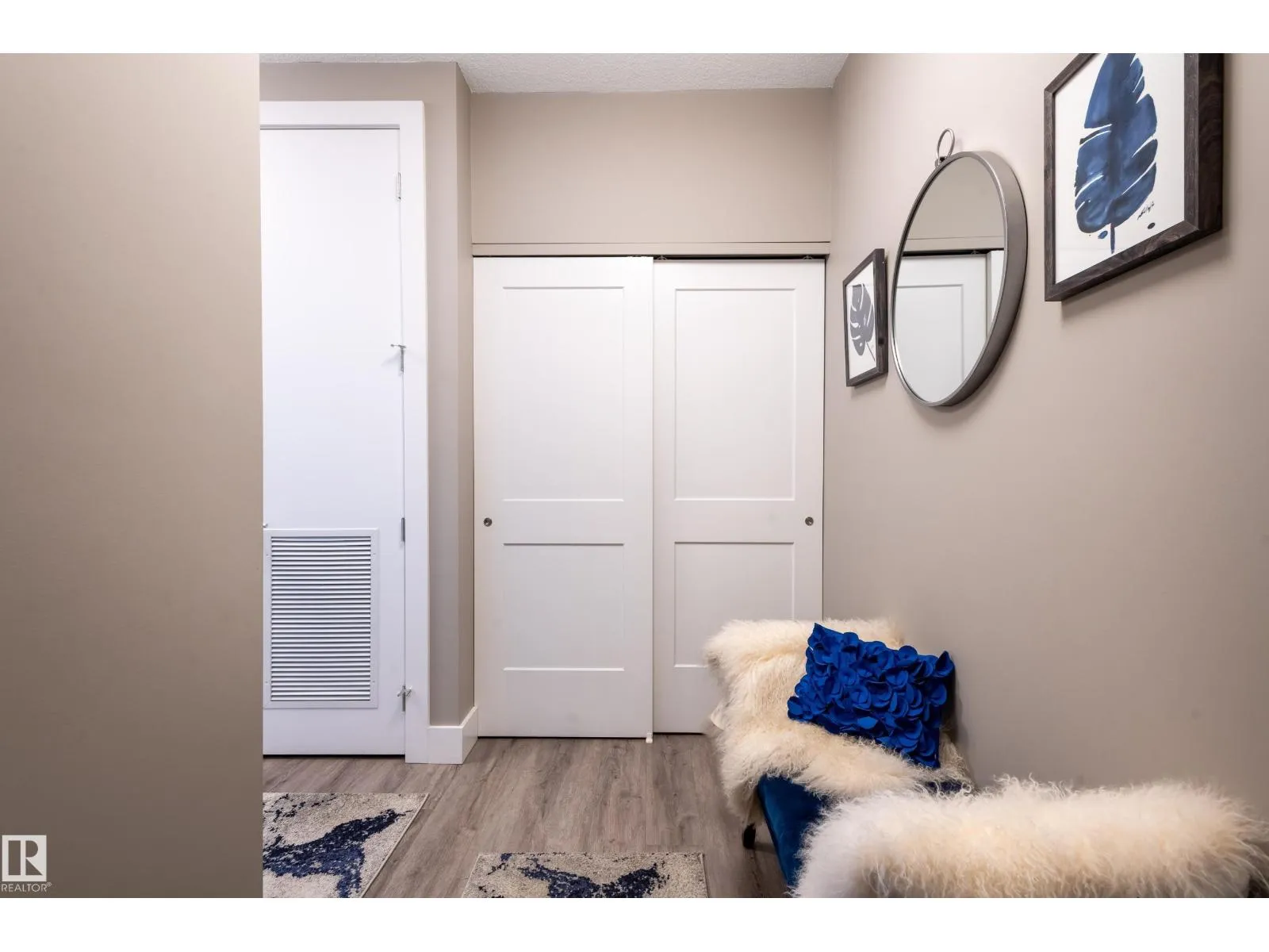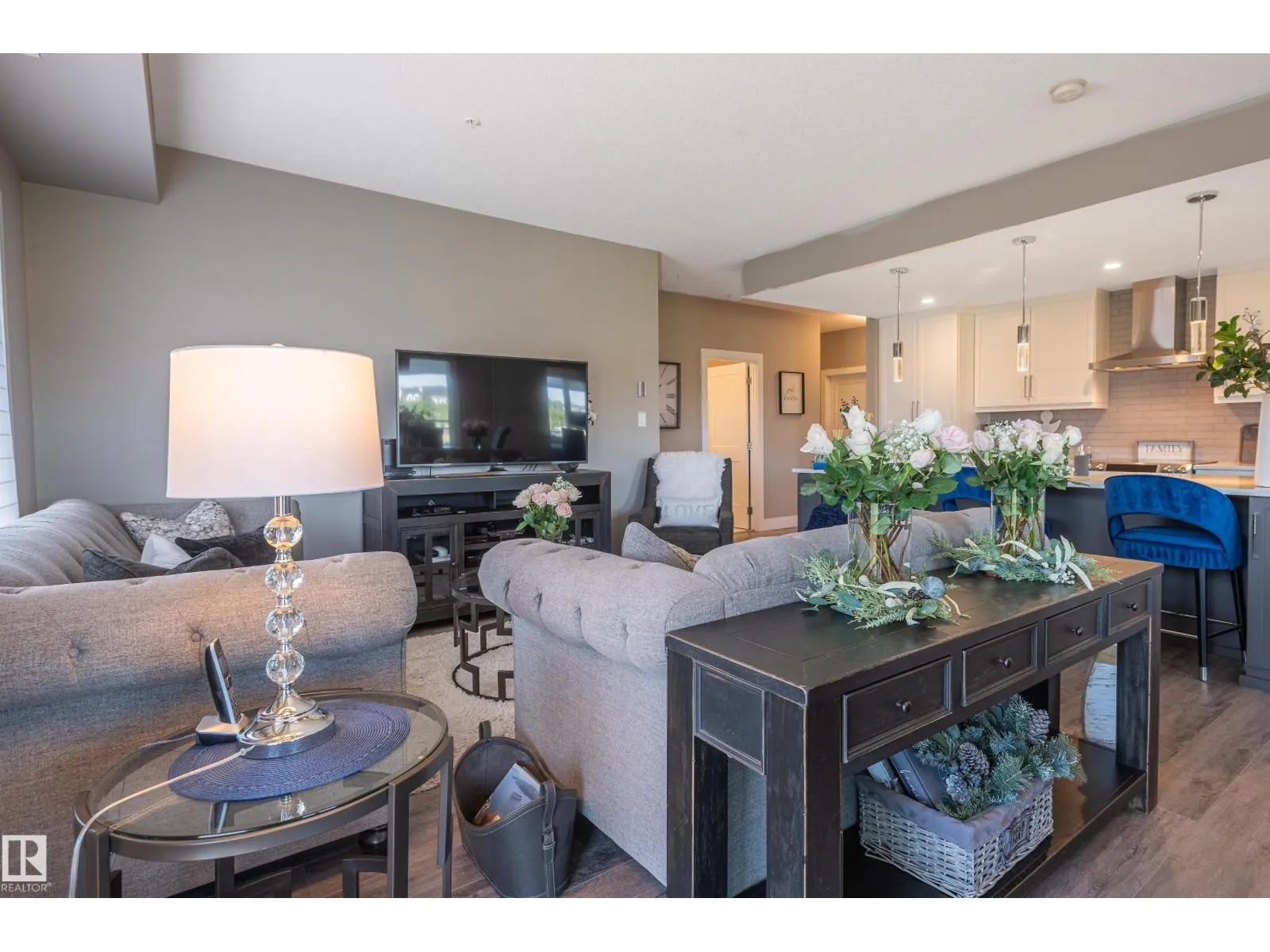 Extensively upgraded lake-facing corner unit in sought-after Veritas, offering awe-inspiring views from every angle. This immaculate one-owner home features 2 spacious bdrms, 2 baths, & a bright den. Enjoy sunny mornings & shady evenings on wrap-around deck. The two-tone kitchen is a standout with upgraded appliances, a tile backsplash, & a 6â extended island with added cabinetry on both sides. Designer lighting, magazine-worthy layout & décor, & a spa-inspired ensuite. A/C. Over $25,000 in thoughtful upgrades also include barn doors, premium flooring, custom shower tile, additional quartz countertops, blinds, hardware, & a second (surface) parking stall that adds everyday convenience, plus a heated stall with secure storage. Pride of ownership shines throughoutâclean, cozy, and stylish. Located steps from countless amenities in one of Edmontonâs most desirable communities, this home offers a seamless blend of comfort, elegance, and breathtaking views. Style meets serenity in this Griesbach gem! (id:27476)