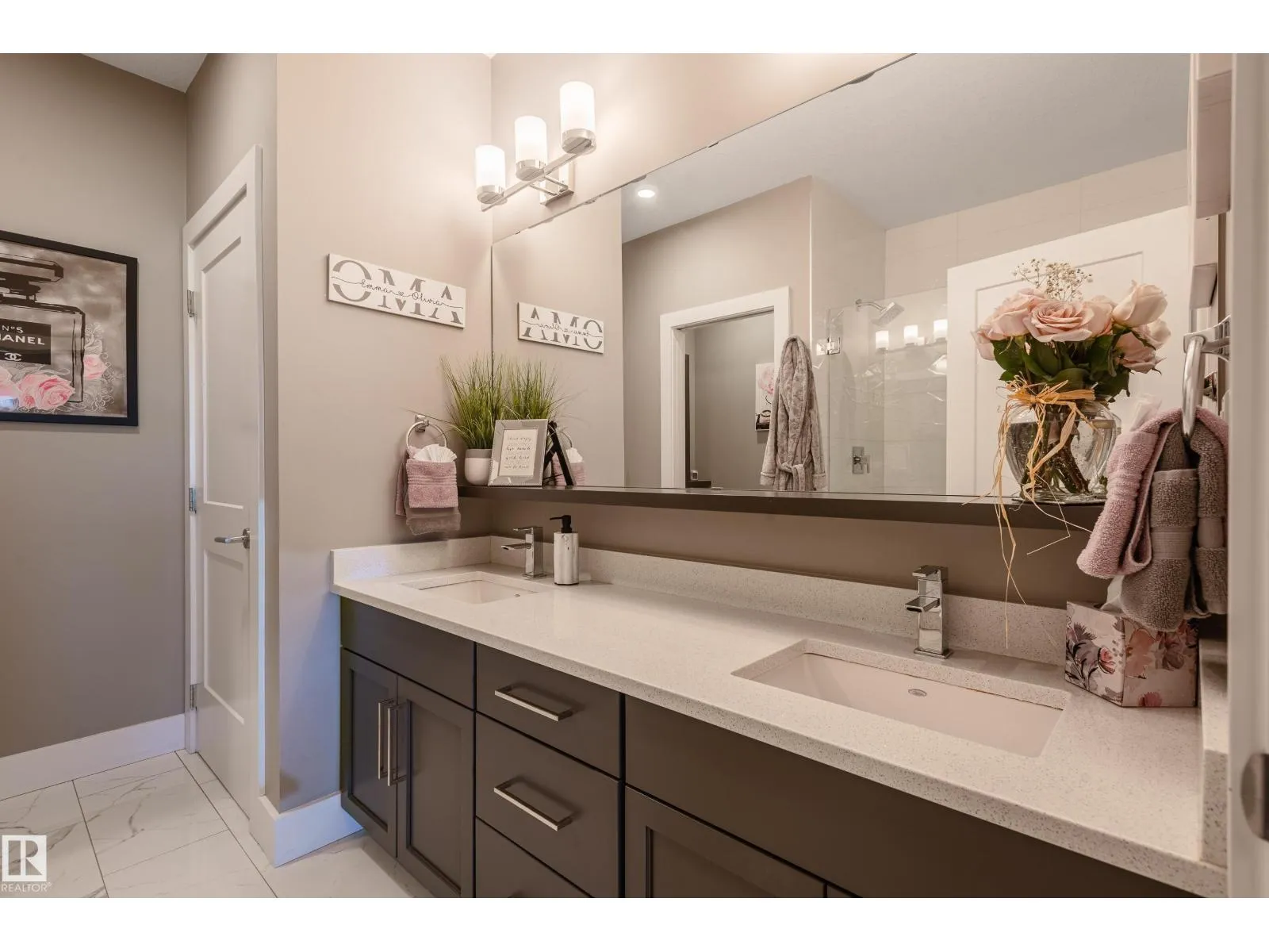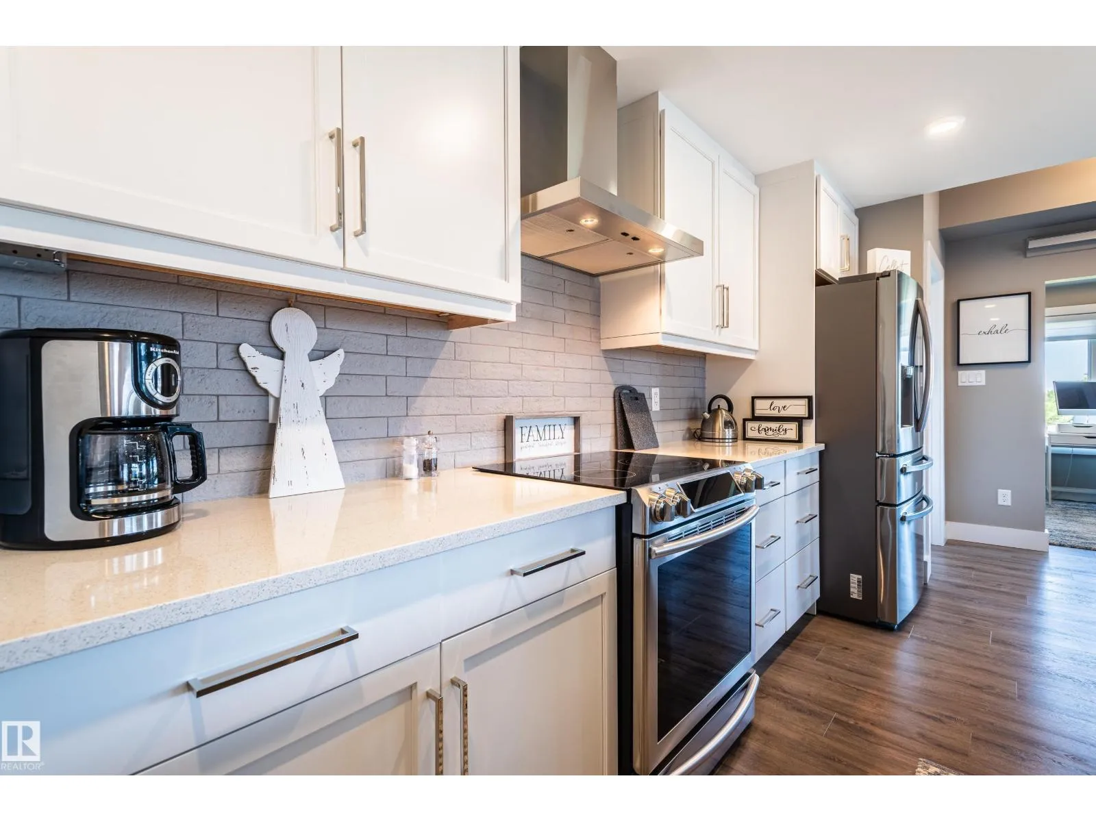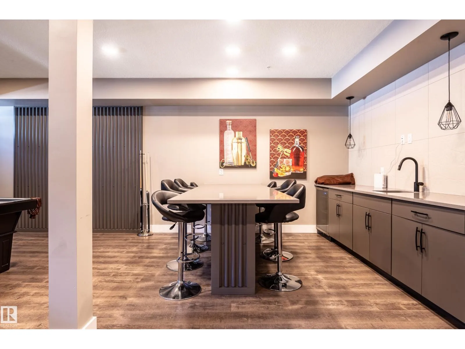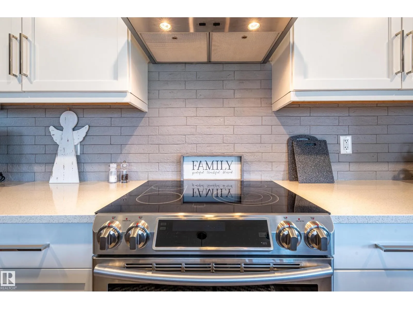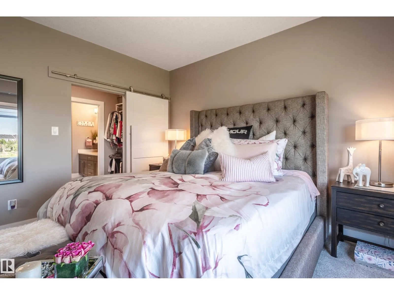 Extensively upgraded lake-facing corner unit in sought-after Veritas, offering awe-inspiring views from every angle. This immaculate one-owner home features 2 spacious bdrms, 2 baths, & a bright den. Enjoy sunny mornings & shady evenings on wrap-around deck. The two-tone kitchen is a standout with upgraded appliances, a tile backsplash, & a 6â extended island with added cabinetry on both sides. Designer lighting, magazine-worthy layout & décor, & a spa-inspired ensuite. A/C. Over $25,000 in thoughtful upgrades also include barn doors, premium flooring, custom shower tile, additional quartz countertops, blinds, hardware, & a second (surface) parking stall that adds everyday convenience, plus a heated stall with secure storage. Pride of ownership shines throughoutâclean, cozy, and stylish. Located steps from countless amenities in one of Edmontonâs most desirable communities, this home offers a seamless blend of comfort, elegance, and breathtaking views. Style meets serenity in this Griesbach gem! (id:27476)
