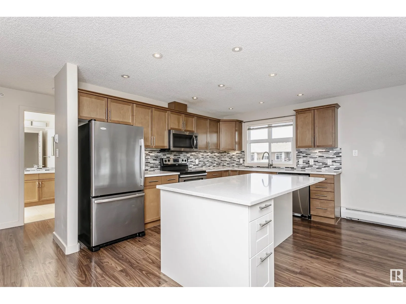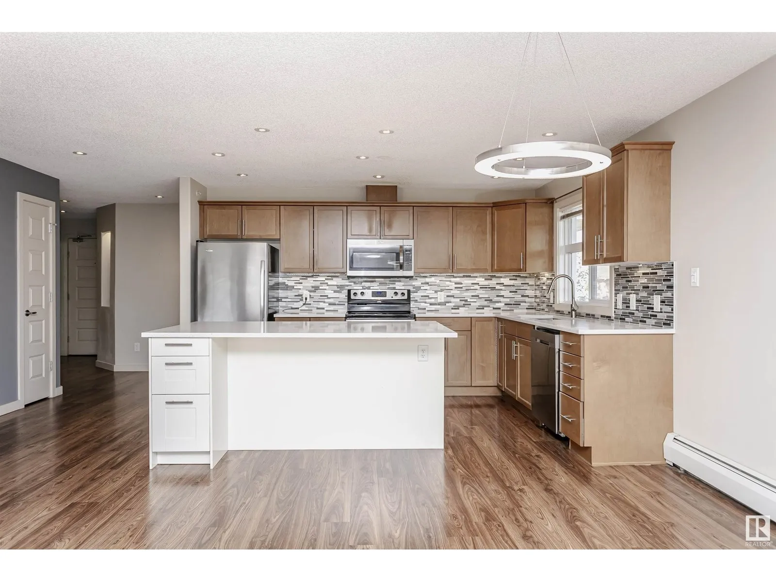 Renovated, modern 2 Bedroom/2 Bathroom Top Floor End Unit with 2 underground parking stalls in the desirable neighbourhood of Rutherford! The open concept unit with 9 ft ceilings comes with wide plank laminate flooring and a kitchen with quartz countertops, stainless steel appliances and a large eat-in island. The living room has a gas fireplace, large windows and plenty of upgraded pot lighting making it bright and inviting. The two spacious bedrooms are situated on opposite ends of the unit, with the primary coming equipped with a walk-through closet with custom built-ins and an ensuite bath. Additional features include the unitâs spacious balcony with downtown city views, a spacious in-suite pantry/storage area and an additional storage cage in the underground parking. 15 minutes to the airport and only minutes from the Anthony Henday and all amenities, this unit is a must see! (id:27476)