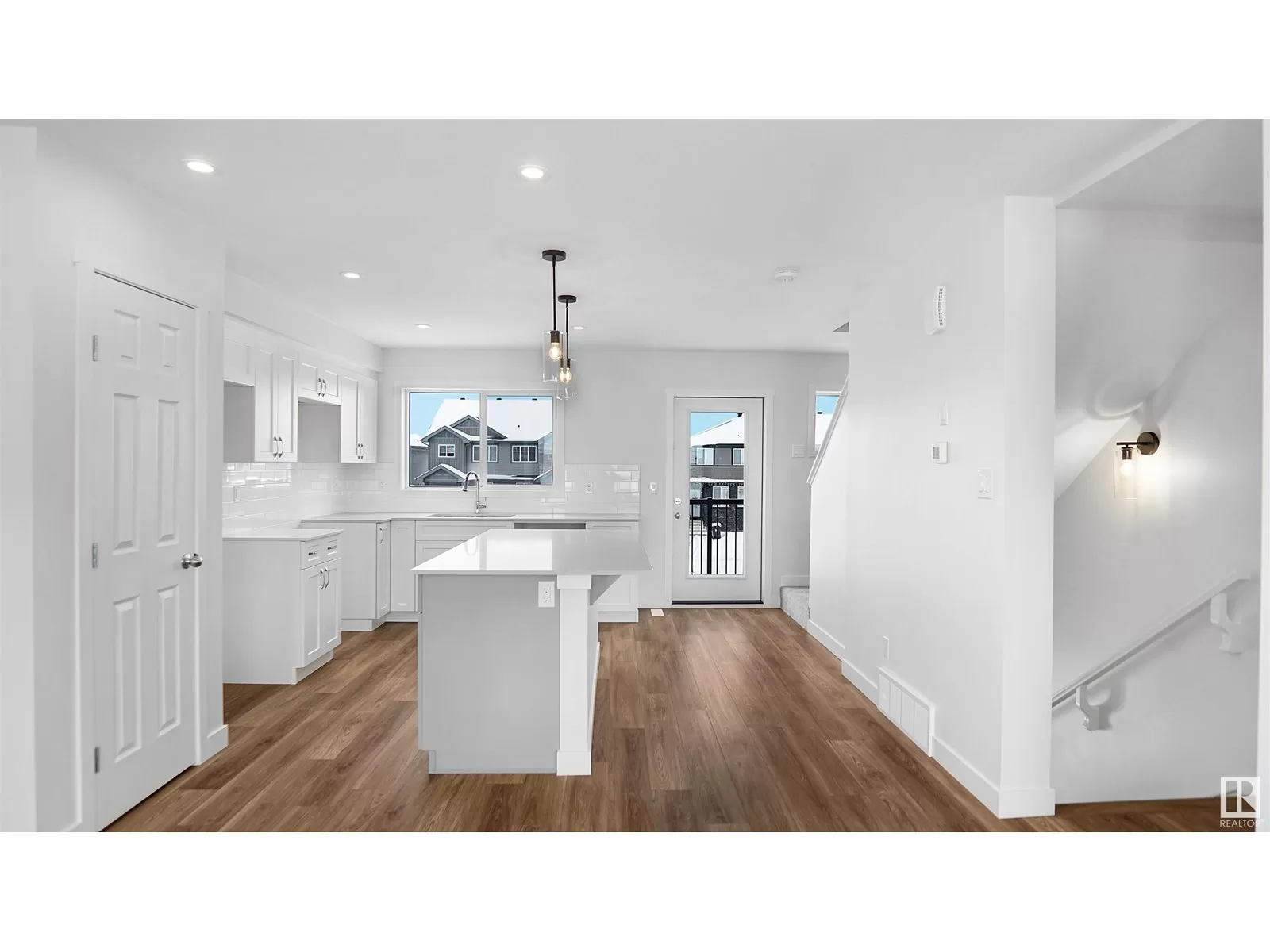 Welcome to this brand new half duplex the âReimerâ Built by the award winning builder Pacesetter homes and is located in one of Edmonton's newest south east communities of Aster. With over 1,250 square Feet, this opportunity is perfect for a young family or young couple. Your main floor as you enter has a flex room/ Bedroom that is next to the entrance from the garage with a 3 piece bath. The second level has a beautiful kitchen with upgraded cabinets, upgraded counter tops and a tile back splash with upgraded luxury Vinyl plank flooring throughout the great room. The upper level has 3 bedrooms and 2 bathrooms. This home also comes completed with front and back landscaping and a single over sized attached garage. *** Photo used is of an artist rendering , home is under construction and will be complete by end of February 2026 *** (id:27476)