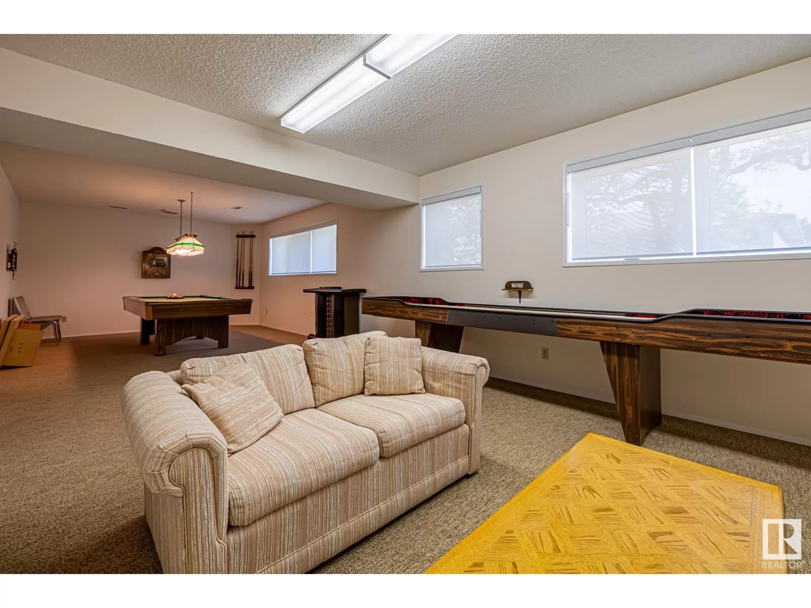 Welcome to BROOKSIDE ESTATES. This 1628 sqft DETACHED BUNGALOW located in the sought-after south community of Bearspaw. This well-maintained home features a bright kitchen w/island, a massive living room w/gas fireplace, formal dining room as well as a dinette off the kitchen leading to the screened in sunroom backing a greenspace corridor. Two spacious bedrooms featuring the primary suite w/4-piece ensuite & walk-in closet, a 1/2 bathroom & laundry room also on the main level. The 1427 sqft basement is finished w/ a rec room, storage area & 3-piece bathroom w/endless potential for the undeveloped 700+ sqft. A DOUBLE 20' x 20' garage w/ direct access to the home. The community clubhouse is ideal for socializing events or larger family gatherings w/ a pool table, kitchen & plenty of space for hosting. Executive experience of adult living in this quiet, private & warm community, close to all amenities, South Edmonton Common/Costco, Bearspaw Park & Lake, walking trails, golf, Tennis/Pickleball courts, etc. (id:27476)
