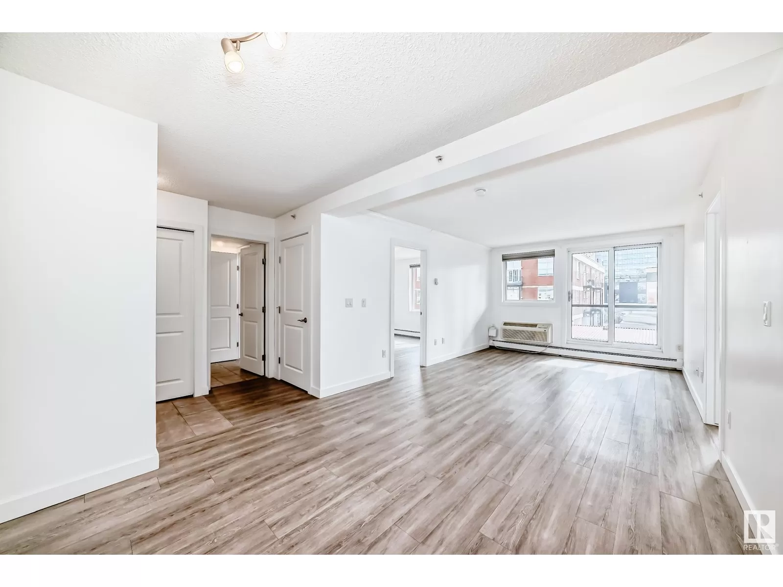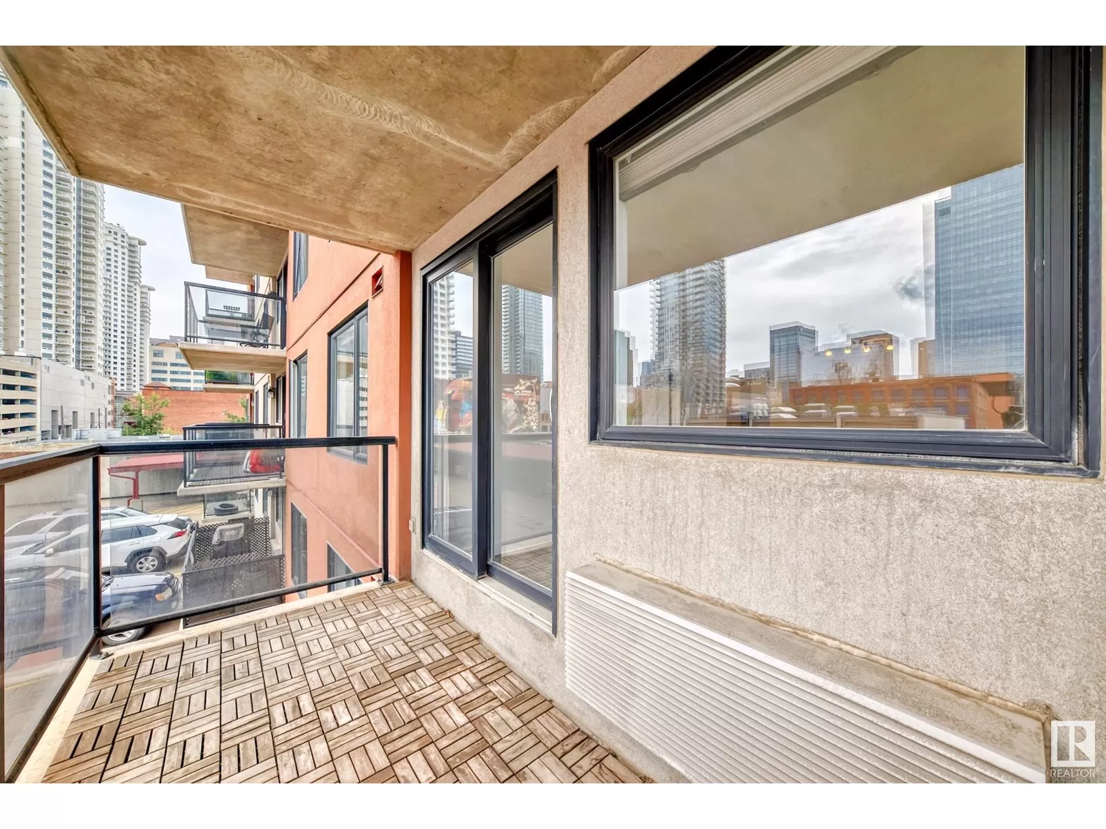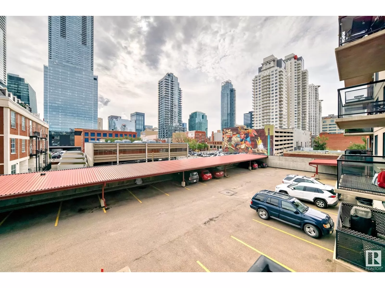 Welcome to The Legacy, ideally located just steps from Rogers Place, MacEwan University, the Ice District, and 104 Streetâs vibrant farmers market, cafes, and restaurants! This bright and spacious 2-bedroom, 1-bath condo offers modern living space with an open-concept layout and large windows that fill the home with natural light. The kitchen features stainless steel appliances, ample storage, and flows seamlessly into the expansive living/dining area - perfect for entertaining. Enjoy the added convenience of in-suite laundry, two walk-in closets, and a good sized patio with gorgeous downtown views. This well-maintained building includes a fitness center, titled parking, and secured bike room. Walk to groceries, LRT, bike trails, nightlife, and downtown offices. Whether you're a student, professional, or investor, this is urban living at its best! (id:27476)