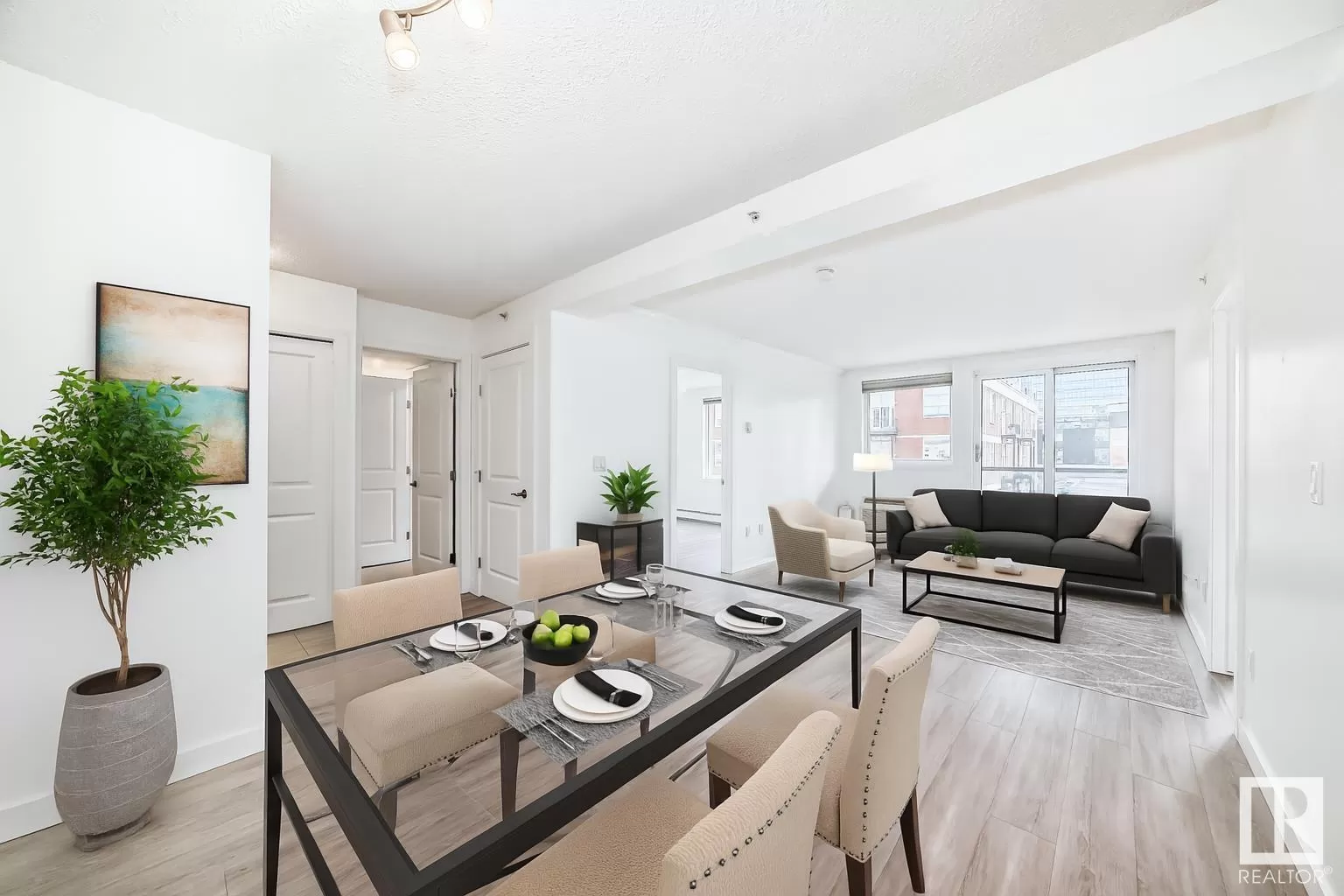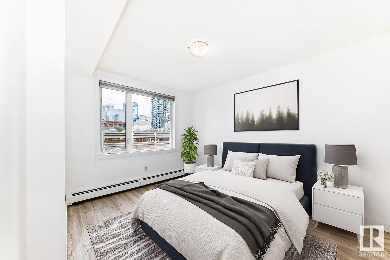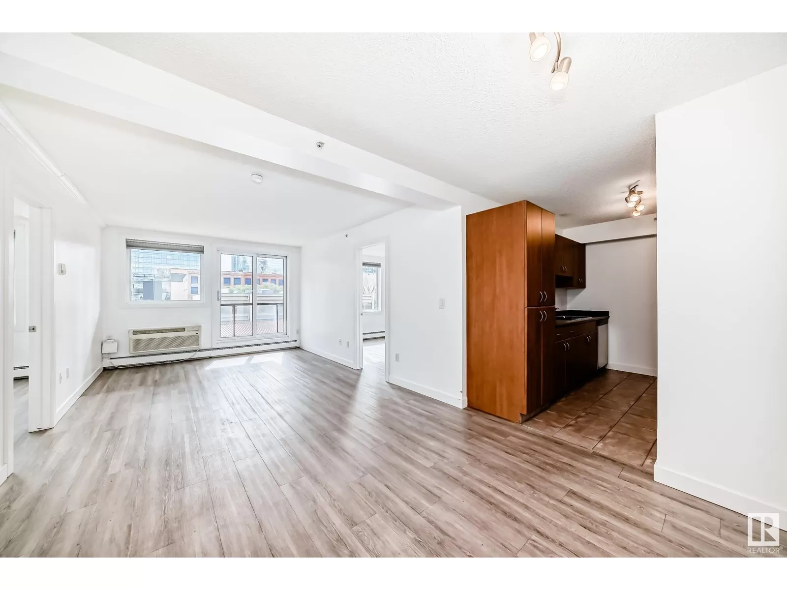 Welcome to The Legacy, ideally located just steps from Rogers Place, MacEwan University, the Ice District, and 104 Streetâs vibrant farmers market, cafes, and restaurants! This bright and spacious 2-bedroom, 1-bath condo offers modern living space with an open-concept layout and large windows that fill the home with natural light. The kitchen features stainless steel appliances, ample storage, and flows seamlessly into the expansive living/dining area - perfect for entertaining. Enjoy the added convenience of in-suite laundry, two walk-in closets, and a good sized patio with gorgeous downtown views. This well-maintained building includes a fitness center, titled parking, and secured bike room. Walk to groceries, LRT, bike trails, nightlife, and downtown offices. Whether you're a student, professional, or investor, this is urban living at its best! (id:27476)