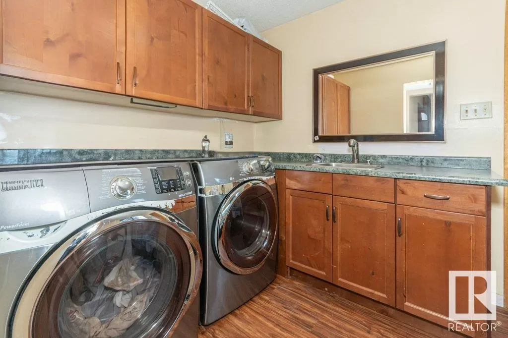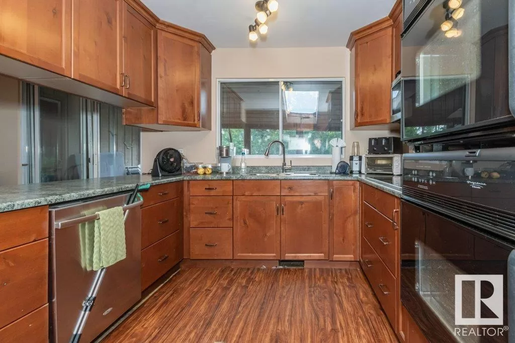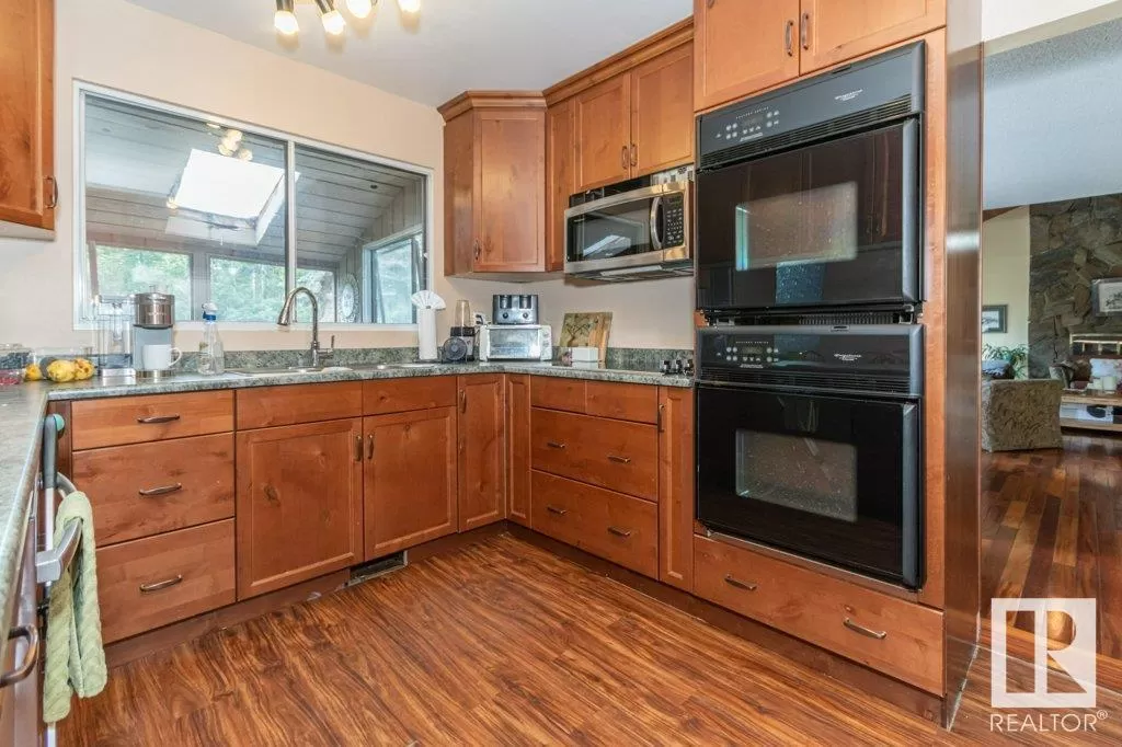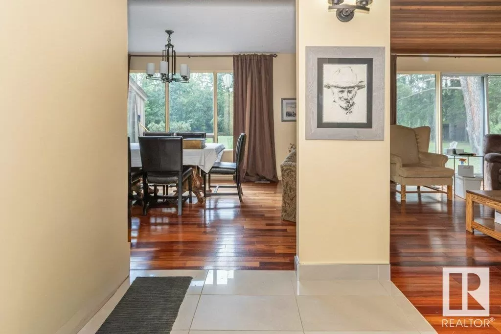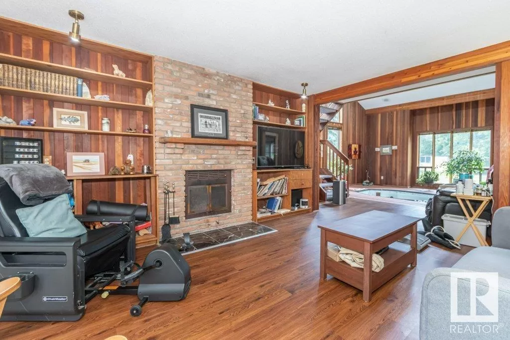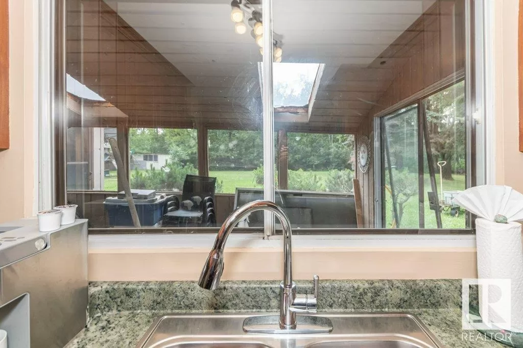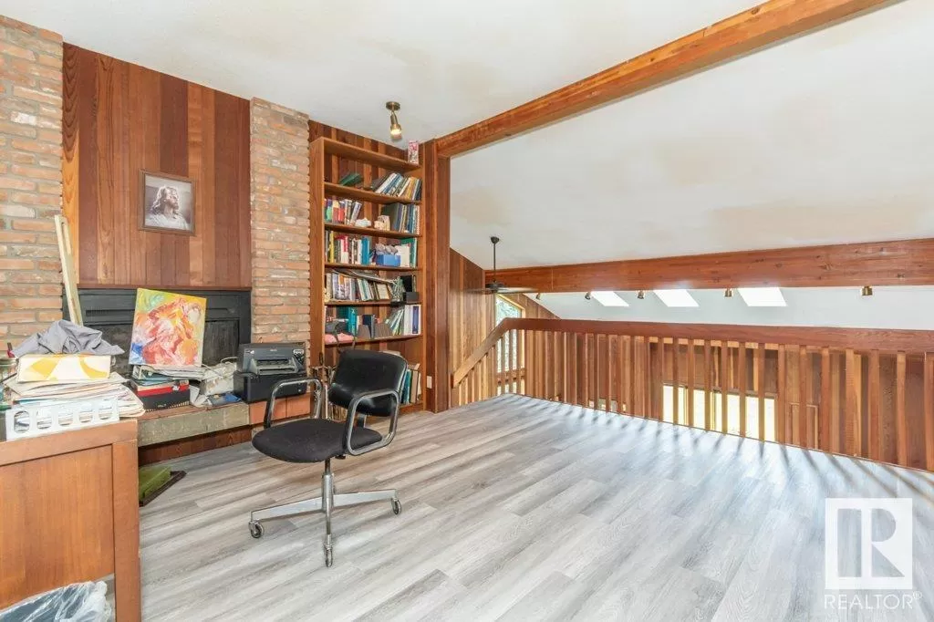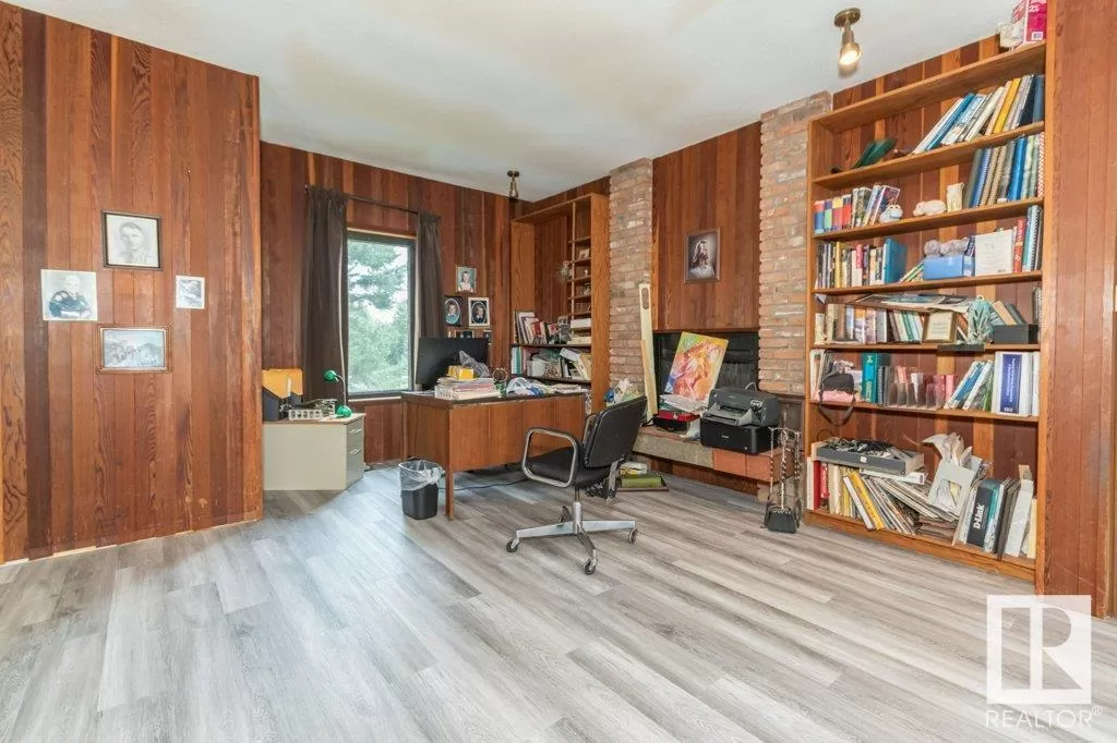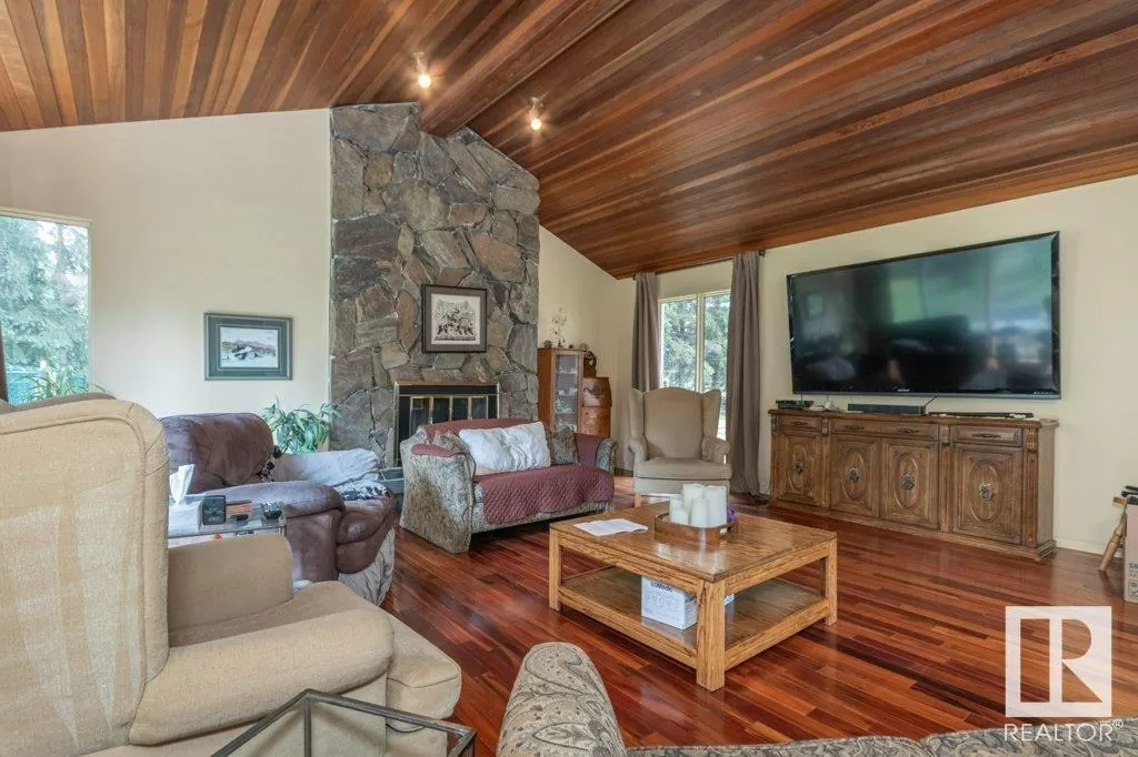 Beautiful setting on the 1.03 acre lot in the City of Edmonton. This home is over 3000 sq ft and features three wood burning fireplaces. Large living area with vaulted ceilings galley kitchen family room with view into lap pool area. Large master bedroom with library area and fireplace and two additional bedrooms on the upper level. The basement is unspoiled and ready for development. Time to renovated or hold for future estate. (id:27476)