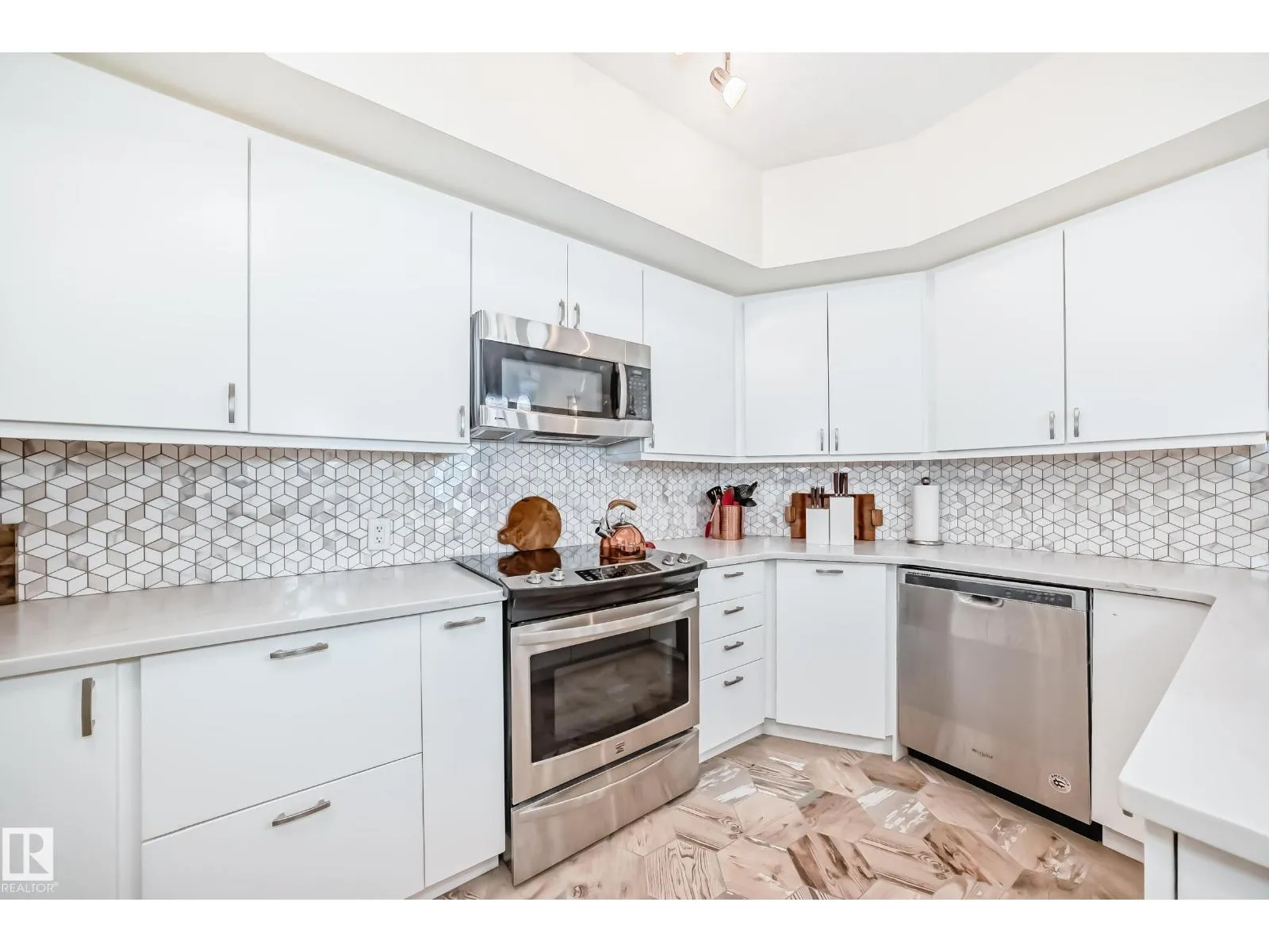 Urban living in sought after Westmount location. This beautifully renovated 2 bed, 2 bath condo offers refined comfort in a boutique building steps from 124 Street, Jasper Ave & the river valley. Inside, hardwood floors with transition tile, abundant storage & in-suite laundry set the tone. The renovated kitchen boasts granite counters, modern cabinetry, stainless steel appliances & stylish hex tile. Enjoy a bright open layout with a cozy gas fireplace, large windows, central A/C & access to a private covered patio. The spacious primary suite includes a walk-in shower and elegant ensuite. A second bedroom offers versatility for guests, a home office, or hobby space. The main bathroom has been fully updated with contemporary finishes. Additional upgrades include new windows, patio doors, deck surface, and iron railings. Complete with titled underground parking & gym, this is the ideal choice for urban living with style, comfort & a vibrant lifestyle in one of Edmontonâs most desirable neighbourhoods. (id:27476)