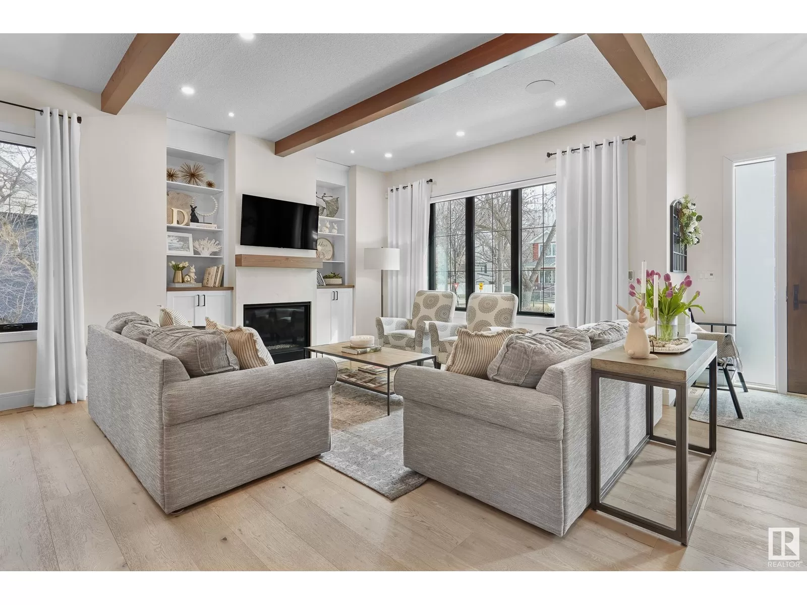 Westmount historical charm & modern elegance in this in this 2020 home-built by Veneto Homes. This beautiful home has 3978sqft of finished living space - 4 beds, 3.5 baths, beautifully finished throughout â all located on a 6723sqft landscaped lot with a TRIPLE Heated Detached Garage & Suite (1Bed/1bath/laundry - 590SQFT GARAGE SUITE)! Step inside & you will fall in love with the show home feeling â from the foyer to the formal living room with fireplace to the dining room â the bright & airy feeling flows throughout. The heart of the home â the luxury chefâs kitchen is perfect for large family dinners. The home office, mud room & powder room completes the main floor. Upstairs the primary bedroom is perfectly finished with a luxurious ensuite & dressing room. Beds #2 & #3 are both a great size, 4-piece bath & laundry complete this level. The basement includes the family room, 4th bed, 4-piece bath & fitness area. Perfectly located â close to downtown, 124th St shopping & restaurants! (id:27476)