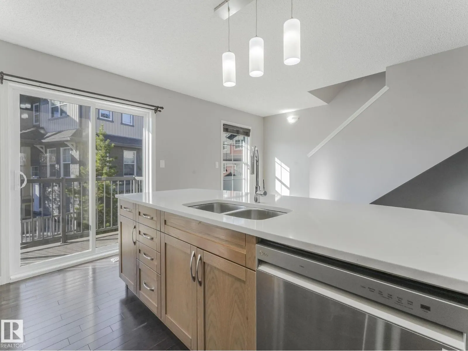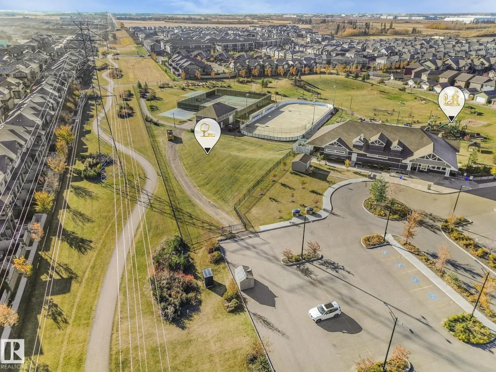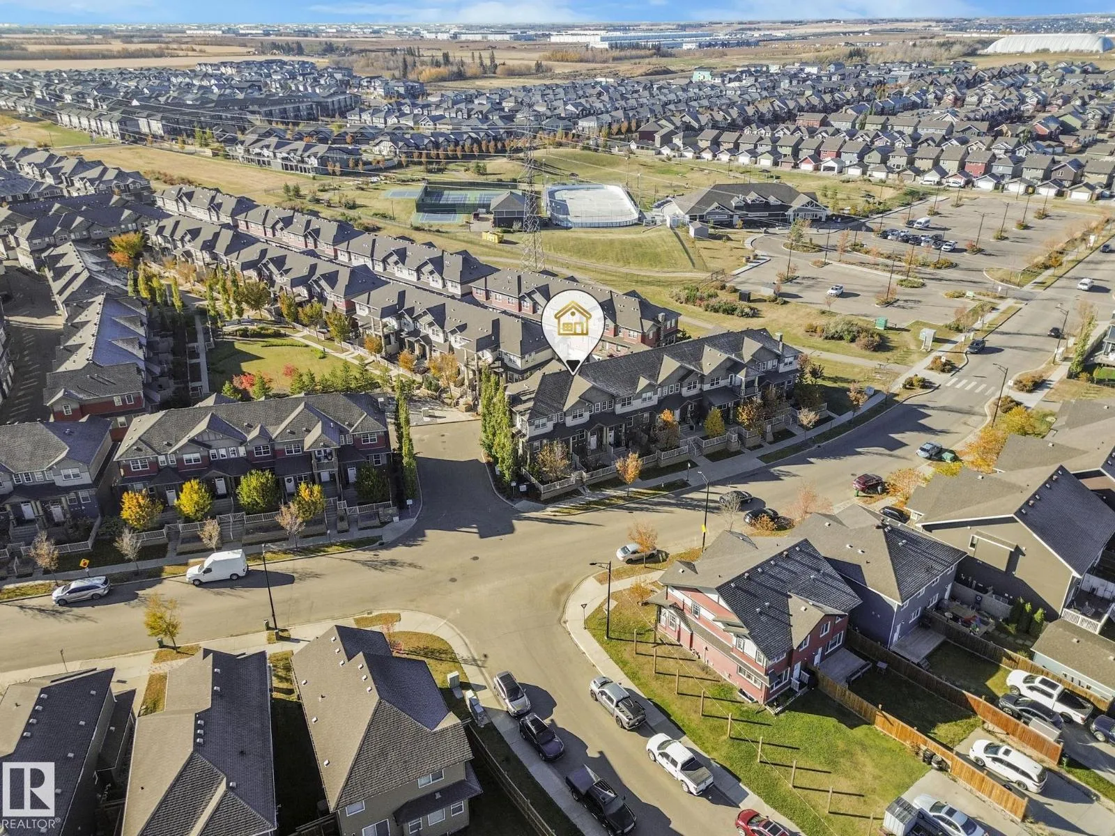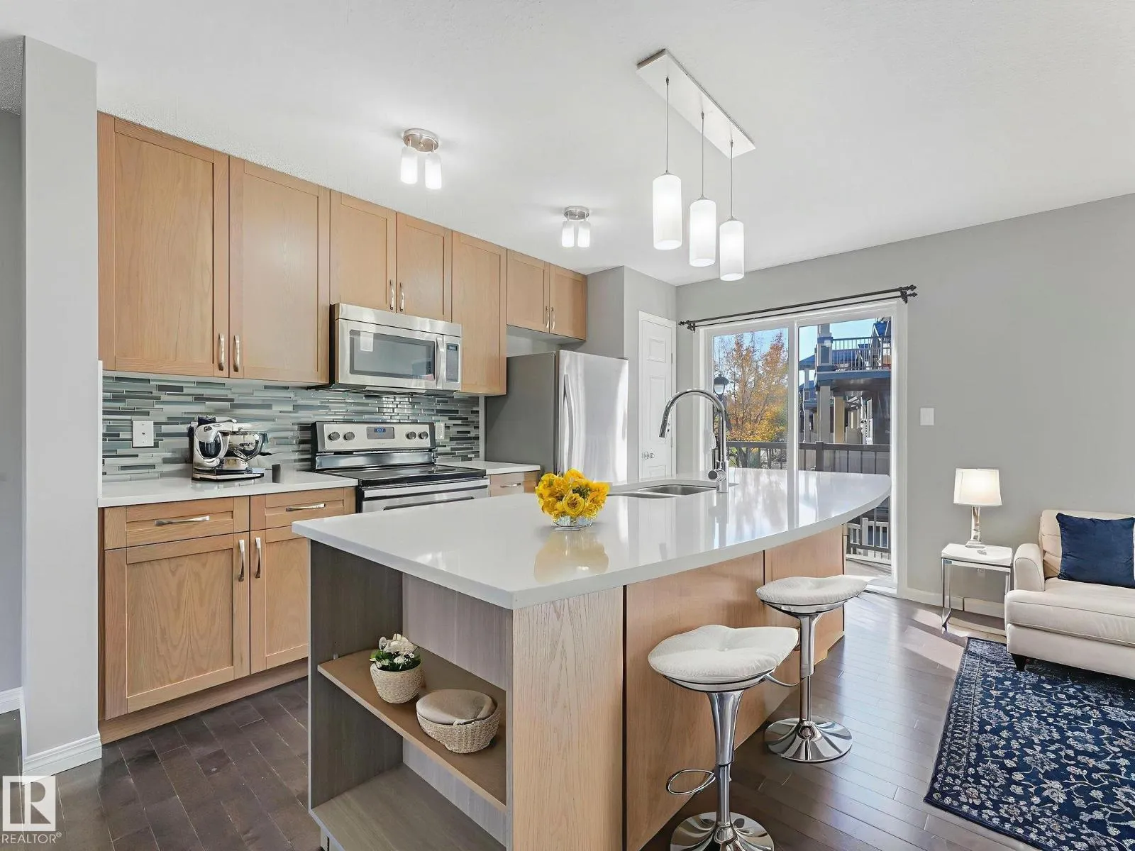 This wonderful townhome blends comfort, style, and community in one of Edmontonâs most vibrant & sought after neighbourhoods. This 3-bedroom, 2.5-bath townhome features an open-concept main floor with quartz countertops, stainless steel appliances, and a spacious kitchen island perfect for gathering. Enjoy the convenience of a double attached garage, upper-floor laundry, and a private fenced yard with a gas BBQ hookup. The Orchards at Ellerslie offers unmatched amenities: a residentsâ centre with a splash park, skating rink, tennis courts, playgrounds, and year-round events. Scenic trails, nearby schools, and beautifully landscaped parks complete the picture. Whether you're hosting in the bright living space or unwinding in the serene bedrooms, this home offers more than just comfort, itâs a lifestyle built around connection, recreation, and belonging.Come and feel right at home. (id:27476)