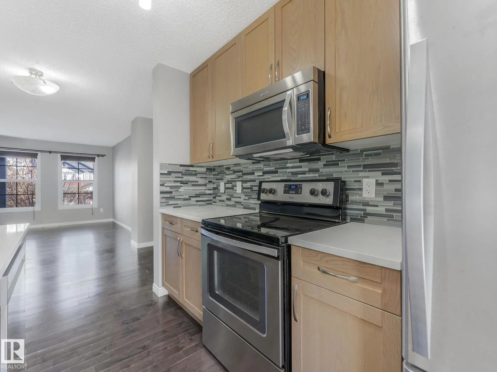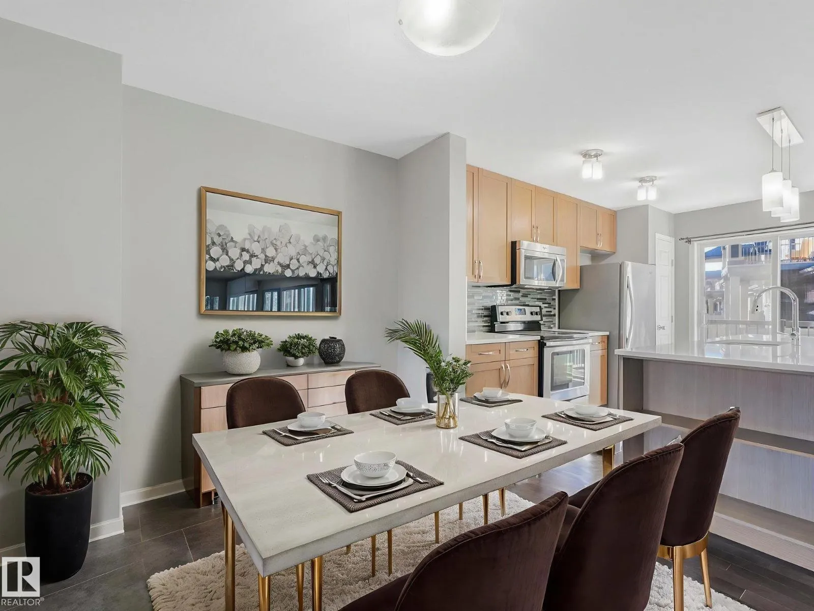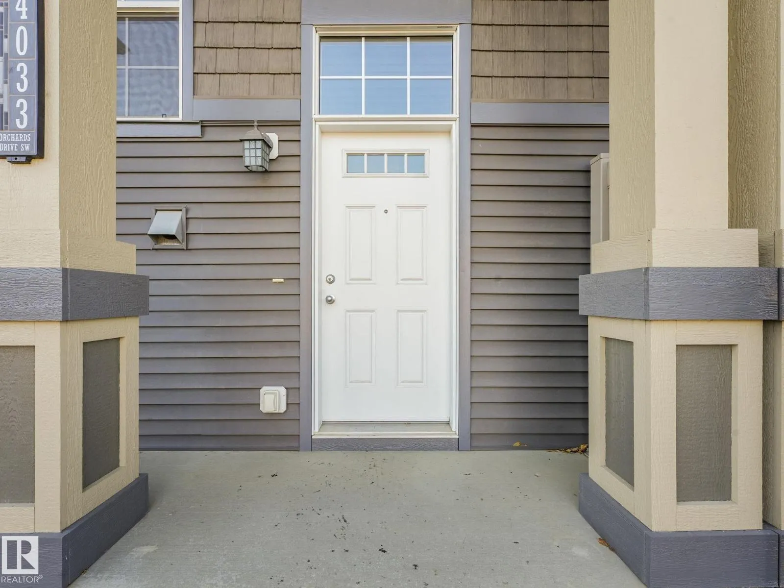 This wonderful townhome blends comfort, style, and community in one of Edmontonâs most vibrant & sought after neighbourhoods. This 3-bedroom, 2.5-bath townhome features an open-concept main floor with quartz countertops, stainless steel appliances, and a spacious kitchen island perfect for gathering. Enjoy the convenience of a double attached garage, upper-floor laundry, and a private fenced yard with a gas BBQ hookup. The Orchards at Ellerslie offers unmatched amenities: a residentsâ centre with a splash park, skating rink, tennis courts, playgrounds, and year-round events. Scenic trails, nearby schools, and beautifully landscaped parks complete the picture. Whether you're hosting in the bright living space or unwinding in the serene bedrooms, this home offers more than just comfort, itâs a lifestyle built around connection, recreation, and belonging.Come and feel right at home. (id:27476)