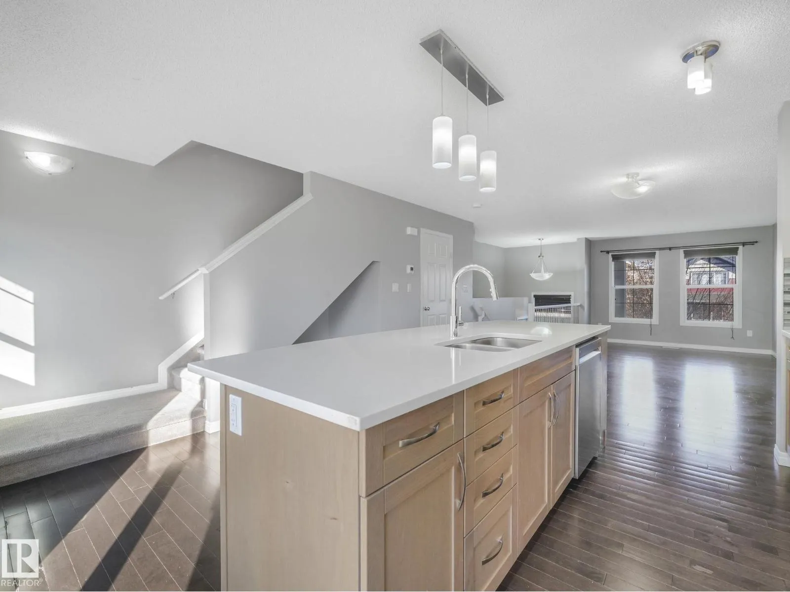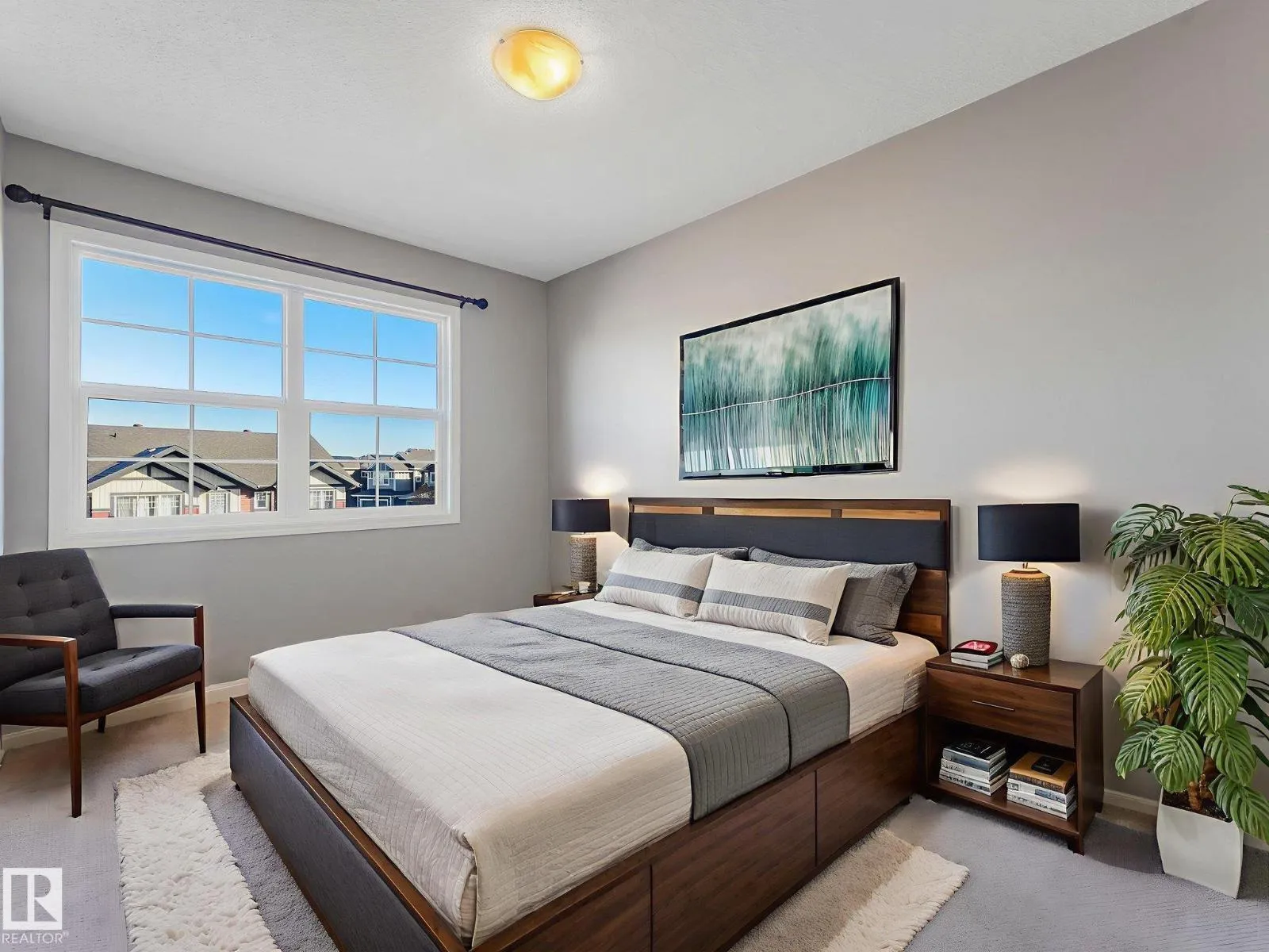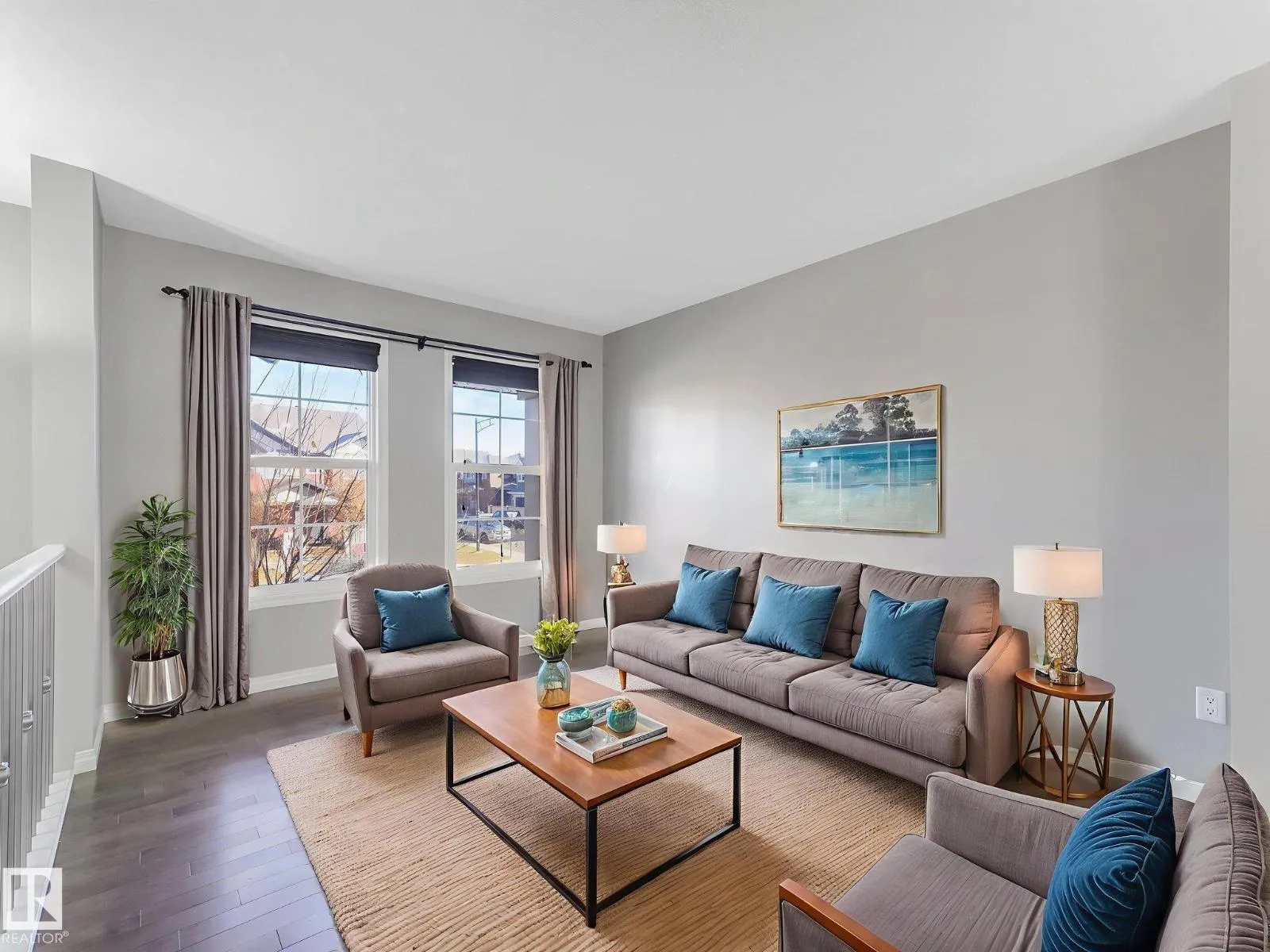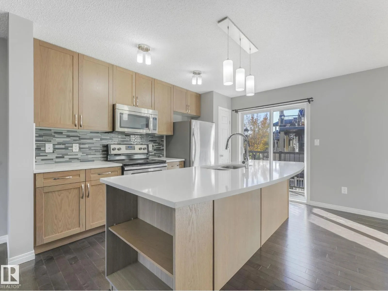 This wonderful townhome blends comfort, style, and community in one of Edmontonâs most vibrant & sought after neighbourhoods. This 3-bedroom, 2.5-bath townhome features an open-concept main floor with quartz countertops, stainless steel appliances, and a spacious kitchen island perfect for gathering. Enjoy the convenience of a double attached garage, upper-floor laundry, and a private fenced yard with a gas BBQ hookup. The Orchards at Ellerslie offers unmatched amenities: a residentsâ centre with a splash park, skating rink, tennis courts, playgrounds, and year-round events. Scenic trails, nearby schools, and beautifully landscaped parks complete the picture. Whether you're hosting in the bright living space or unwinding in the serene bedrooms, this home offers more than just comfort, itâs a lifestyle built around connection, recreation, and belonging.Come and feel right at home. (id:27476)
