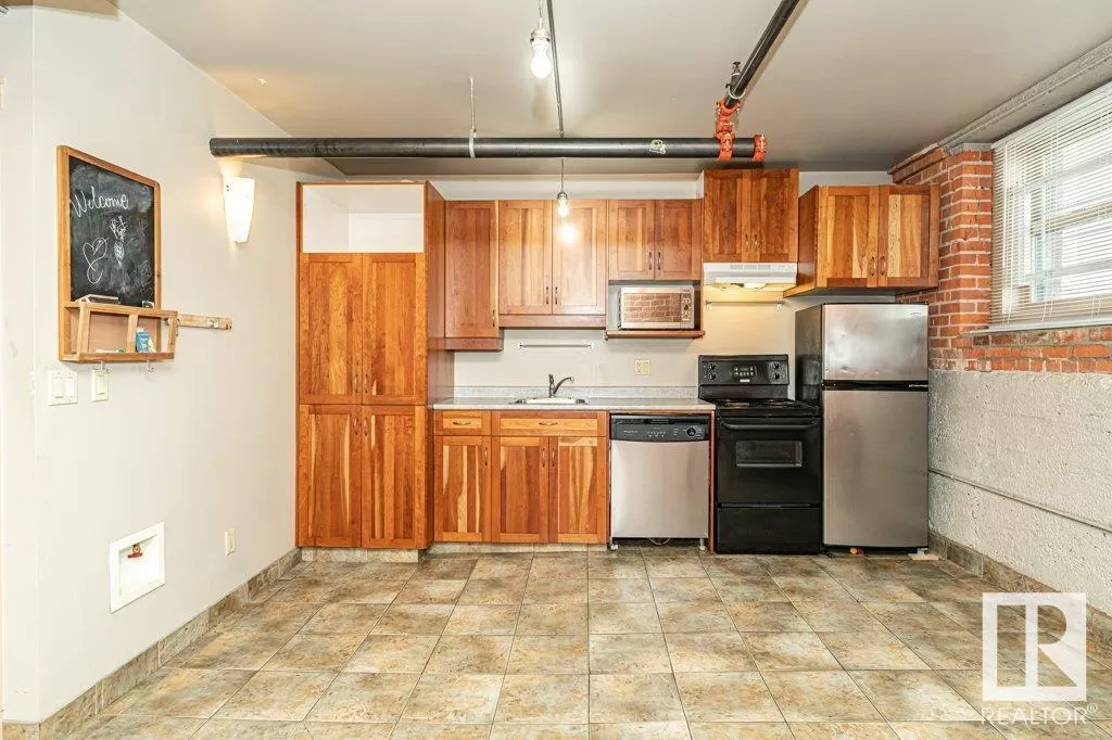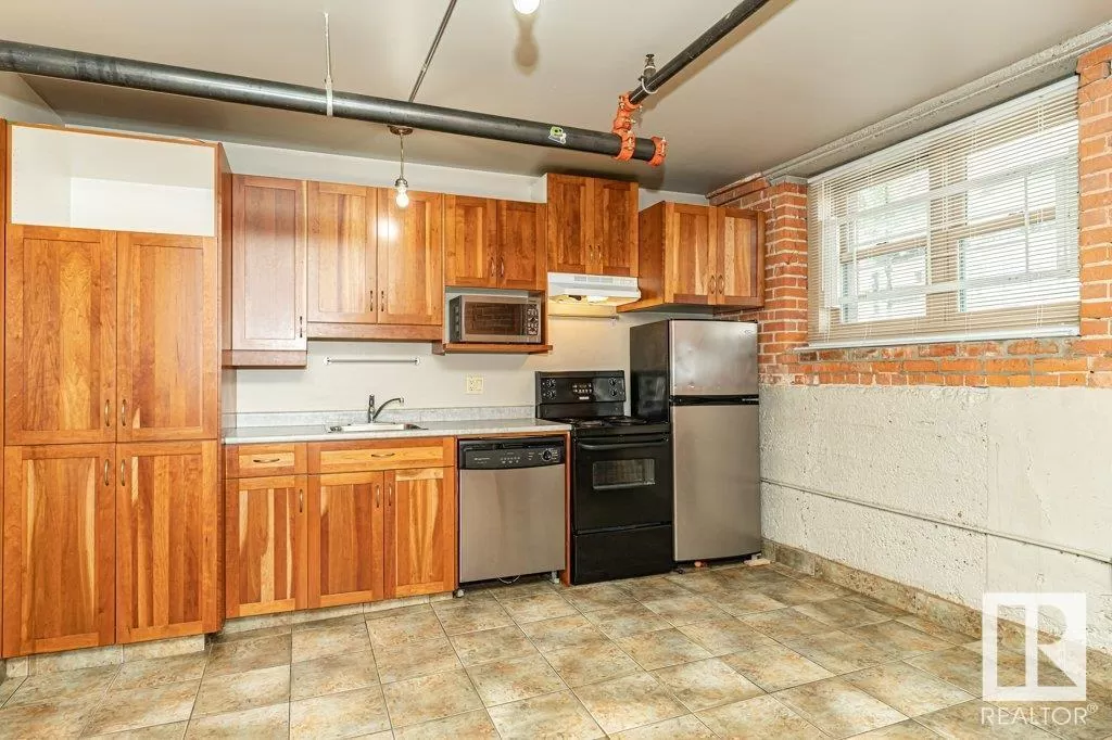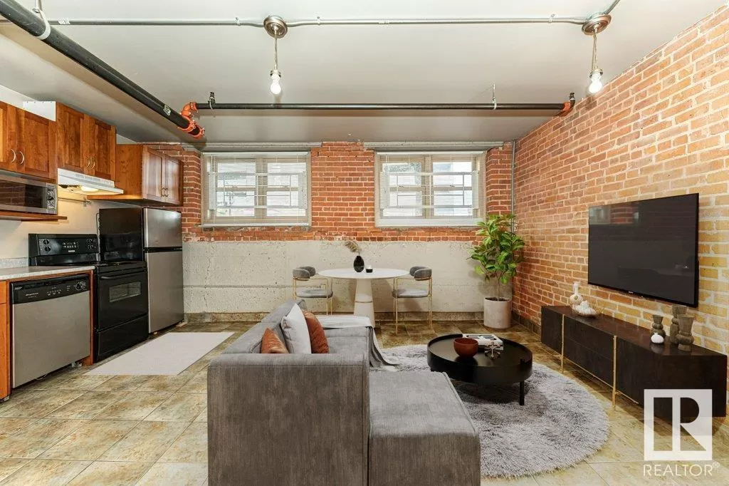 LOCATION! LOCATION! LOCATION! Right in the heart of downtown only 2 blocks from MacEwan University, Rogers Place and the ICE Entertainment district and a few blocks away from the LRT with easy access to U of A and NAIT. This unit has so much to offer! Step outside your building on a Saturday morning and youâll be right in the action of the outdoor farmerâs market with unique vendors, entertainment and food trucks. This unit, located in the refurbished and well managed Cobogo Lofts, has a cozy welcoming feel with extensive use of brick to create interesting feature walls. Low condo fees of $173.36 per month. Utilities (power, water, heat/gas, sewer and garbage) are paid directly to the condo corp. at $131.75 per month. This is a great low cost unit in a well managed building. Perfect for students, young professionals & investors. Please note that photos are virtually staged. (id:27476)