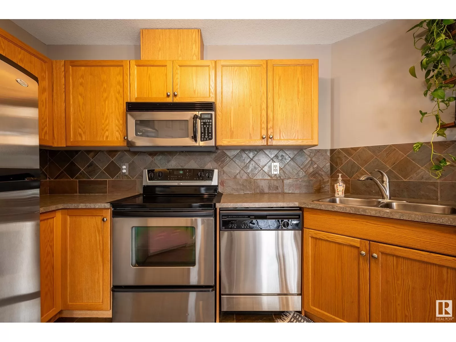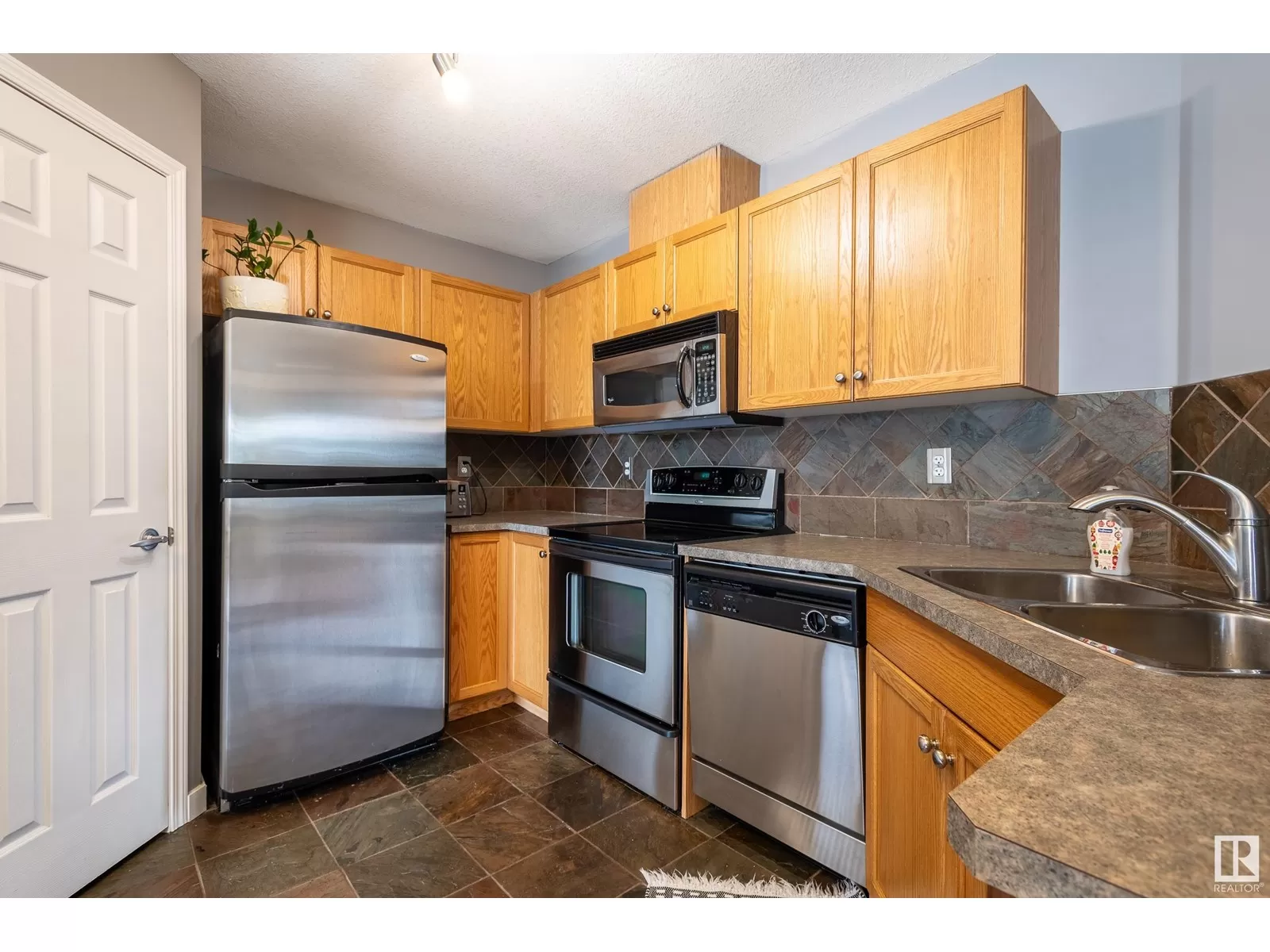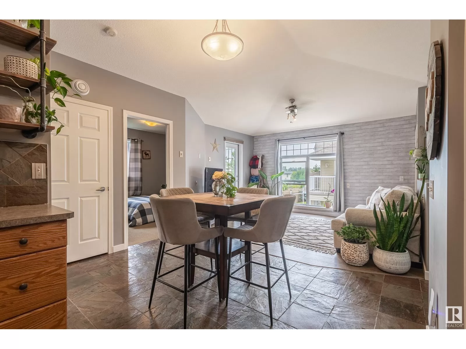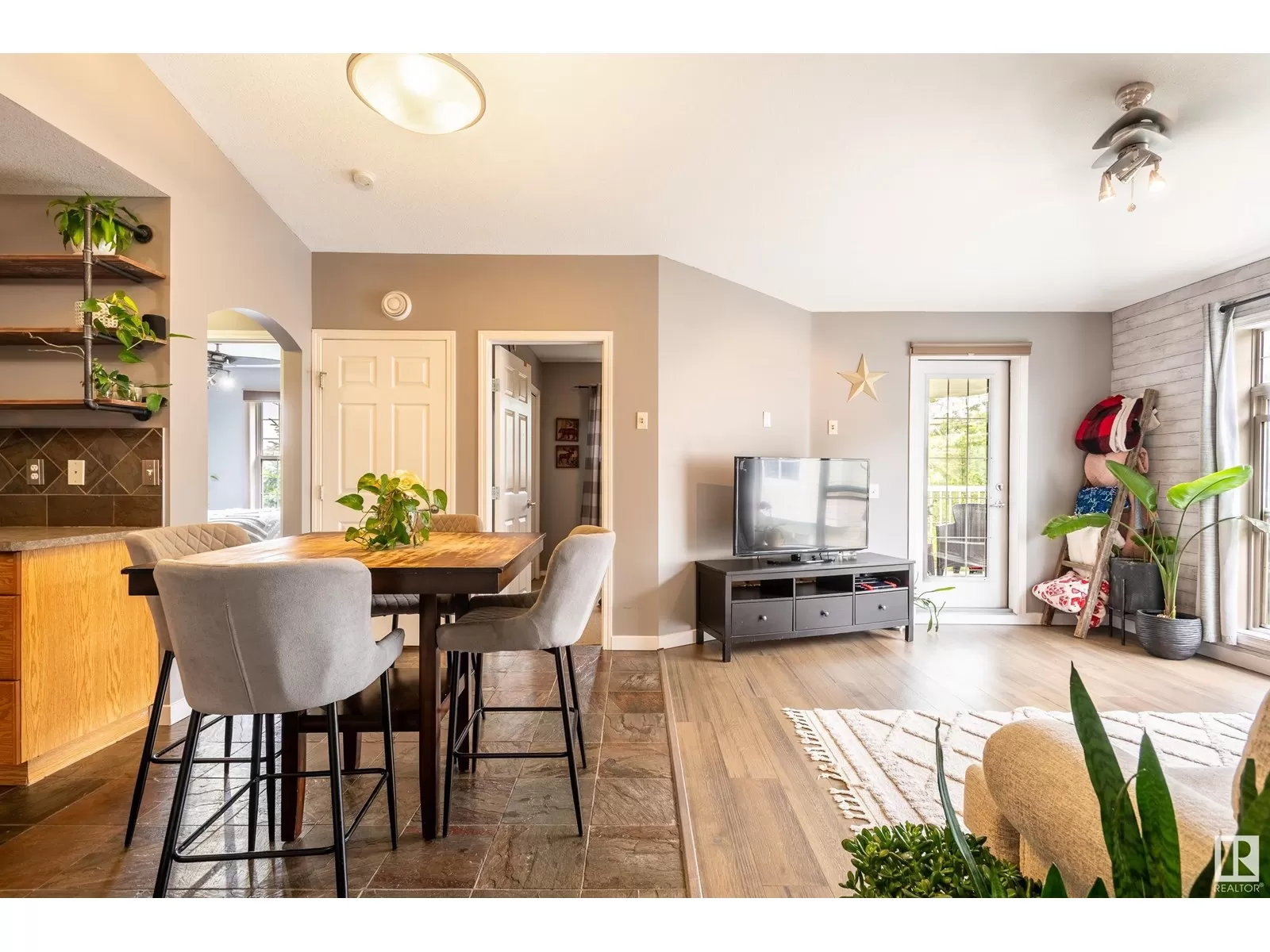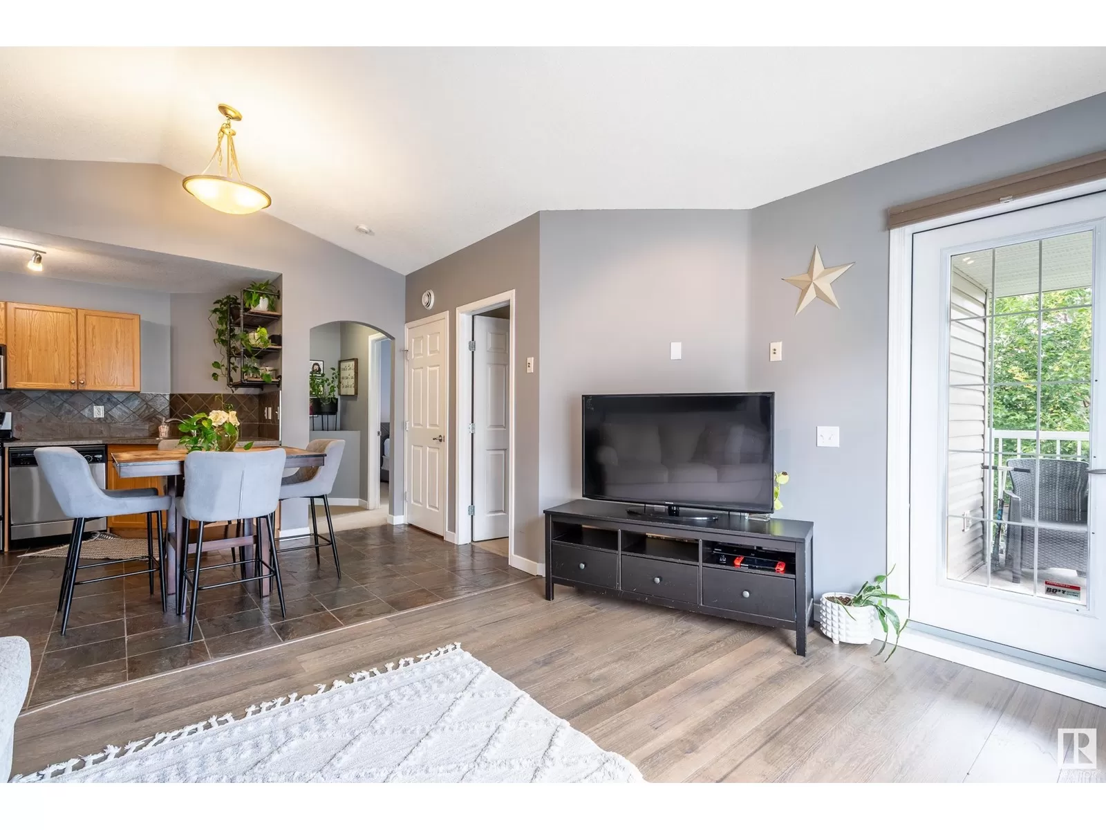 Welcome to this beautiful 2 bedroom upper level condo located in the heart of Ellerslie. This open concept floor plan with vaulted ceilings, hardwood floors, and stainless steel appliances has pride of ownership. Step through the garden doors onto your own maintenance free patio perfect for relaxing or entertaining. This unit includes in suite laundry, walk in closet in the primary bedroom and a 4 pc bathroom offering comfort and practicality. Low Condo fees cover, heat, water, and sewer making this an affordable and hassle free choice. LOCATION is everything and this home is ideally situated just minutes from south Edmonton Common, easy access to schools, shopping, and public transit. Whether you are downsizing, investing or buying your first home this charming condo is the perfect blend of comfort, style, and location...don't hesitate this home will impress you from the moment you step inside. (id:27476)