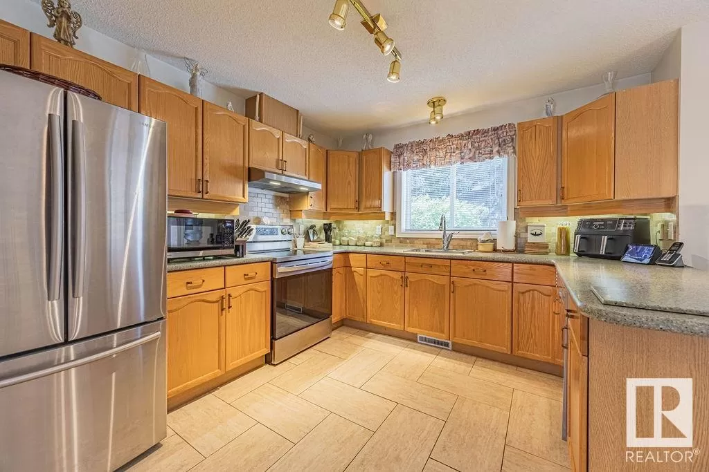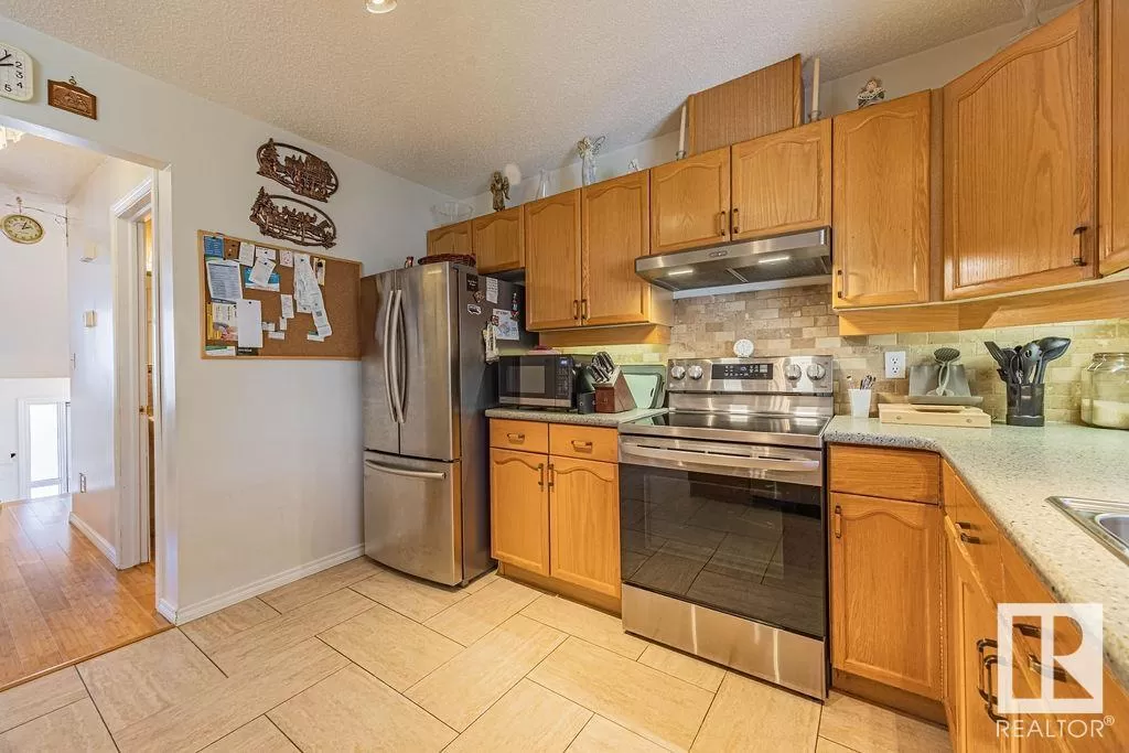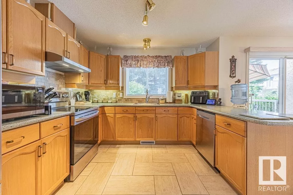 Say hello to your new home! Located in well managed complex this home is just steps from scenic walking trails, tranquil pond, shopping, WEM & all amenities, with easy access to the Henday, Whitemud & Yellowhead. The Dream! With 3 bedrooms, 2.5 bathrooms, AC, SG ATTACHED garage & nearly 1,700 sqft of total living space (1,311 + 346), there's room for the whole family!?Step inside to find water friendly bamboo flooring throughout; no carpet in sight! The open-concept main floor is filled w/ natural light, thanks to a thoughtfully designed cut-out between the dining & kitchen areas. The spacious updated kitchen features oak cabinets, generous amount of prep space w/ durable countertops & stainless steel appliances, including a newer stove (2020) & opens to your private composite deck w/ NG BBQ line, perfect for summer evenings. Upstairs, youâll find 3 generous bedrooms, including a spacious primary retreat w/ 4-piece ensuite. The fully finished basement adds a large rec roomâideal for a home gym, playroom! (id:27476)