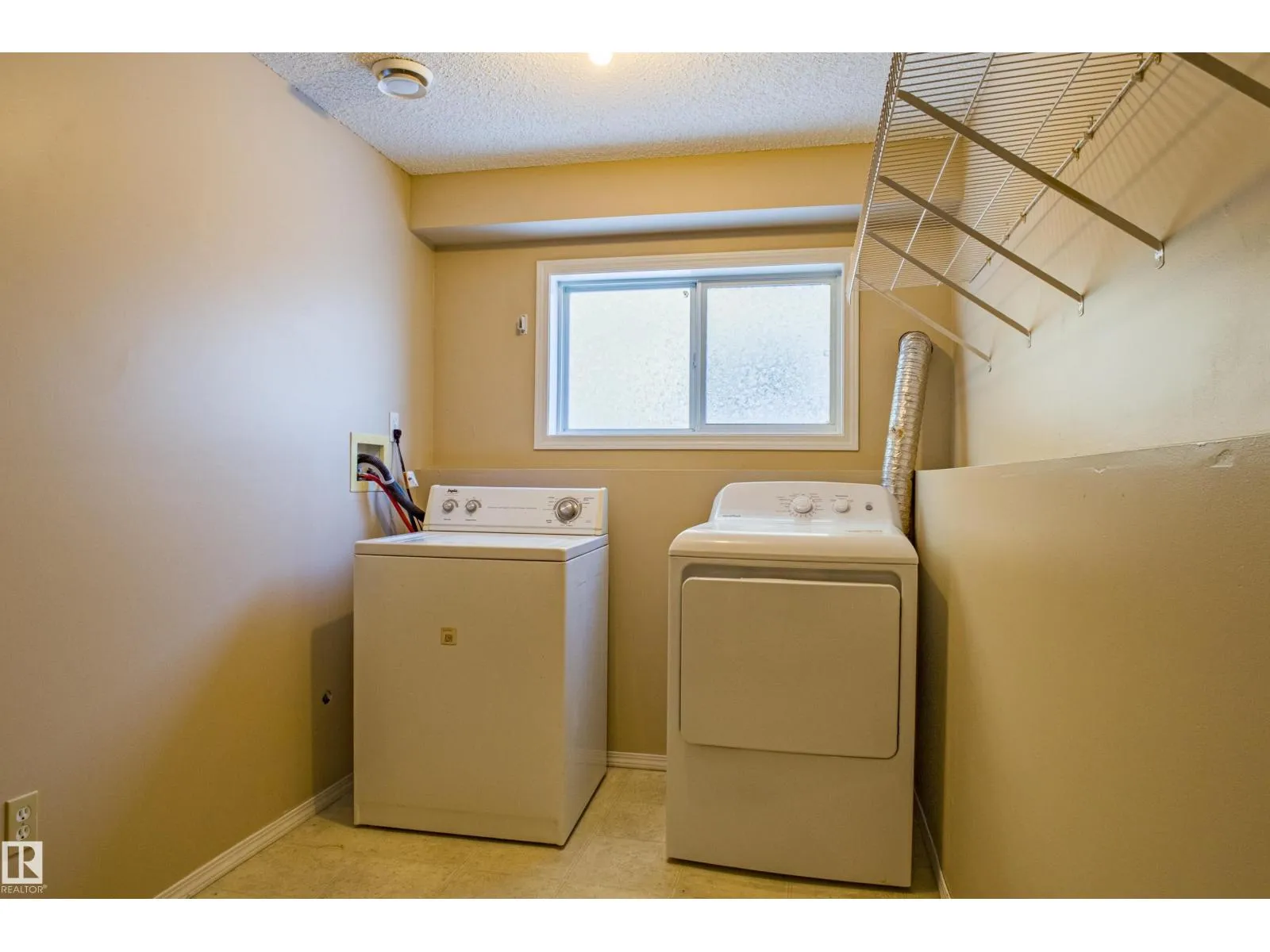 This well-maintained 3-bedroom with attached garage, two-storey townhouse offers low condo fees, spacious living, and is located within walking distance to Klarvatten Lake. Step into a bright and inviting living room filled with natural light. The large kitchen features a stylish movable island and opens to a private deck that backs onto green space â perfect for relaxing or entertaining. A convenient 2-piece bathroom completes the main floor. Upstairs, youâll find three generously sized bedrooms, including a primary bedroom with a large closet, and a full 4-piece bathroom. The lower level offers a finished and large laundry room and an oversized single garage with bonus storage room. Some photos in this listing have been virtually staged to help showcase the potential of the space. The unit has recently been painted, offering a clean and refreshed appearance. Located close to parks, schools, public transit, shopping, and offering a quick commute to the military base, downtown, and the Henday. (id:27476)
