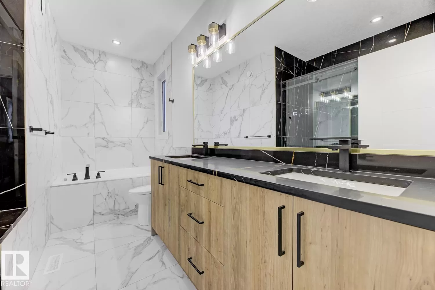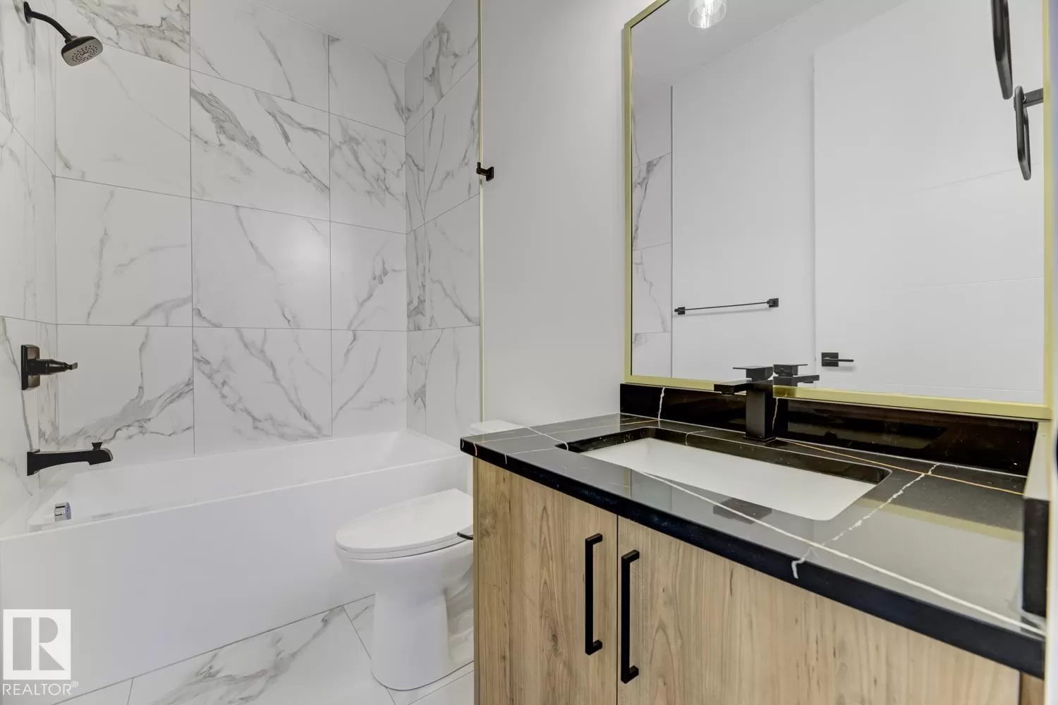 Under construction in the vibrant community of Delton, this brand-new duplex by R&M Homes is scheduled for possession in late Fall 2025 and is currently at the rough-in stage. Both sides of the duplex are available for purchase, each offering approximately 1,507 sq ft across the upper two levels. Designed with functionality and income potential in mind, this home includes a 2-bedroom legal basement suiteâideal for rental income or multi-generational living. The property will feature high-quality finishings throughout, including luxury vinyl plank flooring, ceramic tile, upgraded lighting fixtures, stainless steel appliances, quartz countertops, and 9-foot ceilings on all levels. Additional highlights include a spacious rear deck and a double detached garage. Please note that the photos provided are of a recently completed home with a similar floor plan. This is a fantastic opportunity to own a thoughtfully designed, income-generating home in a growing neighborhood. (id:27476)