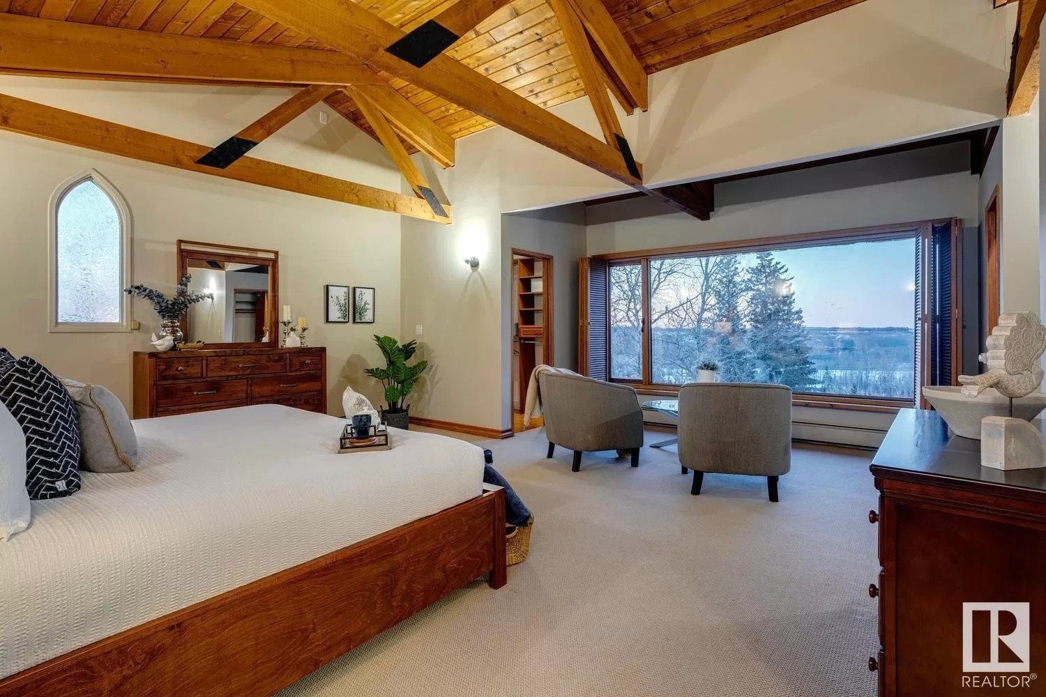Unmatched development opportunity in one of Edmontonâs most prestigious river valley corridors. Set on 5 gated acres with panoramic views of the North Saskatchewan River Valley and Windermere Golf Club, this elevated parcel offers rare privacy and natural beauty. The 3900+ sq ft rustic mountain-style home features vaulted ceilings, timber accents, a walk-out basement, and renovated primary ensuite. Ideal for renovation, expansion, or full redevelopmentâcreate a signature estate, luxury compound, or generational retreat. A July 2025 geotechnical report confirms slope stability and supports new construction at the current building site, offering builders confidence to proceed. Mature trees, open lawns, and forested trails surround youâyet youâre minutes to Windermereâs elite schools, shops, and golf. Includes triple garage, barn/studio, and endless outdoor potential. A truly rare offering for visionaries seeking privacy, prestige, and architectural possibility. (id:27476)