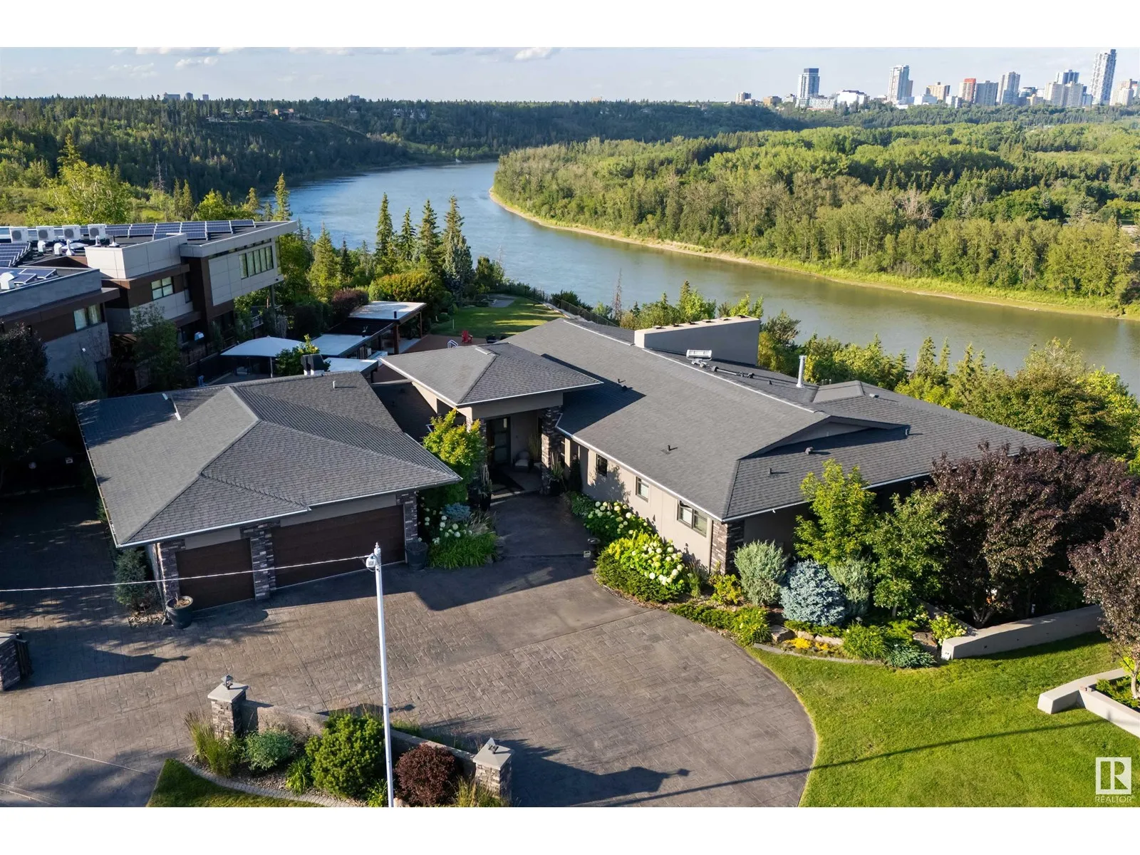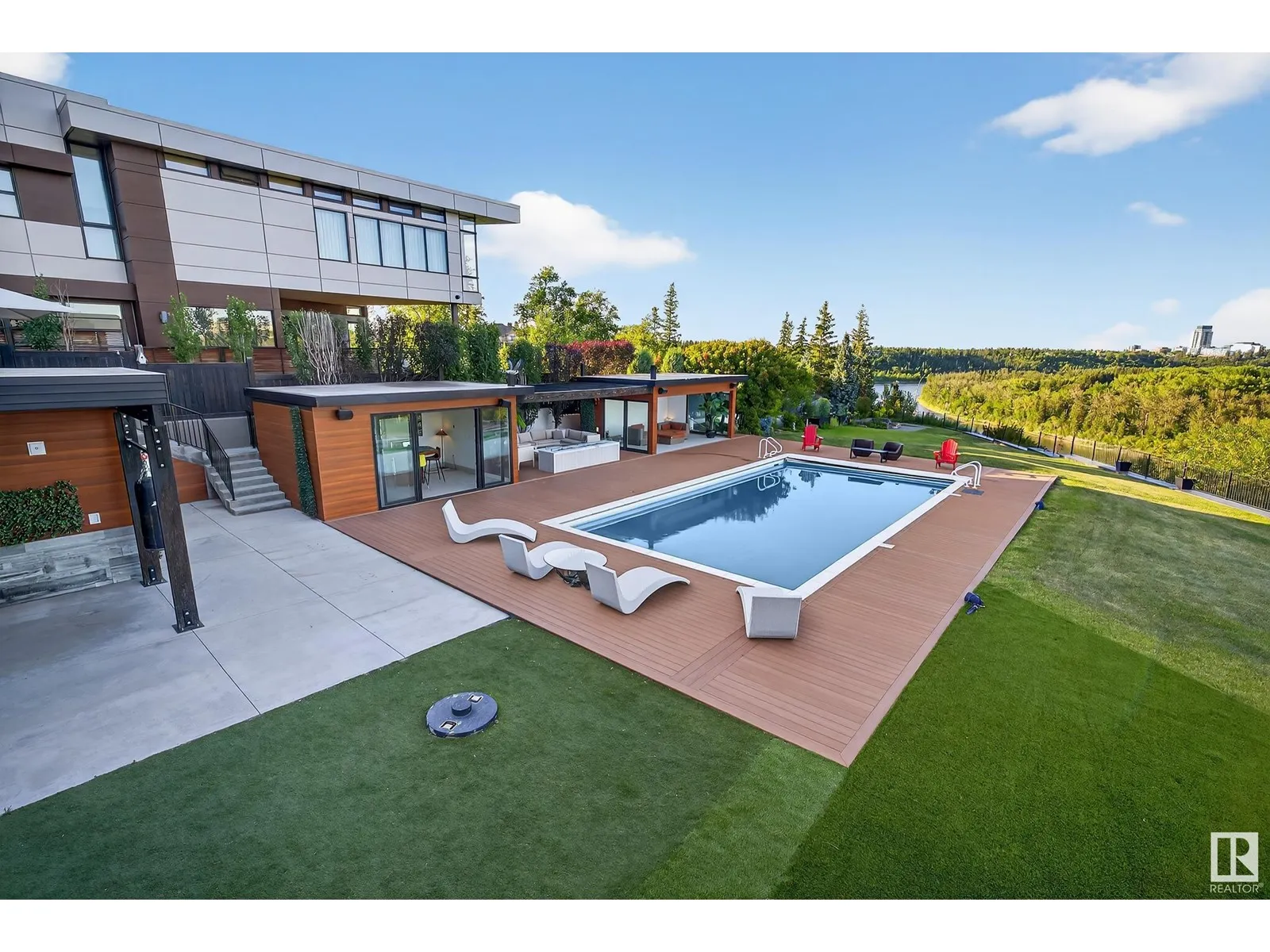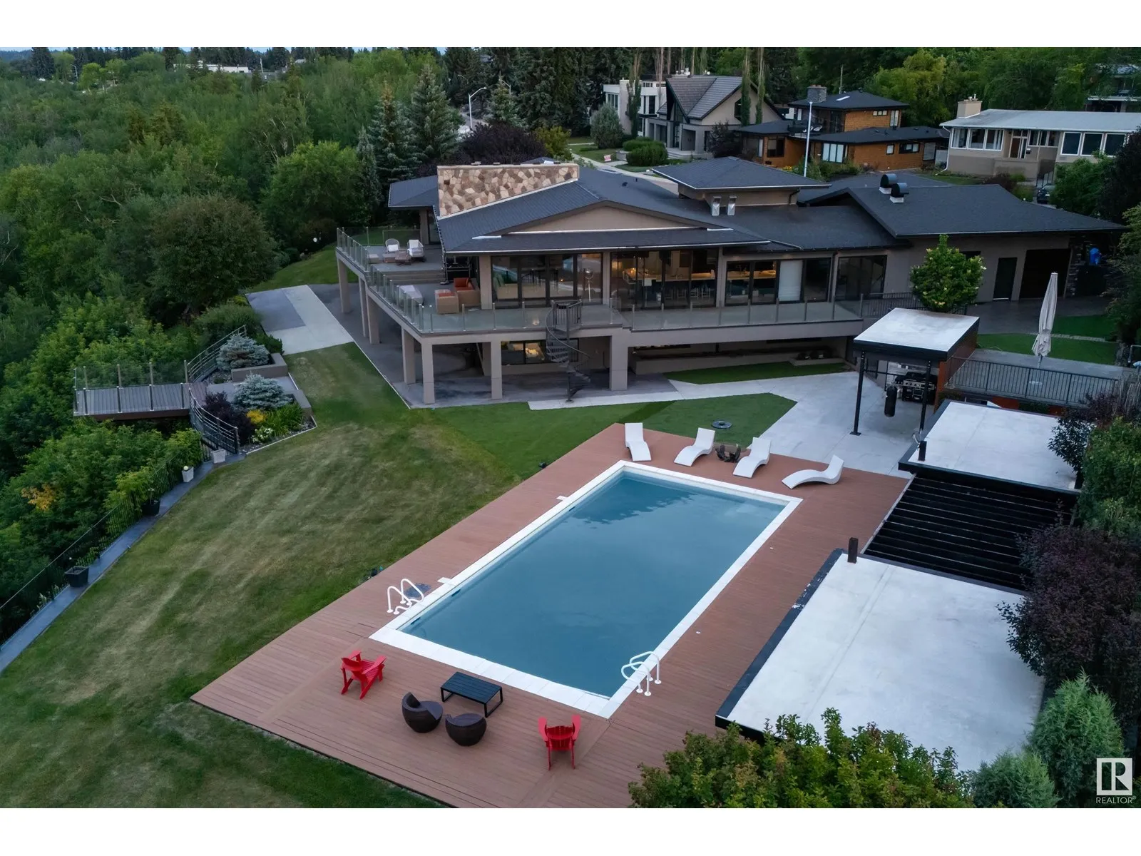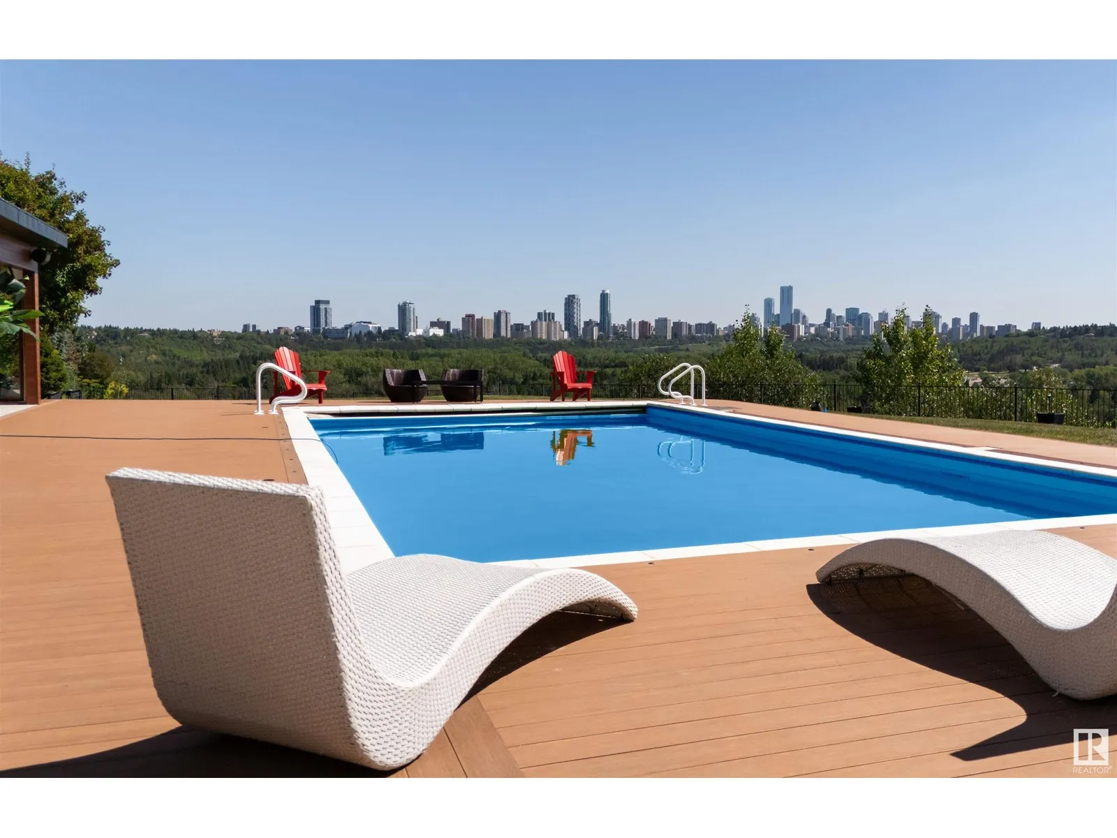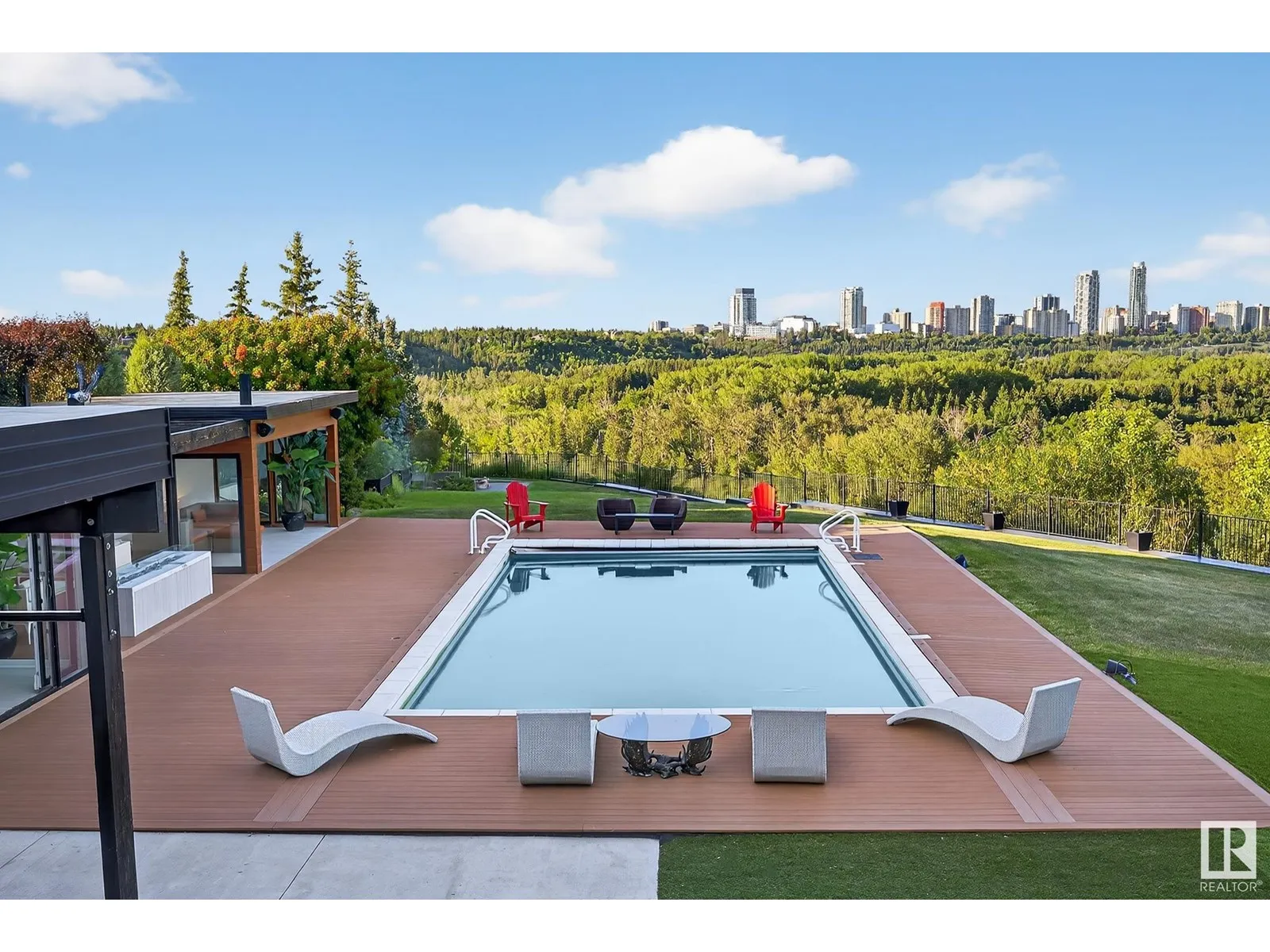 An iconic address with world-class views. Welcome to 13758 Valleyview Drive. Set on an extraordinary 49,000+ sq ft lot with unobstructed panoramic views of downtown Edmonton and the river valley, this custom-built estate offers over 6,500 sq ft of elevated living. Every detail has been crafted for luxury, from the grand chefâs kitchen and open-concept living spaces to the expansive main deck designed for upscale entertaining. Nearly every room captures breathtaking vistas. The upper level is anchored by a lavish primary retreat with spa-like ensuite, boutique-style walk-in closet, sitting lounge, and wet bar. The walkout basement features a private theatre, billiards room, wet bar, office, and guest suite. Step outside to your resort-style backyard with a spectacular in-ground pool and mature landscaping. A rare opportunity on one of Edmontonâs most prestigious streets. (id:27476)