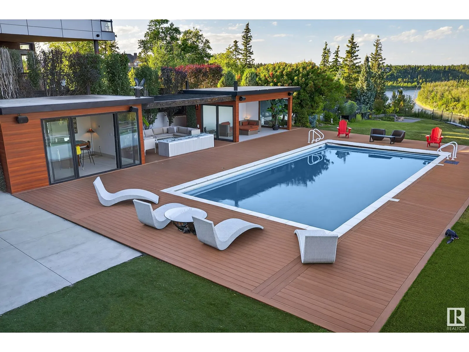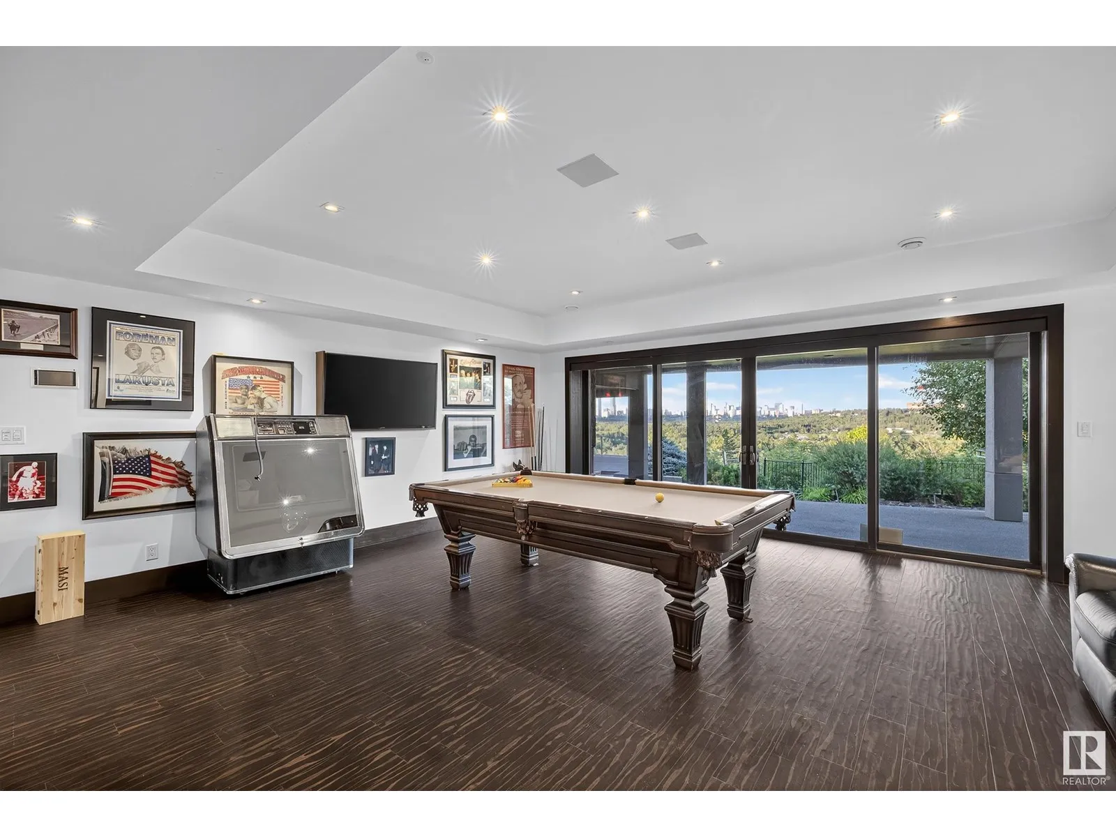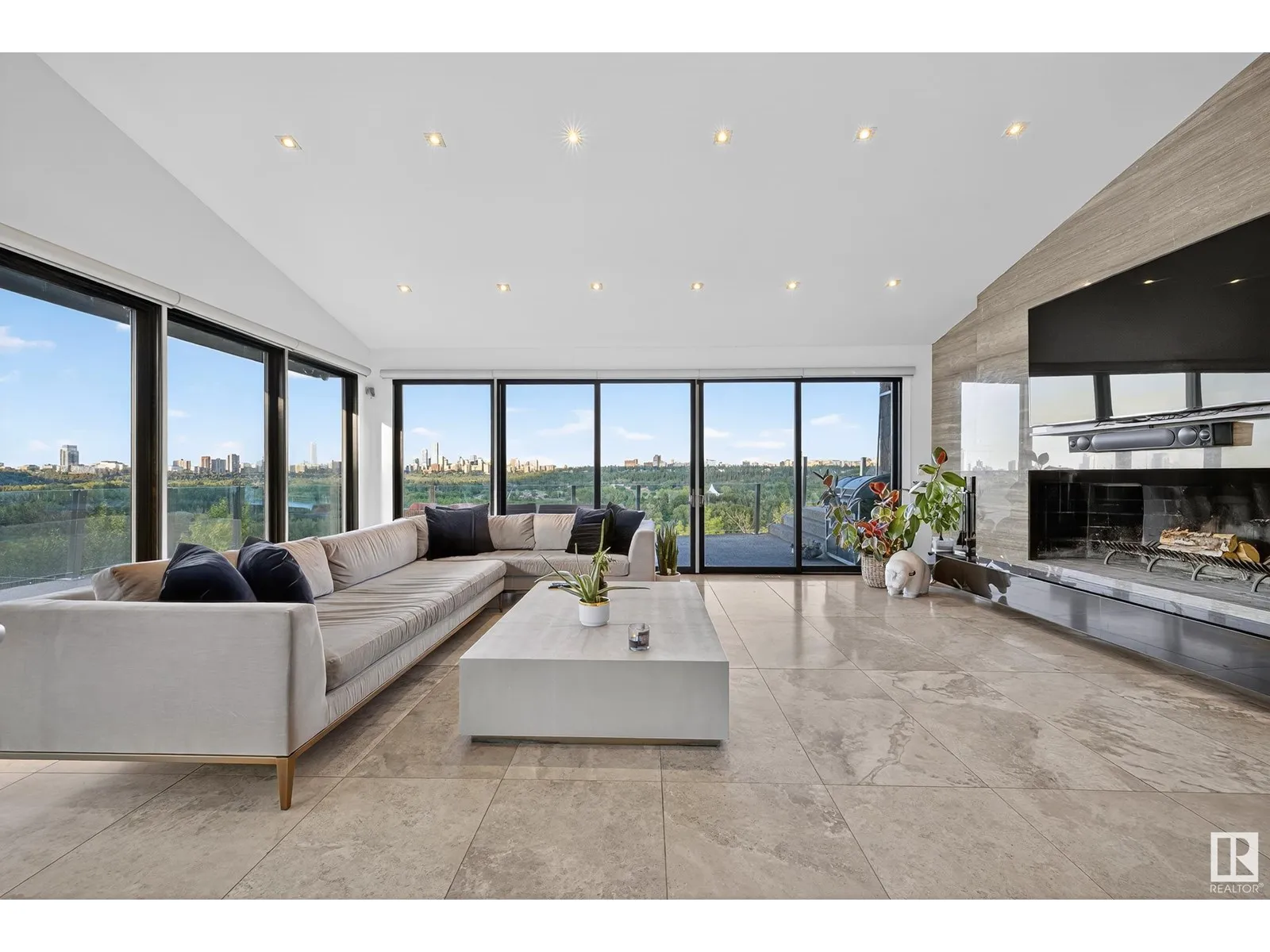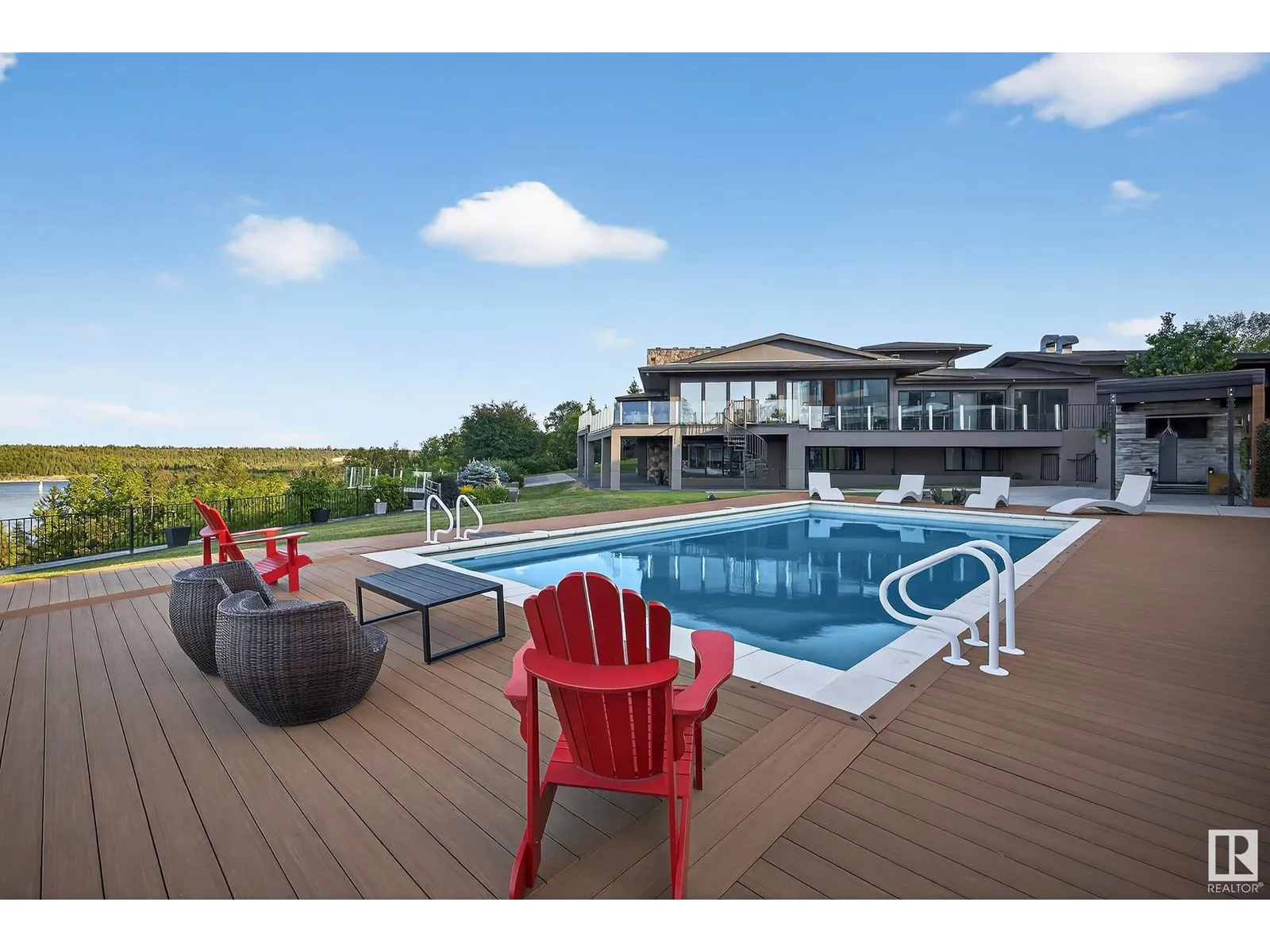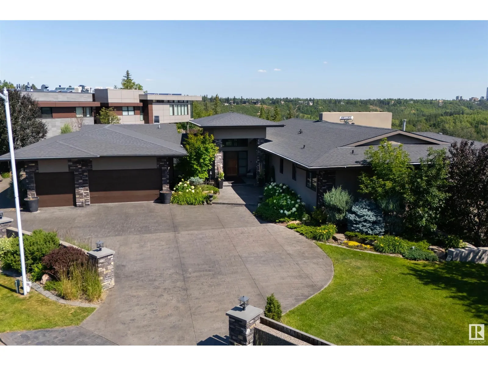 An iconic address with world-class views. Welcome to 13758 Valleyview Drive. Set on an extraordinary 49,000+ sq ft lot with unobstructed panoramic views of downtown Edmonton and the river valley, this custom-built estate offers over 6,500 sq ft of elevated living. Every detail has been crafted for luxury, from the grand chefâs kitchen and open-concept living spaces to the expansive main deck designed for upscale entertaining. Nearly every room captures breathtaking vistas. The upper level is anchored by a lavish primary retreat with spa-like ensuite, boutique-style walk-in closet, sitting lounge, and wet bar. The walkout basement features a private theatre, billiards room, wet bar, office, and guest suite. Step outside to your resort-style backyard with a spectacular in-ground pool and mature landscaping. A rare opportunity on one of Edmontonâs most prestigious streets. (id:27476)