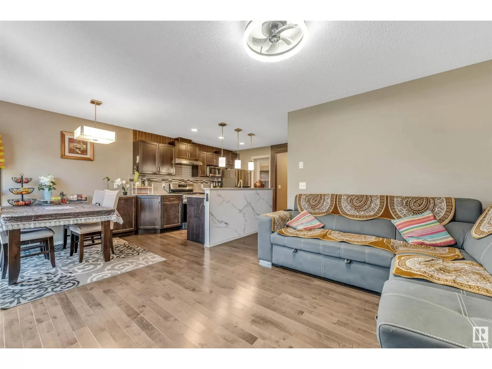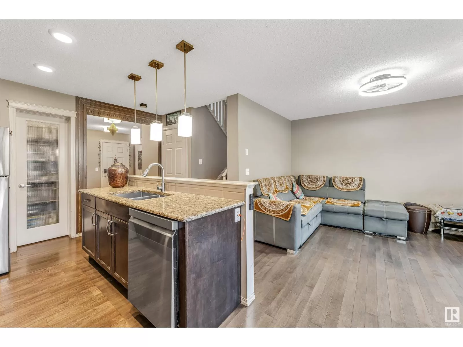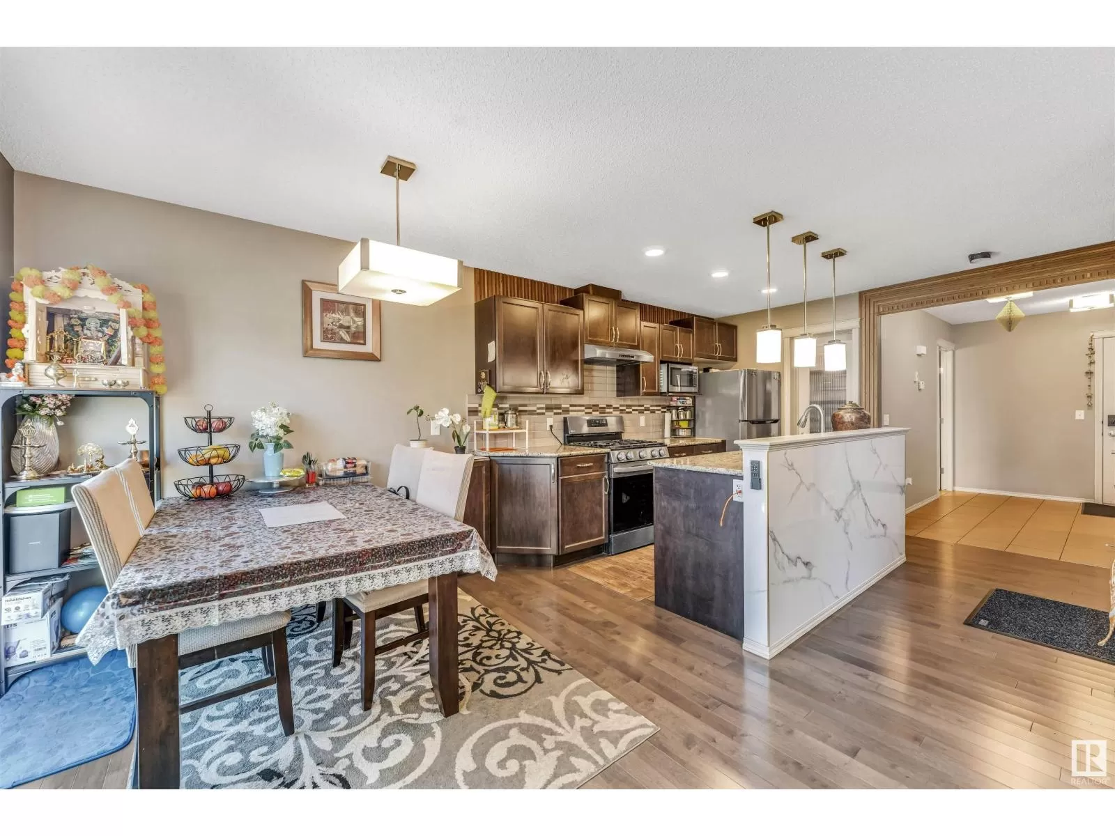 Welcome to this spacious 2,110.11 sq.ft. duplex (including finished basement) with a double car garage, ideally located within walking distance to the Recreation Centre, high school, and Chalo FreshCo. The main floor features a spacious foyer, a convenient half bathroom, a cozy living room with a fireplace, and a dining area that flows into the well-equipped kitchen. The kitchen includes a gas stove, hood fan, large island, and a generous pantry. Upstairs, youâll find a bright bonus room, a large primary bedroom with a private ensuite, two additional good-sized bedrooms, and another full bathroom. The fully finished basement offers a recreation room, a full bathroom, and potential for a side entranceâperfect for future development or in-law space. The large backyard is ideal for kids and outdoor entertaining. (id:27476)