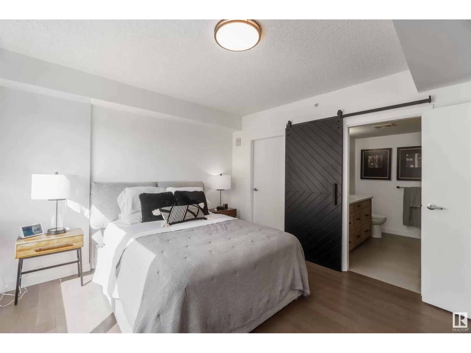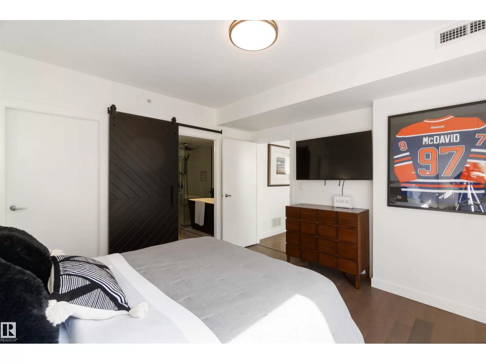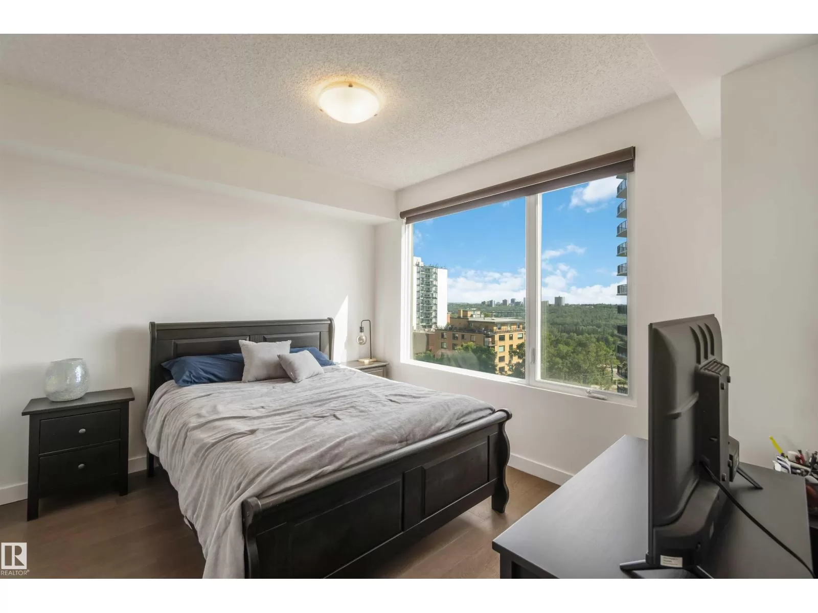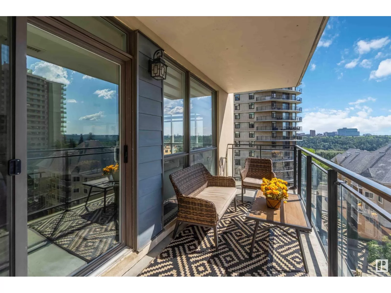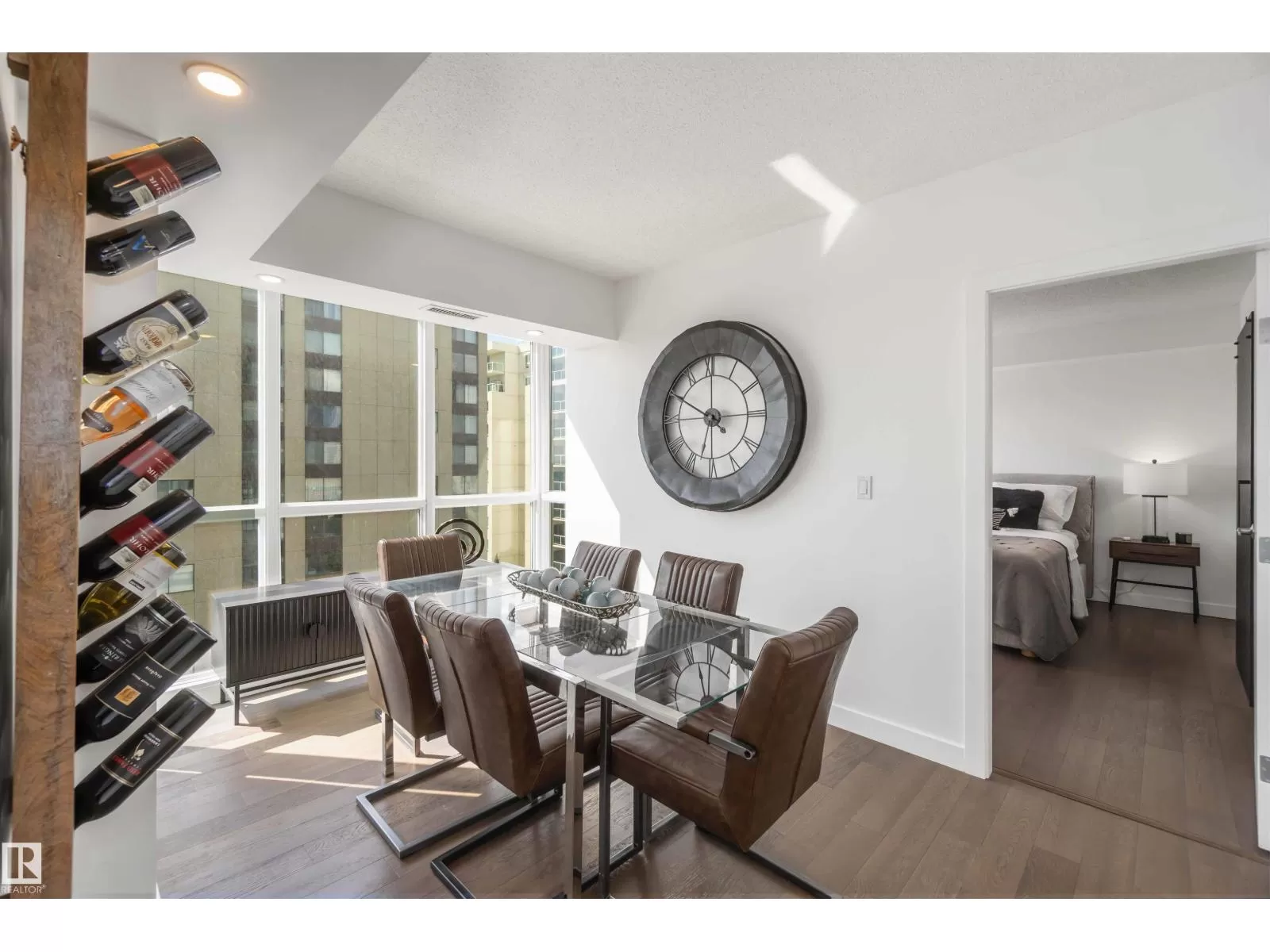 TOTALLY UPGRADED! CONCRETE BUILDING! RIVER VALLEY VIEW! WELCOME TO ONE OF DOWNTOWN EDMONTON'S BEST; 802, 10046 117 STREET. THIS 8TH FLOOR UPTOWN ESTATES UNIT HAS ALMOST 1100 SQ FT OF LIVING SPACE, 2 BEDROOMS, 2 BATHS, AND TITLED PARKING. THE UPGRADED CUSTOM KITCHEN HAS A BREATHTAKING WATERFALL STYLE ISLAND WITH QUARTZ COUNTERTOPS, SOFT-CLOSE 2 TONED CABINETRY WITH BLACK-PEARL HARDWARE, NEW APPLIANCES, TILE FLOORS, AND NEW BACKSPLASH. UNIT HAS UPGRADED PARK-LIGHTING THROUGHOUT AND ELECTRIC BLINDS. LIVING AREA HAS ENGINEERED FLOORS. DINING AREA HAS EXTERIOR DECK ACCESS. PRIMARY BEDROOM IS MASSIVE WITH A LARGE WALK-IN CLOSET AND BARN DOOR ENSUITE ACCESS. ENSUITE OFFERS AN OVAL STAND-ALONE TUB, DOUBLE SINKS, AND A GLASS SHOWER. SECONDARY BEDROOM IS SPACIOUS WITH DOUBLE CLOSETS. UNIT ALSO HAS A FLEX AREA/STUDY, LAUNDRY, MAIN BATH WITH SHOWER, AND CENTRAL AIR CONDITIONING. BUILDING HAS A SHARED GYM, SOCIAL ROOM, AND SECURED UNDERGROUND PARKING. LOCATED STEPS FROM THE RIVER. (id:27476)