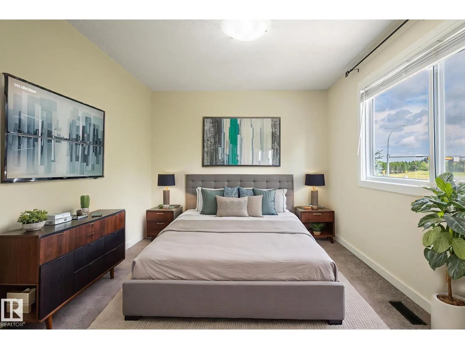 Welcome to this beautifully updated 2-bedroom home in the highly desirable Riverbend Community of Brander Gardens! Ideally located just steps from top-rated schools, parks, playgrounds, scenic walking trails, public transit and shopping centres, this home offers both comfort and convenience. The main floor features an open concept layout with a spacious living room, a cozy wood burning fireplace, and attractive laminate throughout the main floor. Patio doors lead to a private fenced backyard perfect for outdoor enjoyment. The bright dining area is adjacent to the modern kitchen which has ample cabinetry. Upstairs you will find two generous size bedrooms and a stylish 4-piece bathroom. The basement includes a laundry area and offers plenty of space for future development. Complete with 1 energized parking stall, this home would be great for first time home buyers, down-sizers or investors! Quick possession available! Some photos virtually staged with furniture (id:27476)