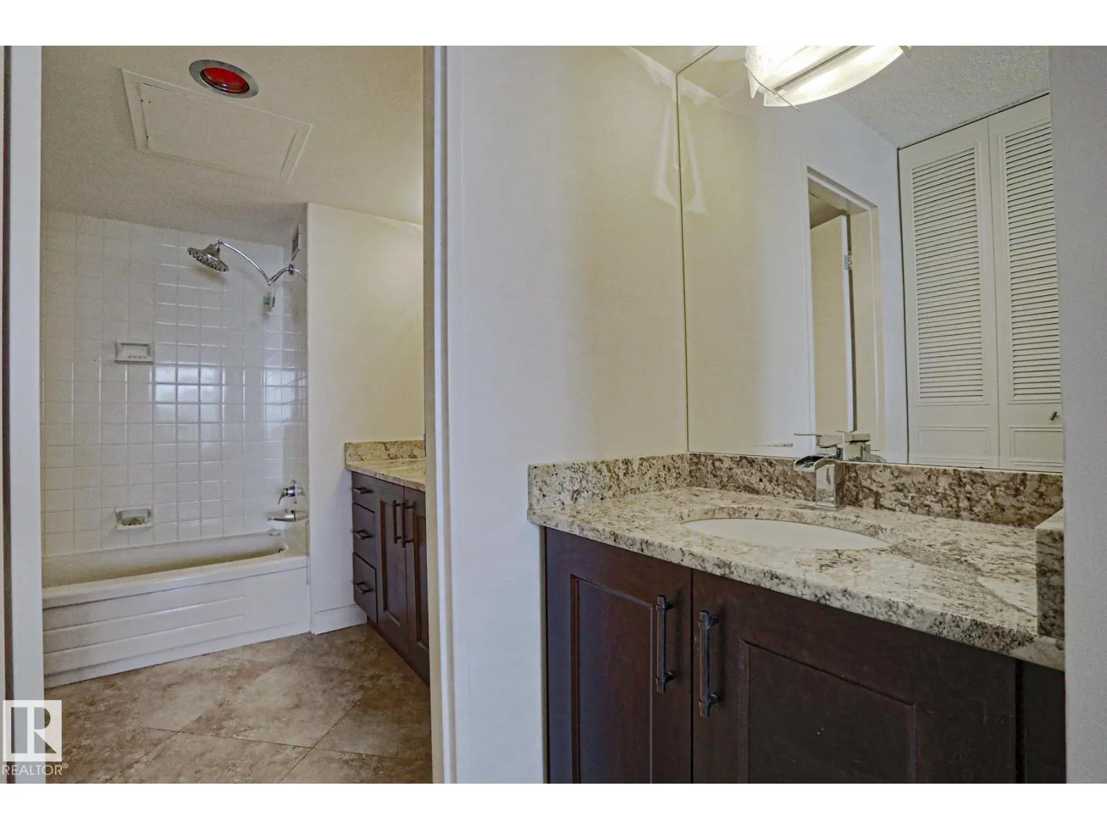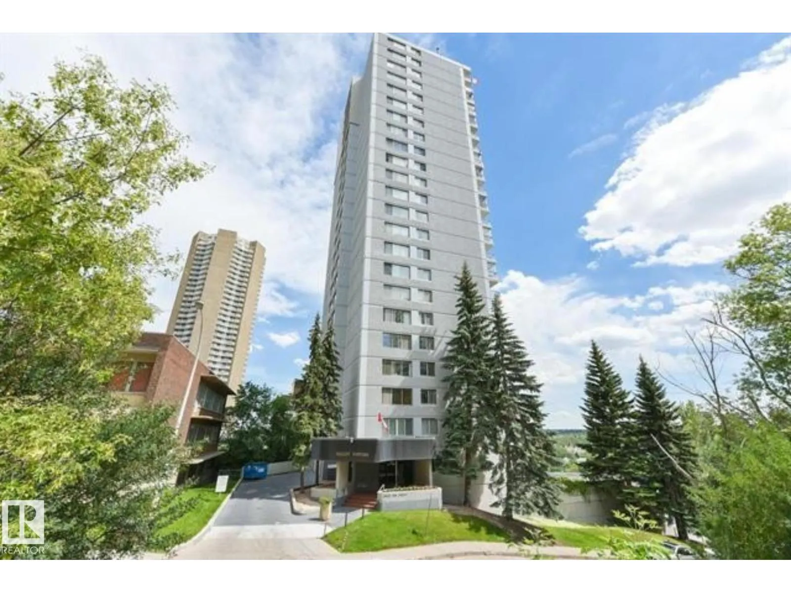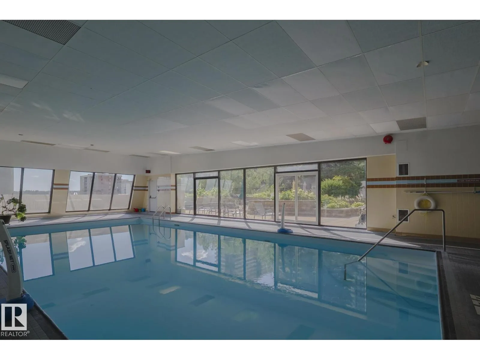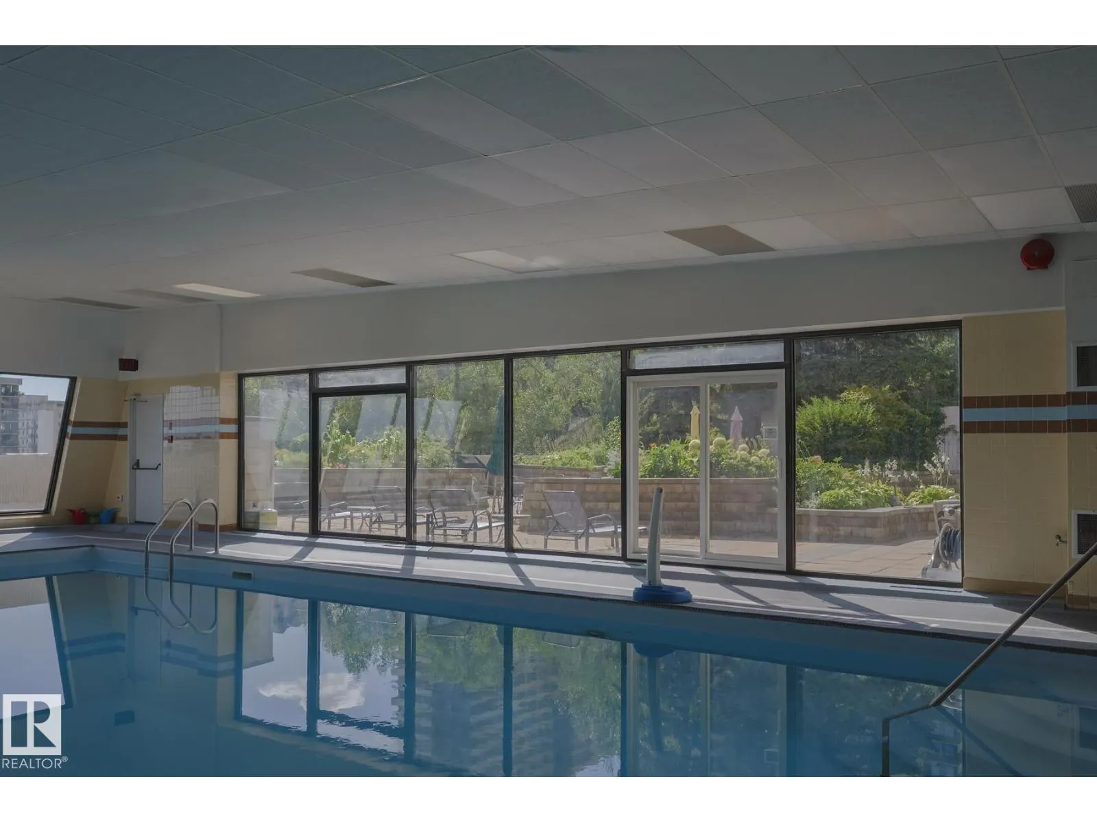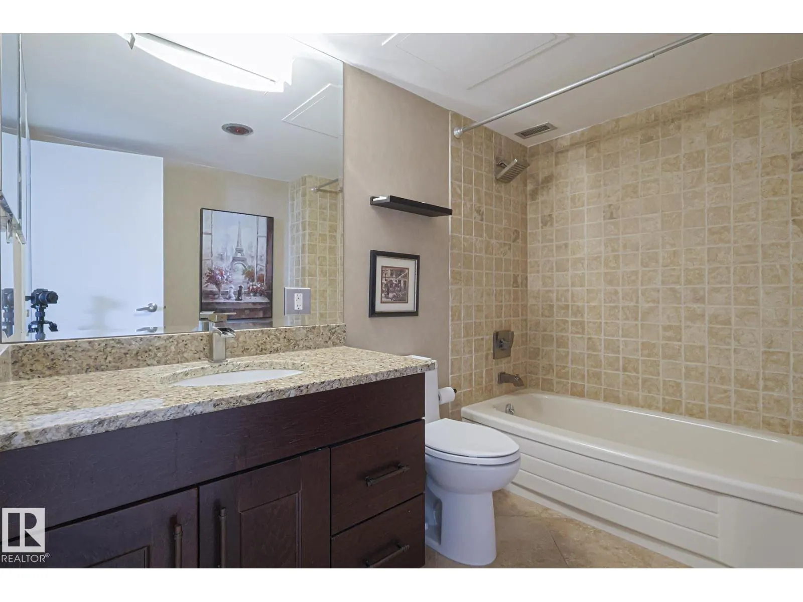 Gorgeous fully renovated condo in the prestigious Valley Towers. With over 1,300 sq ft this 2 bedroom, 2 full bath condo boasts both luxury and functionality. The open dining area features two stone feature walls and flows into the spacious living room with TWO south-facing balconies offering gorgeous RIVER VALLEY VIEWS. The primary bedroom includes double closets and a full ensuite with a separate vanity area. The second bedroom/den has French doors and built-in shelving. Italian porcelain tile flows throughout, including both balconies. Valley Towers offers only 3 units per floor and unmatched amenities: indoor pool, sauna, steam room, gym, social and hobby rooms, private gardens, gated visitor parking, and titled heated U/G parking with storage. Condo fees cover all amenities and ALL UTILITIES including TV. WALK to LRT, Rogers Place, and more! This home shows 10/10 with NEW PAINT THROUGHOUT! (id:27476)