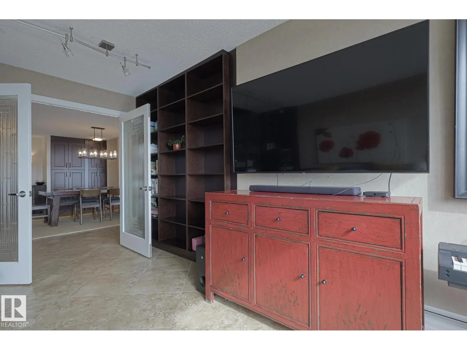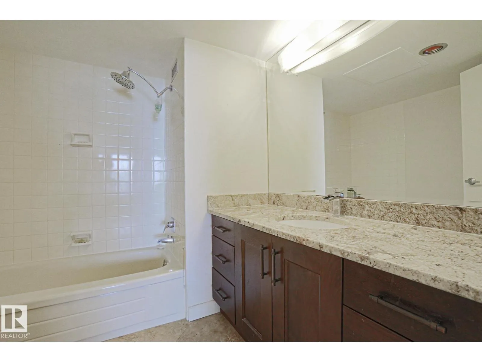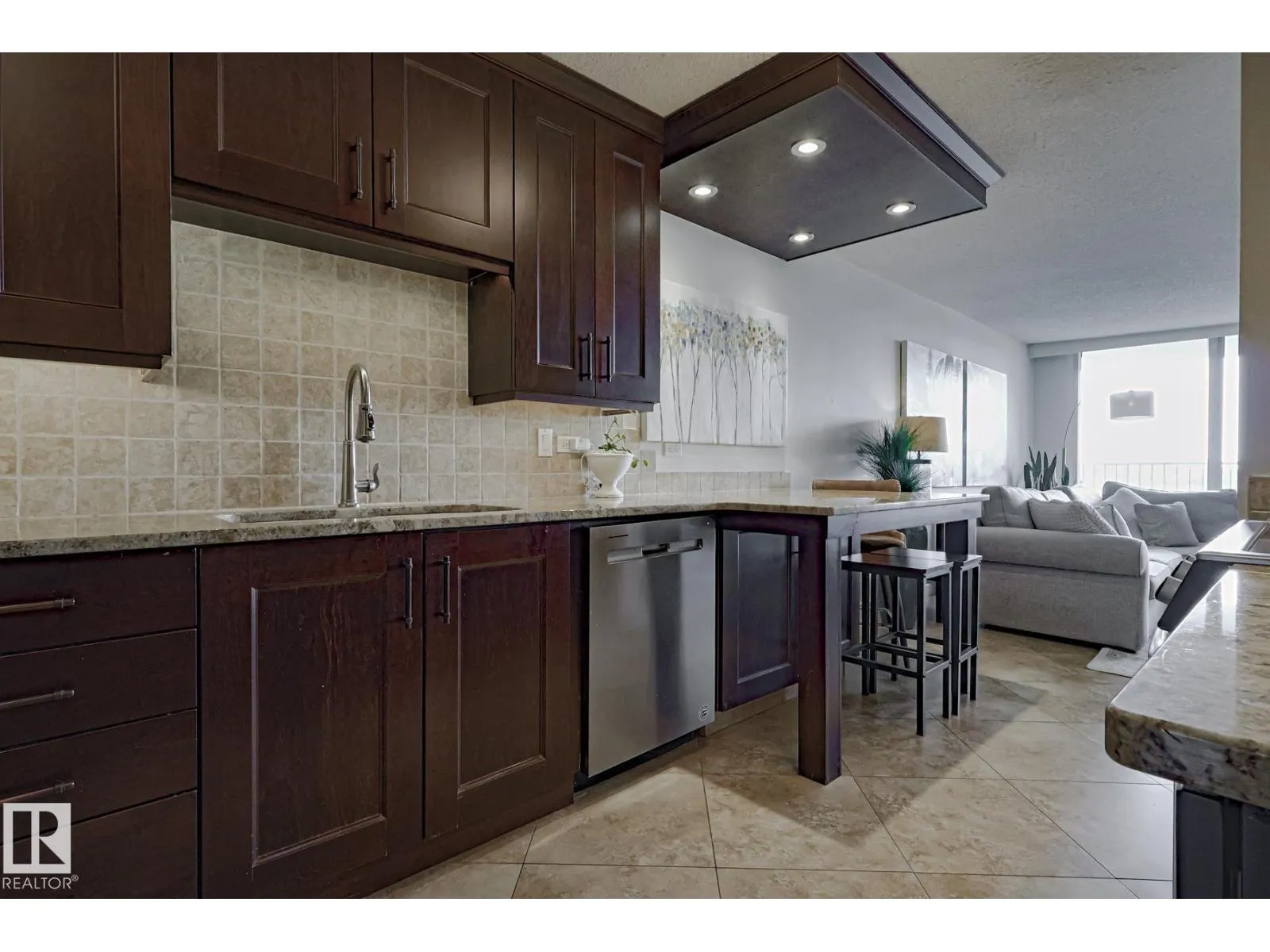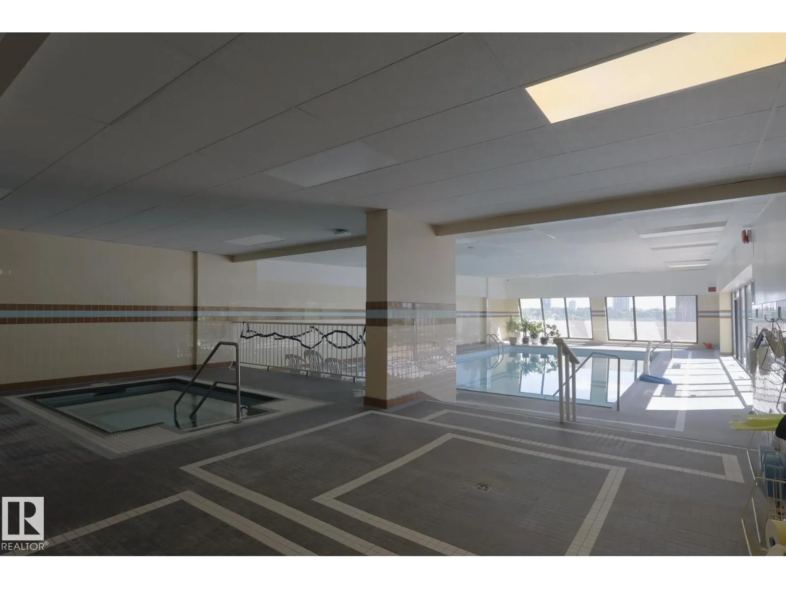 Gorgeous fully renovated condo in the prestigious Valley Towers. With over 1,300 sq ft this 2 bedroom, 2 full bath condo boasts both luxury and functionality. The open dining area features two stone feature walls and flows into the spacious living room with TWO south-facing balconies offering gorgeous RIVER VALLEY VIEWS. The primary bedroom includes double closets and a full ensuite with a separate vanity area. The second bedroom/den has French doors and built-in shelving. Italian porcelain tile flows throughout, including both balconies. Valley Towers offers only 3 units per floor and unmatched amenities: indoor pool, sauna, steam room, gym, social and hobby rooms, private gardens, gated visitor parking, and titled heated U/G parking with storage. Condo fees cover all amenities and ALL UTILITIES including TV. WALK to LRT, Rogers Place, and more! This home shows 10/10 with NEW PAINT THROUGHOUT! (id:27476)