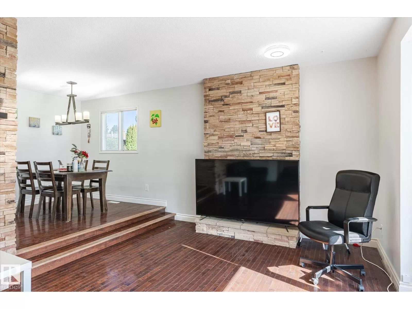 This beautifully upgraded home blends style, space, and functionality. The main level features a sunken living room with custom stone walls, a cozy fireplace, and a large bay window. A formal dining area flows into a modern kitchen with granite counters, stainless steel appliances, and ample cabinetry. Also on the main floor are 3 bedrooms, including a primary suite with a 3PC ensuite and generous closet space, plus a 4PC main bath and laundry room. The fully finished basement offers a second kitchen, 3 more bedrooms, a spacious living area, 4PC bath, and separate laundry. The exterior boasts acrylic stucco with stone accents, a west-facing fully fenced backyard, and a large deck. A rare find, the detached quad garage (36' x 24') features a 10â overhead door, furnace heater, and plenty of natural lightâperfect as a workshop or hobby space. Ideally located near Heritage Mall, schools, and public transit. (id:27476)