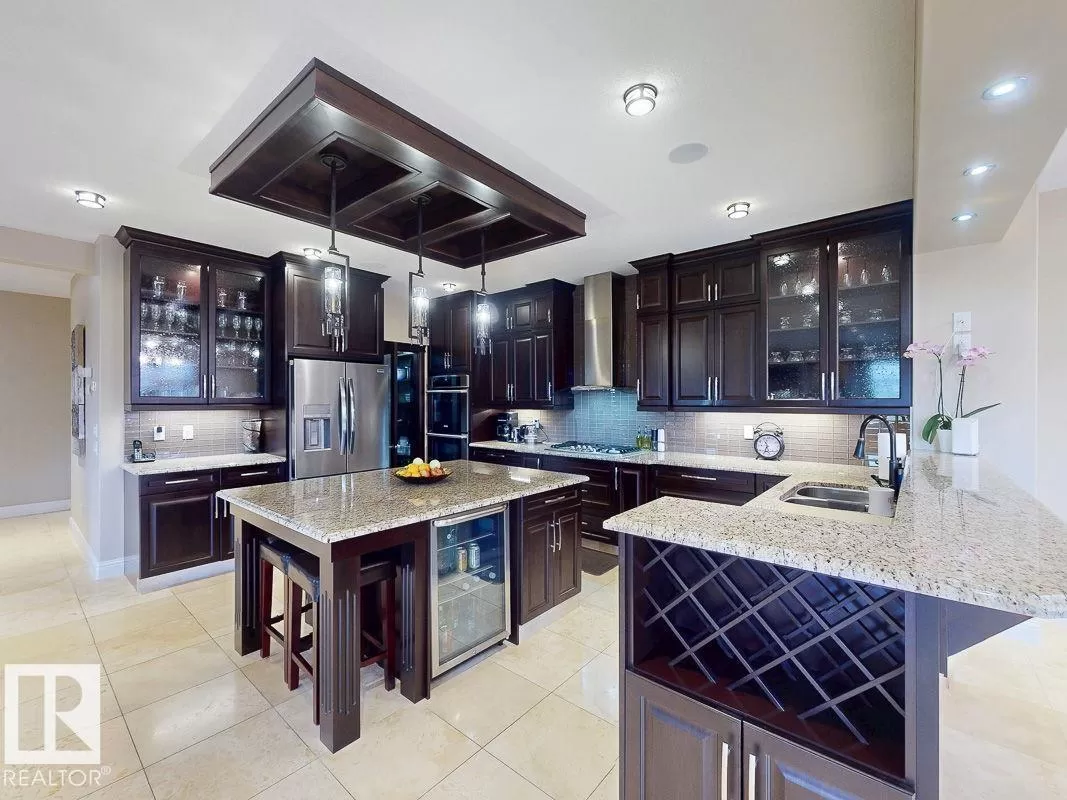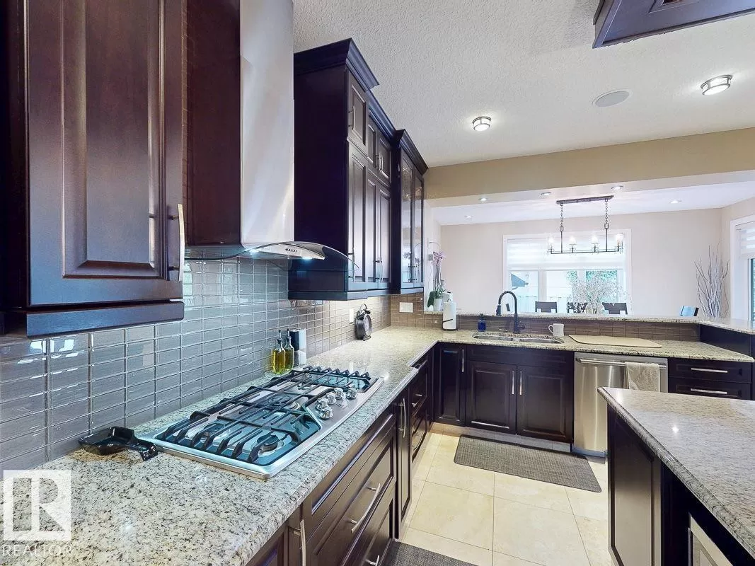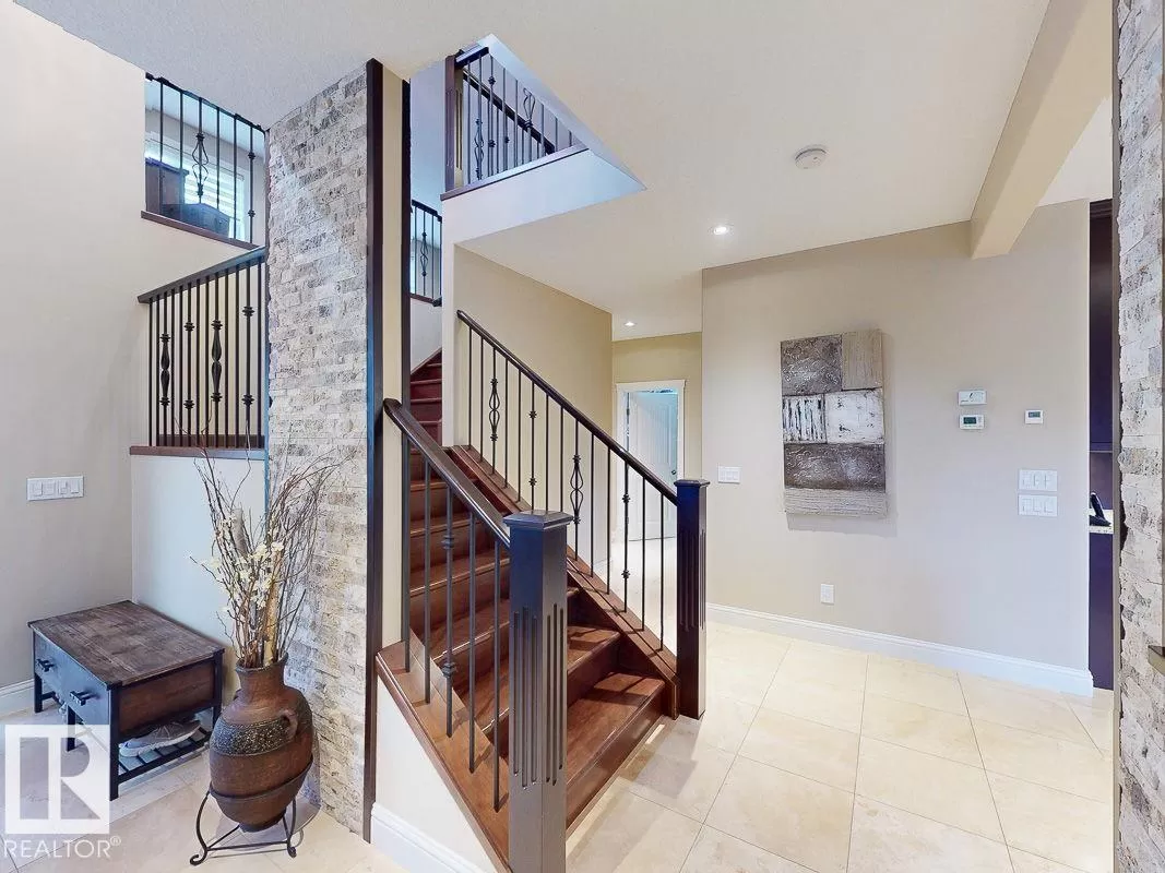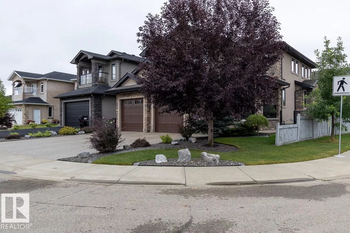 This exquisite home is a true showcase of luxury, craftsmanship, and thoughtful design. Privately situated across from a tranquil lake and surrounded by beautiful landscaping, it feels like a brand new home inside & out. The upper floor offers 3 spacious bedrooms + a bright bonus room. The primary suite is a private retreat with a spa-inspired 5 pc. ensuite featuring a jacuzzi tub, while the second bathroom upstairs is also a 5 pc. for extra comfort. A convenient 2nd floor laundry room adds everyday ease. Every tiled area and the fully finished basement enjoy the benefit of in-floor heating. The chefâs kitchen impresses with a massive island, granite countertops, double ovens, gas stove, and ceiling-height cabinetry, opening to the great room with elegant gas fireplace. Downstairs you will find a 4th bedroom, full wet bar, 4pc. bath, cold room & storage. Engineered hardwood, surround sound, A/C, a heated finished garage, covered deck, fruit trees, and a boiler system complete this one-of-a-kind property! (id:27476)