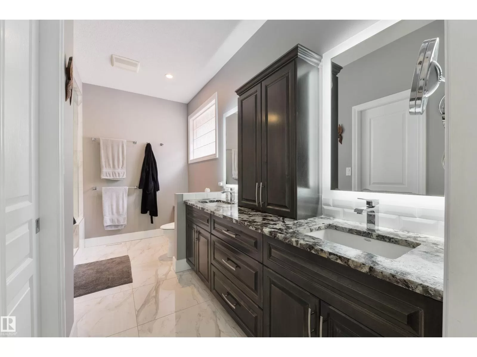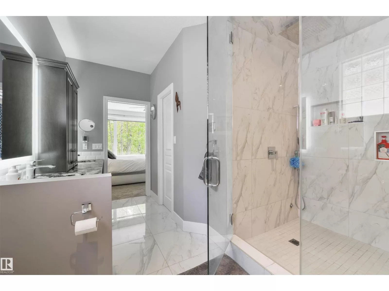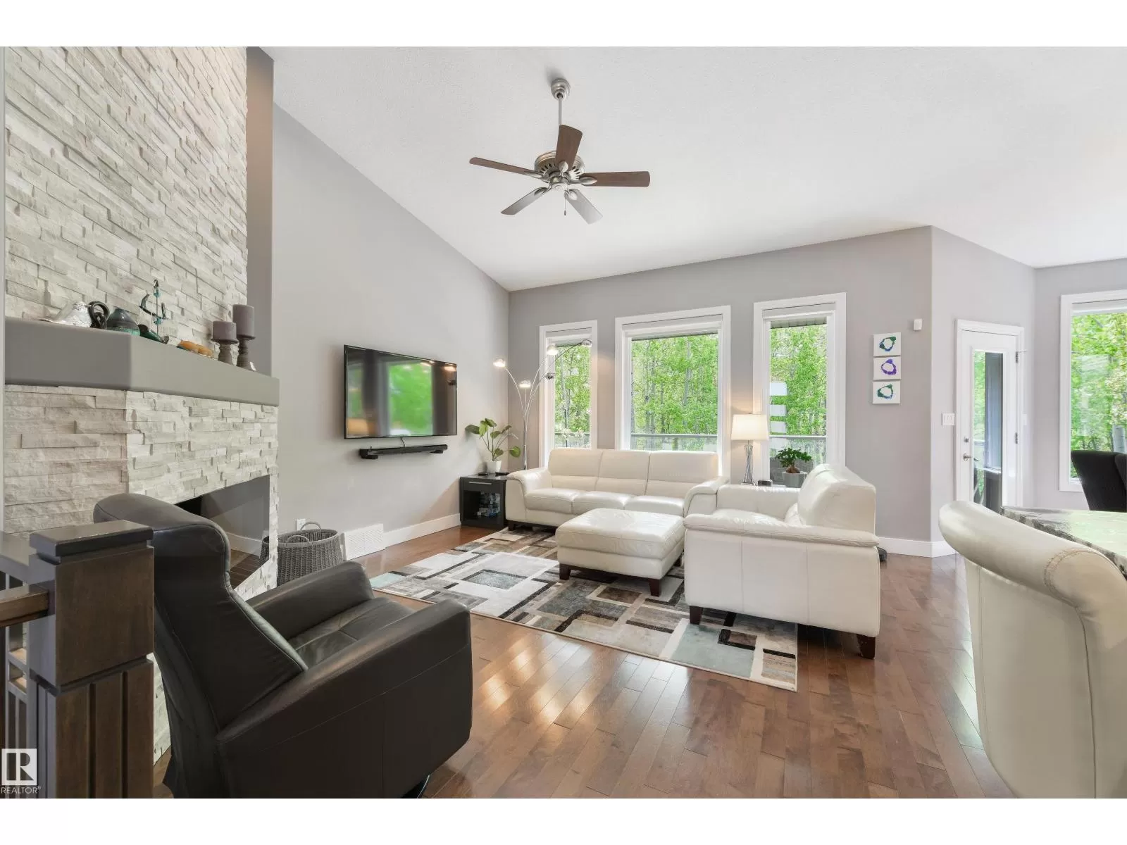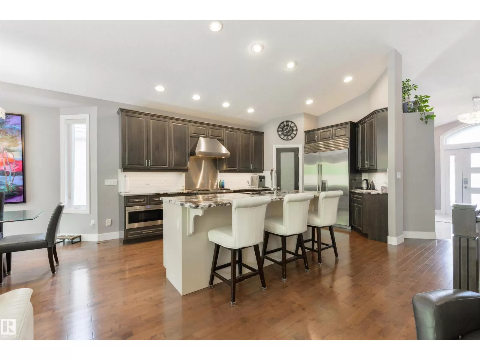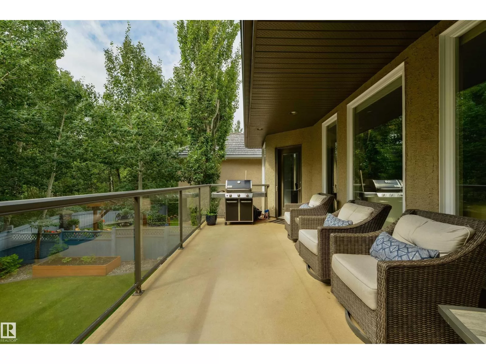 A Walkout Bungalow backing on to the ravine doesnât come up often and this one in the Gated community of Prestige Point has it all. This 4 Bedroom Home is steps away from the Edmonton Country Club Golf Course and has been renovated from Top to Bottom! Most homes in this neighborhood need 3-$400k of renovations, but this one is turn key! The Sub Zero and Wolf appliances in the open concept kitchen are a chefâs dream and make entertaining a pleasure. All windows have recently been replaced, alongside the 40-year cedar shake roof ($45k), while all of the custom cabinetry and imported Brazilian granite line the entire home. All of the bathrooms have been updated- you name it this place has it. Wine cellar, steam shower, heated bathroom floors, hot tub, irrigation system, professional landscaping - everythingâs been considered all the way up to the extra blown in insulation in the attic. With 2 beds up & main floor laundry this is the perfect combination of size and privacy providing an unbeatable lifestyle. (id:27476)