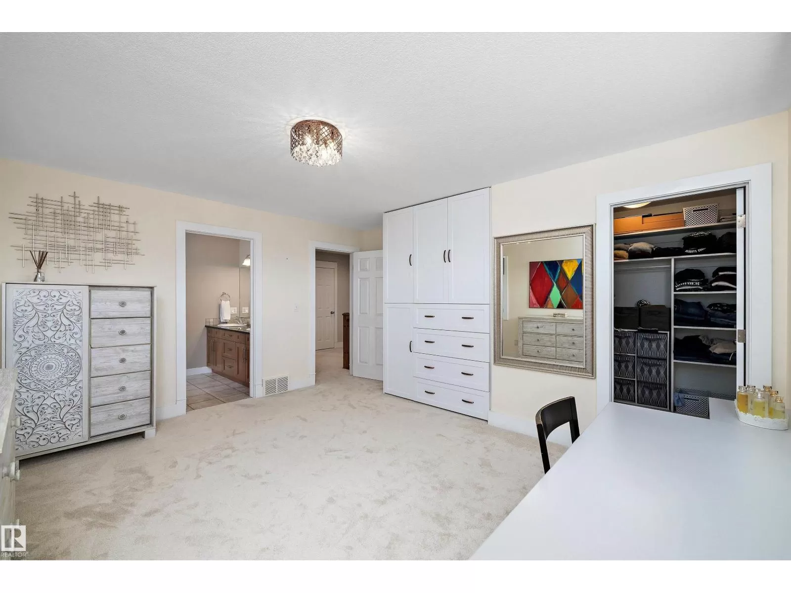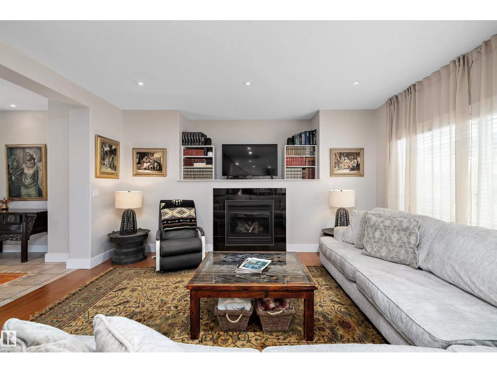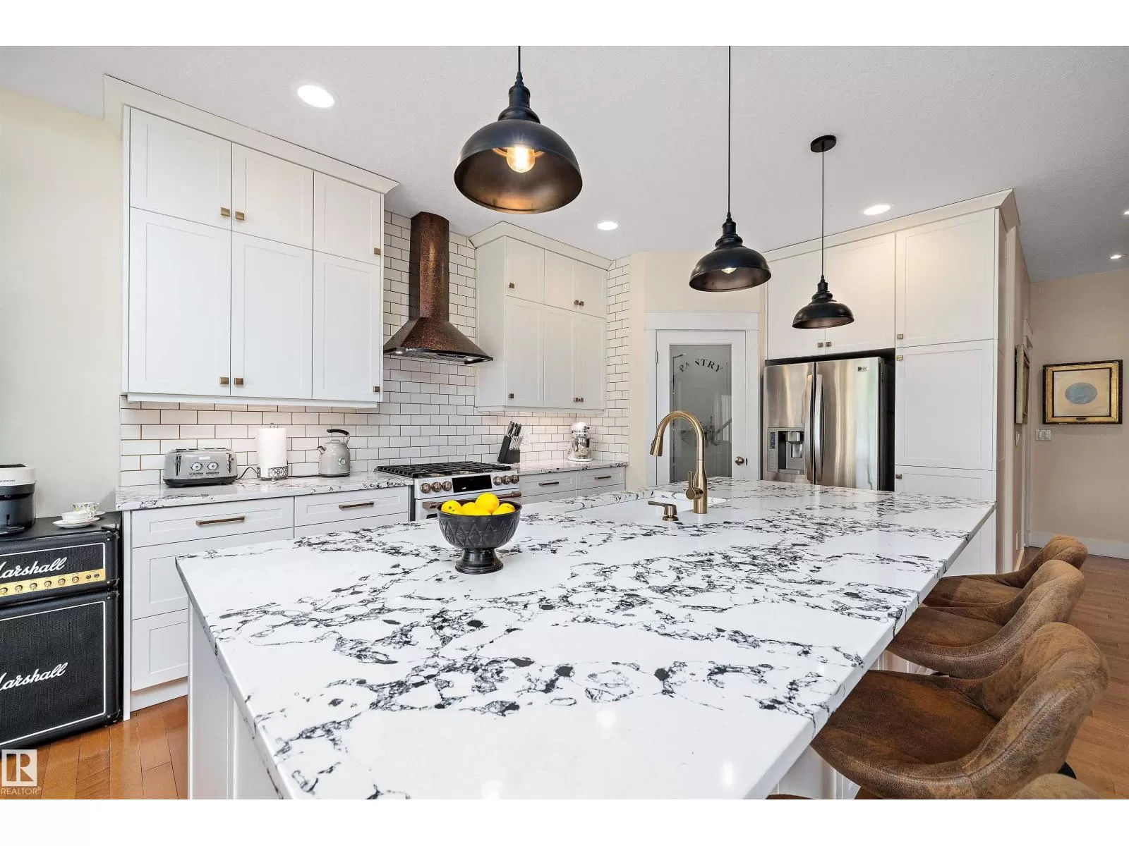 This executive 2-storey blends elegance with functional family living. Step inside to an open, spacious layout with green space views with no neighbour behind. The warm, inviting living room features a fireplace and an open staircase to the upper level. The main floor showcases a new chefâs kitchen with white cabinetry, granite countertops, a new dishwasher and stove, stainless steel appliances, and an oversized island perfect for entertaining. A walk-through pantry leads to the beautifully renovated laundry with a new washer and dryer, then to the oversized heated garage. Upstairs offers 4 bedrooms, including the primary suite with a 5-piece ensuite. The finished basement adds 2 more bedrooms, a full bath, a recreation room, and a mini-suite with fridge, sink, and extra cabinetry ideal for guests. New carpets throughout. Incredible backyard for gatherings. Close to shopping, schools, parks, transit, and Anthony Henday. (id:27476)