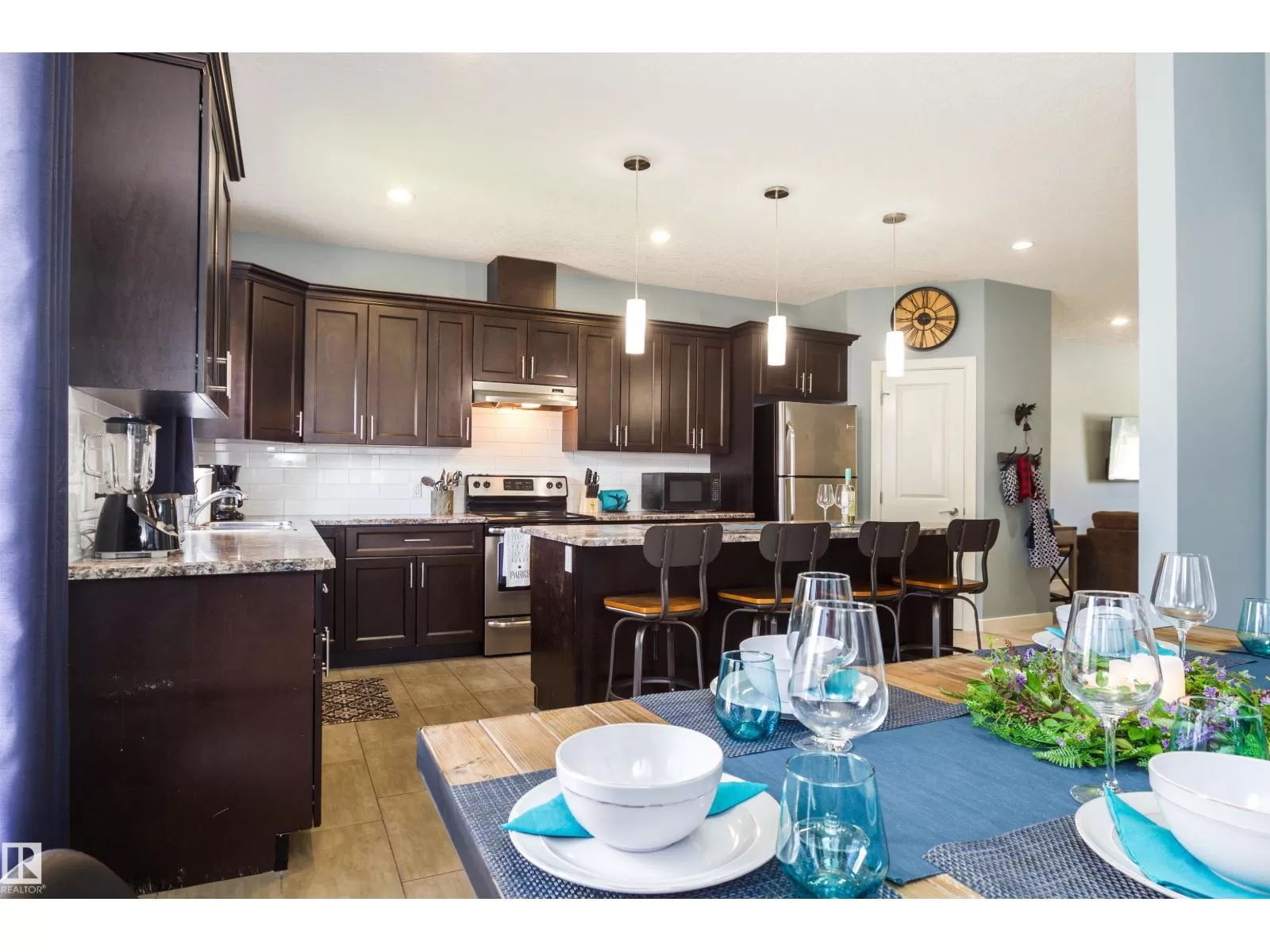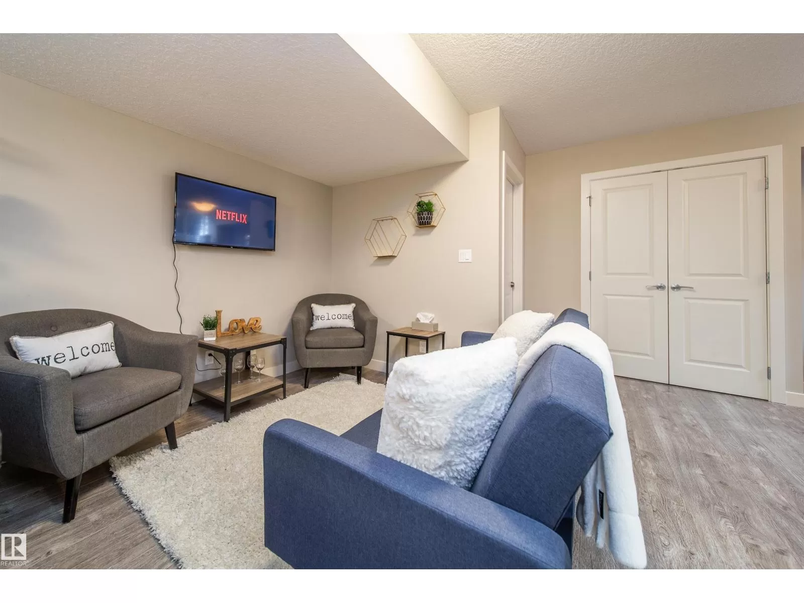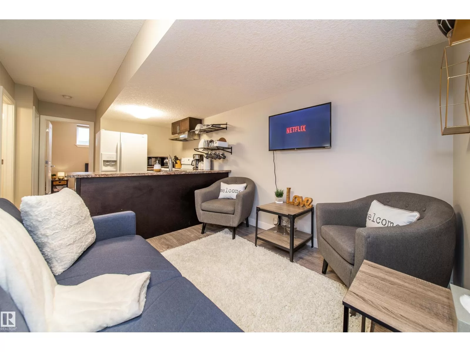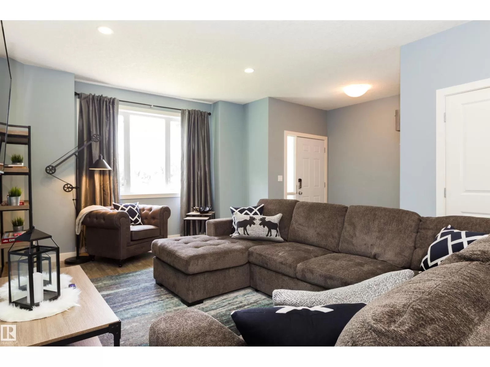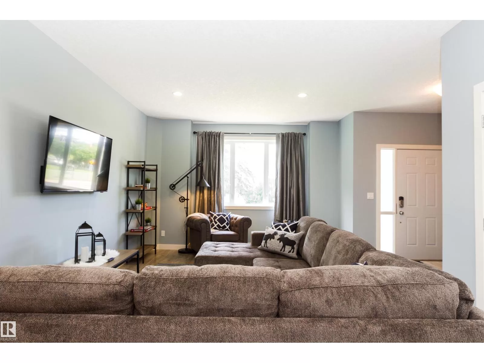 Welcome to Sherwood! This large, fully finished half-duplex with a side entrance is ideal for a large family. The main floor features an open-concept layout, seamlessly connecting the living area and kitchen. The kitchen is well-equipped with ample cabinets, a large island, and a pantry. Upstairs, you will find the primary bedroom with an en-suite bathroom and a walk-in closet, along with two additional bedrooms and another full bathroom. Exterior features include a double detached garage, a deck, and a fully fenced yard, offering both convenience and privacy. The basement is fully finished with a separate entrance, two bedrooms, separate laundry, a fridge, and a dishwasher, providing flexible living arrangements. Please note, it is only missing an additional stove to be a completely separate unit. (id:27476)