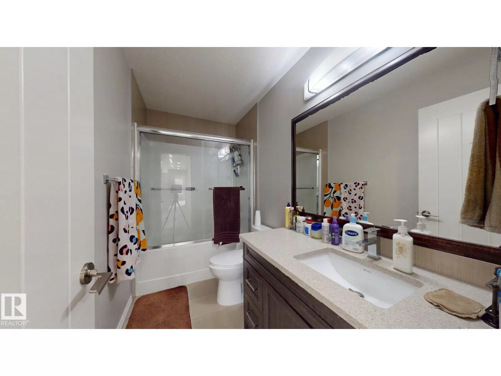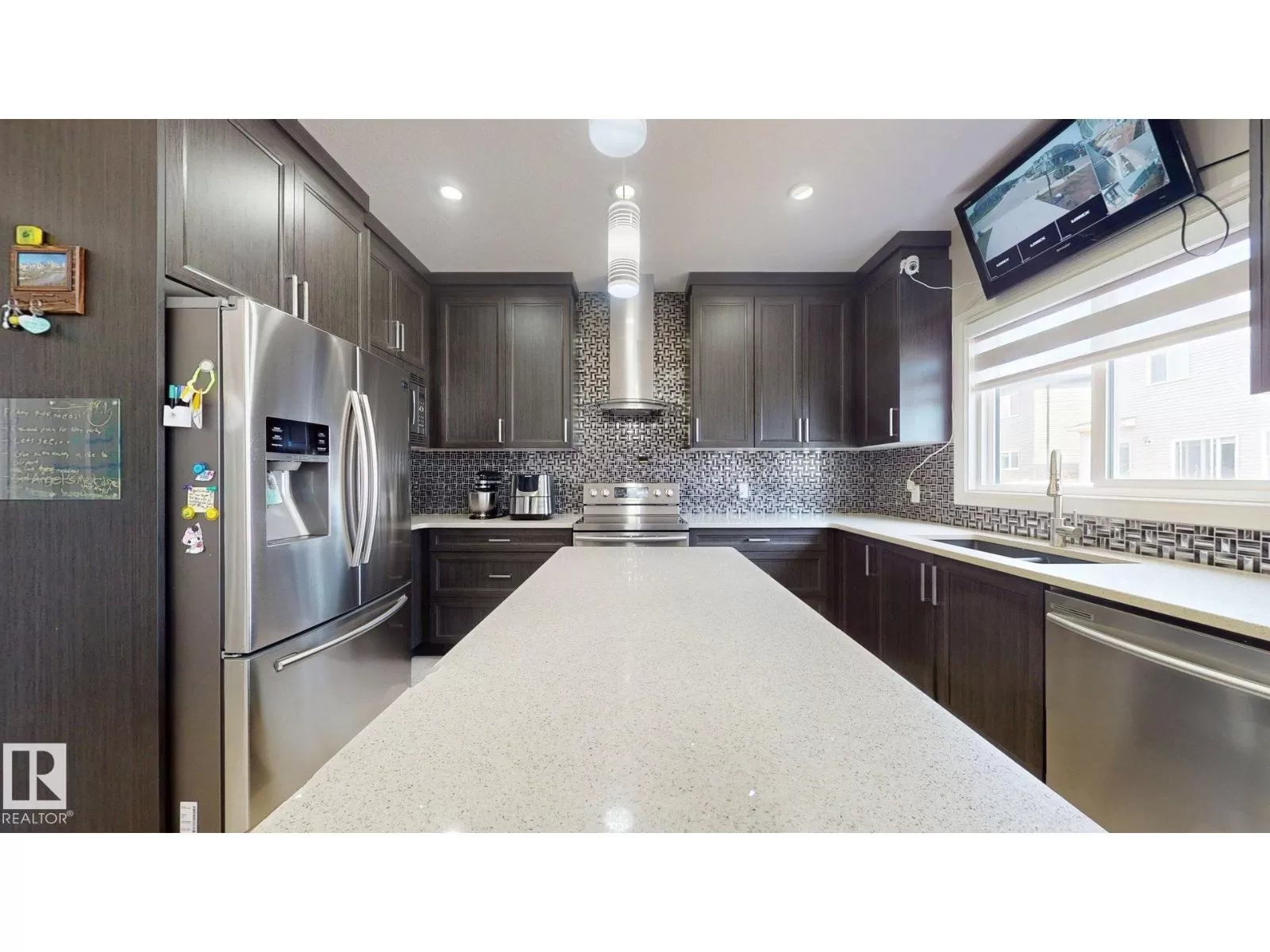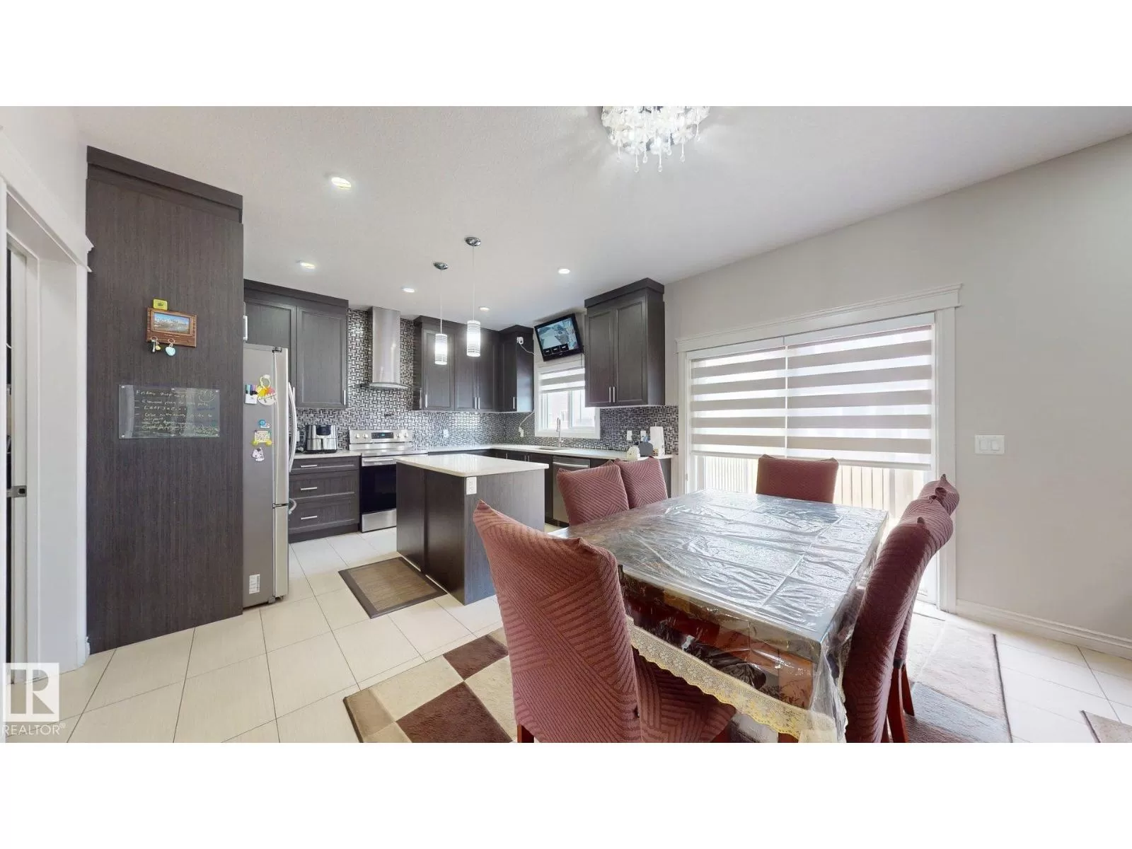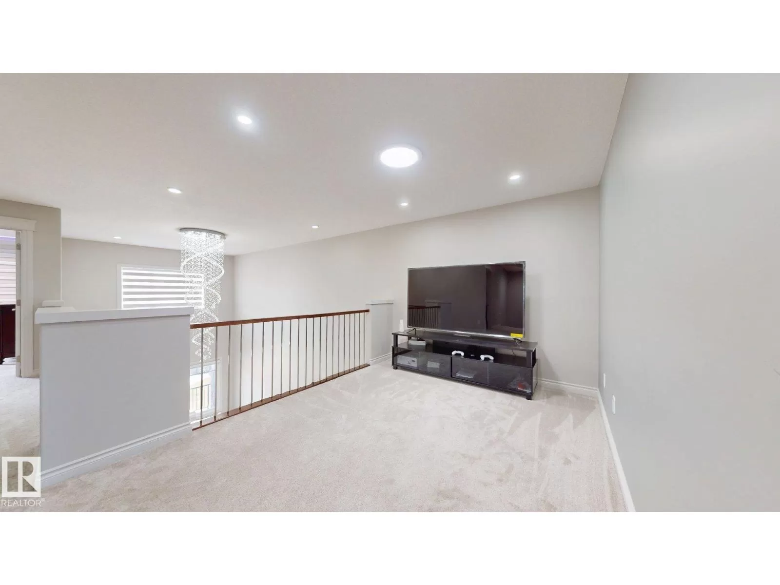This beautiful double-attached garage home is located in a highly desirable Edmonton neighborhood, offering easy access to amenities and major roadways like 91 Street, Ellerslie Road, and Anthony Henday. The main floor boasts a spacious living room with open-to-above ceilings, a cozy family room with an electric fireplace, a BEDROOM ON MAIN with a full 3-piece bath for elderly family members, and a chefâs kitchen with an oversized island, spice kitchen with gas stove, and built-in pantry. The dining area leads to a deck for entertaining. Upstairs, you'll find a bonus room, three bedrooms, two full bathrooms, and a laundry room. The master bedroom features coffered ceilings, a walk-in closet, and a luxurious 5-piece ensuite with a jacuzzi tub. Large windows throughout the house make it bright and spacious, with every corner architecturally utilized. The BASEMENT WITH SEPARATE ENTRANCE and 9' ceilings. This home truly adds comfort to convenience. (id:27476)