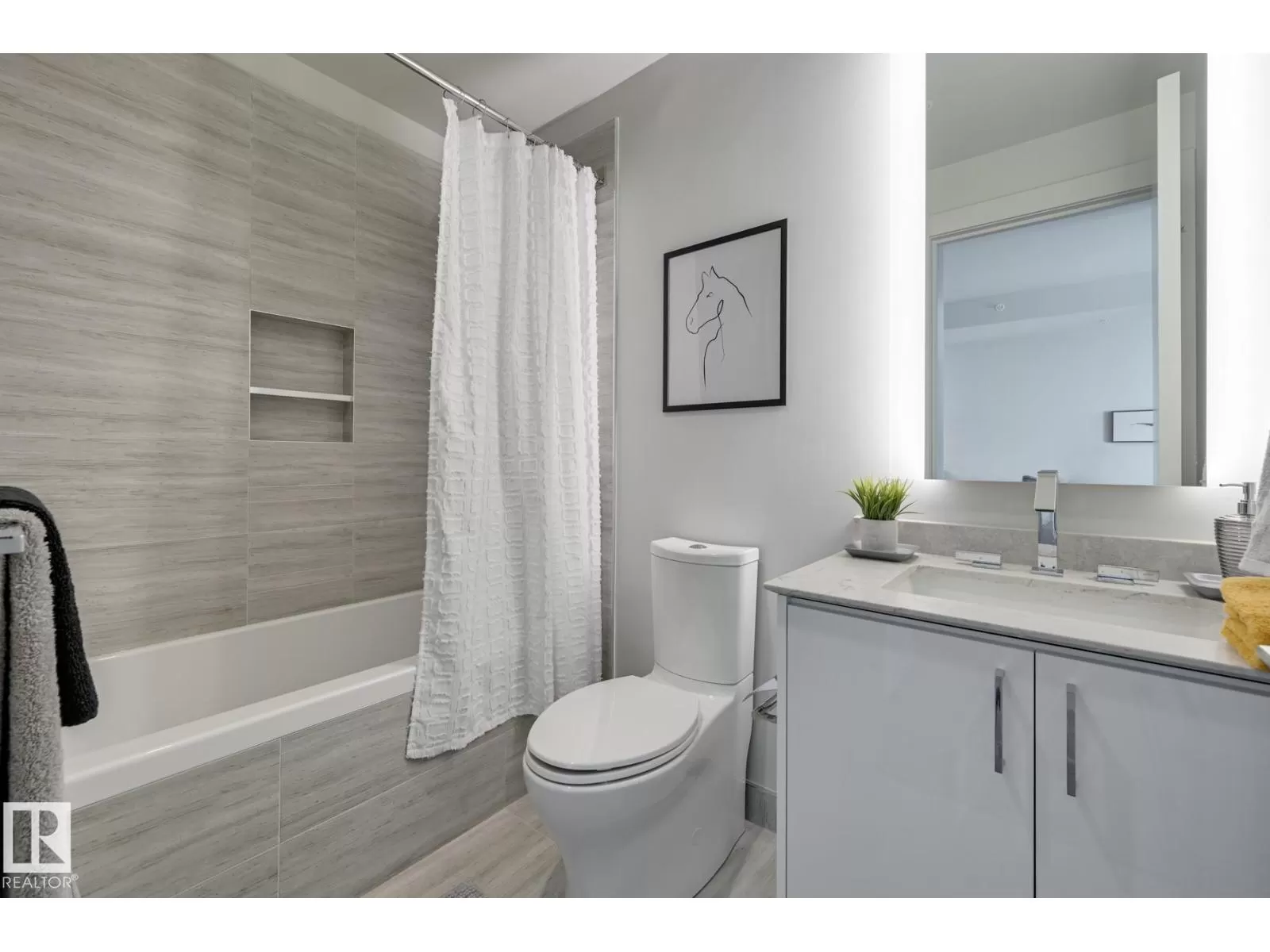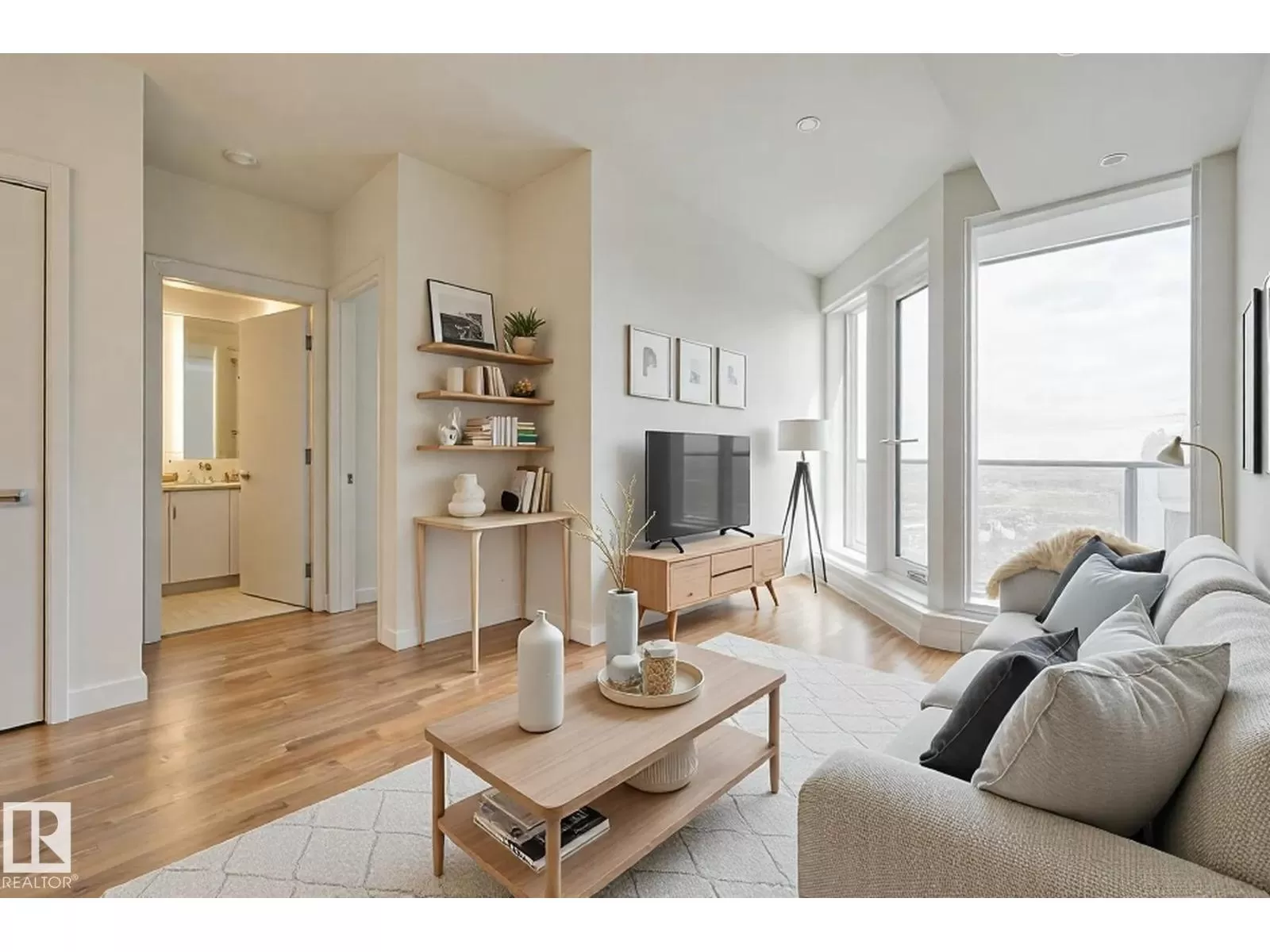 Opportunity at a beautiful 1 BEDROOM+DEN at the Legends Private Residences. Appreciate this suiteâs HIGH-FLOOR location with RIVER VIEWS from the bedroom area. Favorite features include - U-Shape Kitchen with Extra Upper Cabinets, Caesarstone Counters with Seating and Integrated Bosch Appliances and Den. Modern Luxuries - Floor-to-Ceiling Windows with Shades, Natural Wood Floors (no carpet), Tile Surfaces in Bathroom, Convenient In-Suite Laundry, and Individual Temperate Control (heat/ac). Thereâs More - ICE Districtâs central location encourages a walk-indoors experience with pedway access to Rogers Place, the financial core, groceries, public transit + so much more. Residents enjoy a variety of JW Marriottâs shared facilities, including an indoor pool, steam room and ARCHETYPE Fitness Facility. Additional services include 24/7 concierge/security presence, private residentâs lounge, outdoor dog-run and numerous dining choices at your doorstep! (id:27476)