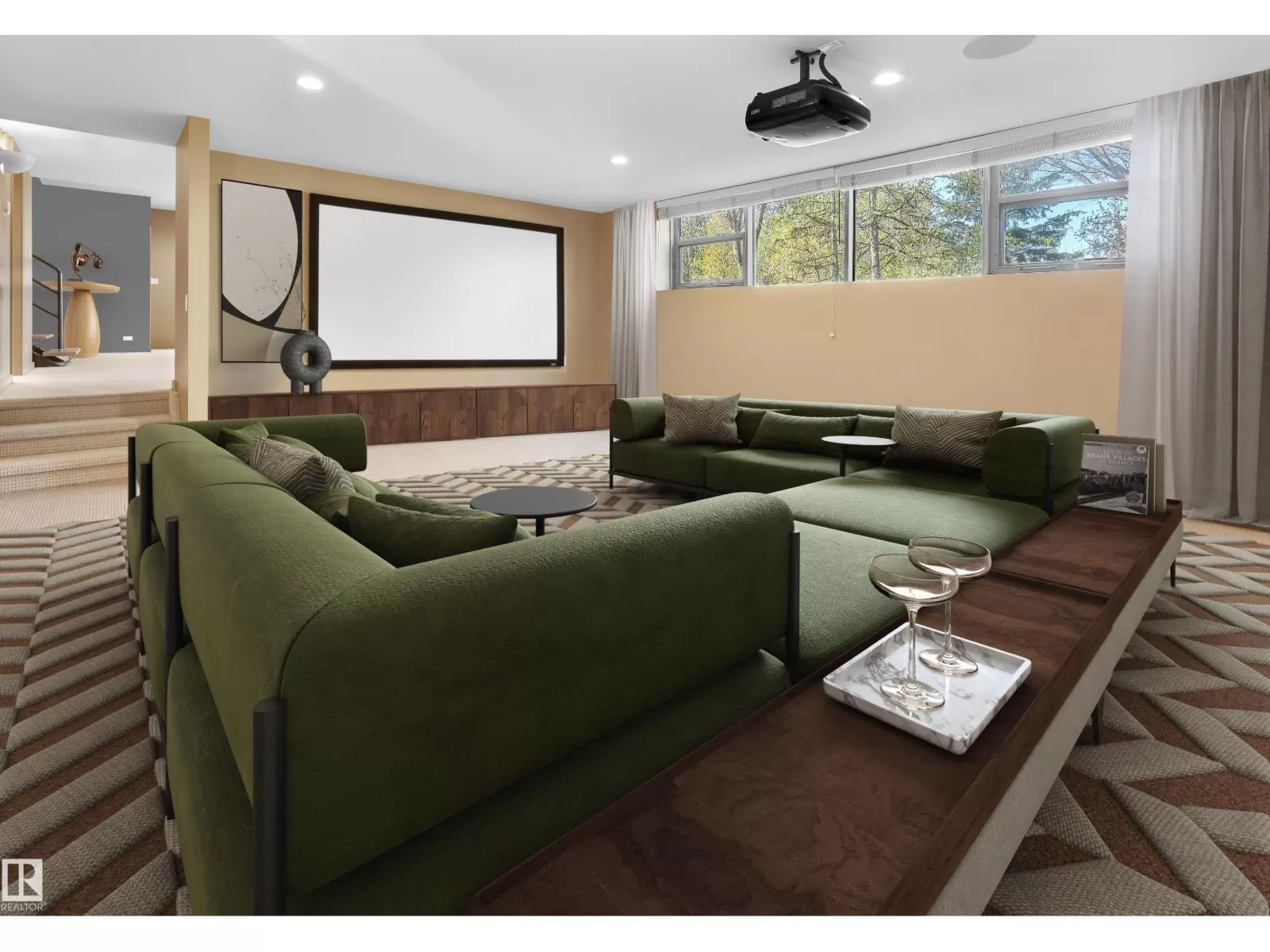 Private location nestled on Patricia Place with breath taking views located on an 11,845sqft lot backing onto the Patricia/Rio Ravine/River Valley. This stunning home has 4779sqft of finished living space including the walkout basement - 4 beds, 3 baths & an oversized double attached garage. The entire home was designed to capture the beautiful location, from the floor to ceiling windows on the main floor to the oversized windows throughout the home â the view & natural light are always in view.Entering the home, you are welcomed by marble floors & hardwood flooring, bright open spaces - including the living room with 20ft ceilings & the perfectly designed kitchen with ample preparation areas. The dining area, bedroom/home office, 3-piece bath, laundry room & boot room complete the main level. The second level lounge overlooks the living room & captures the view; the spacious primary has 2 walk-in closets & a 5-piece ensuite. The walkout basement has 2 beds, 4-piece bath, family room, movie room & more! (id:27476)